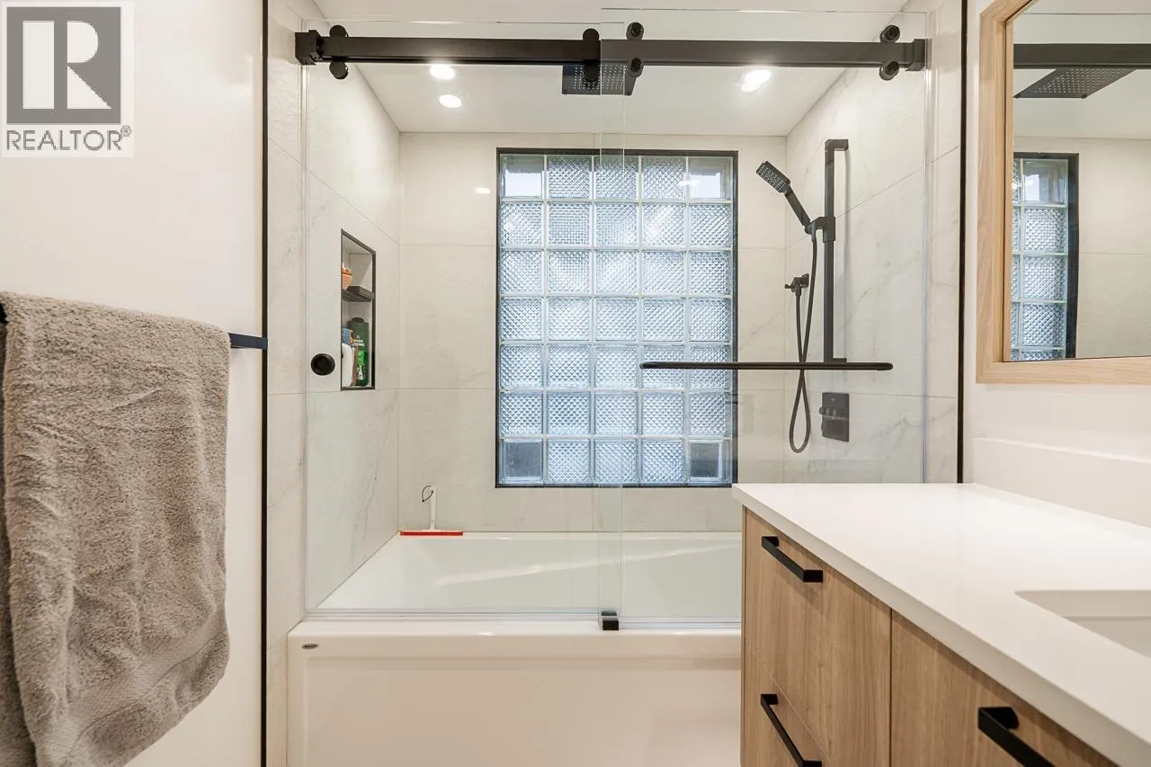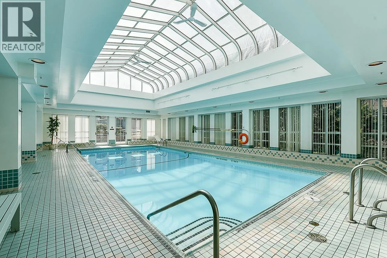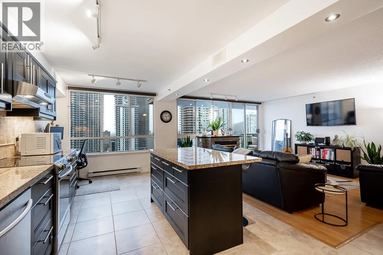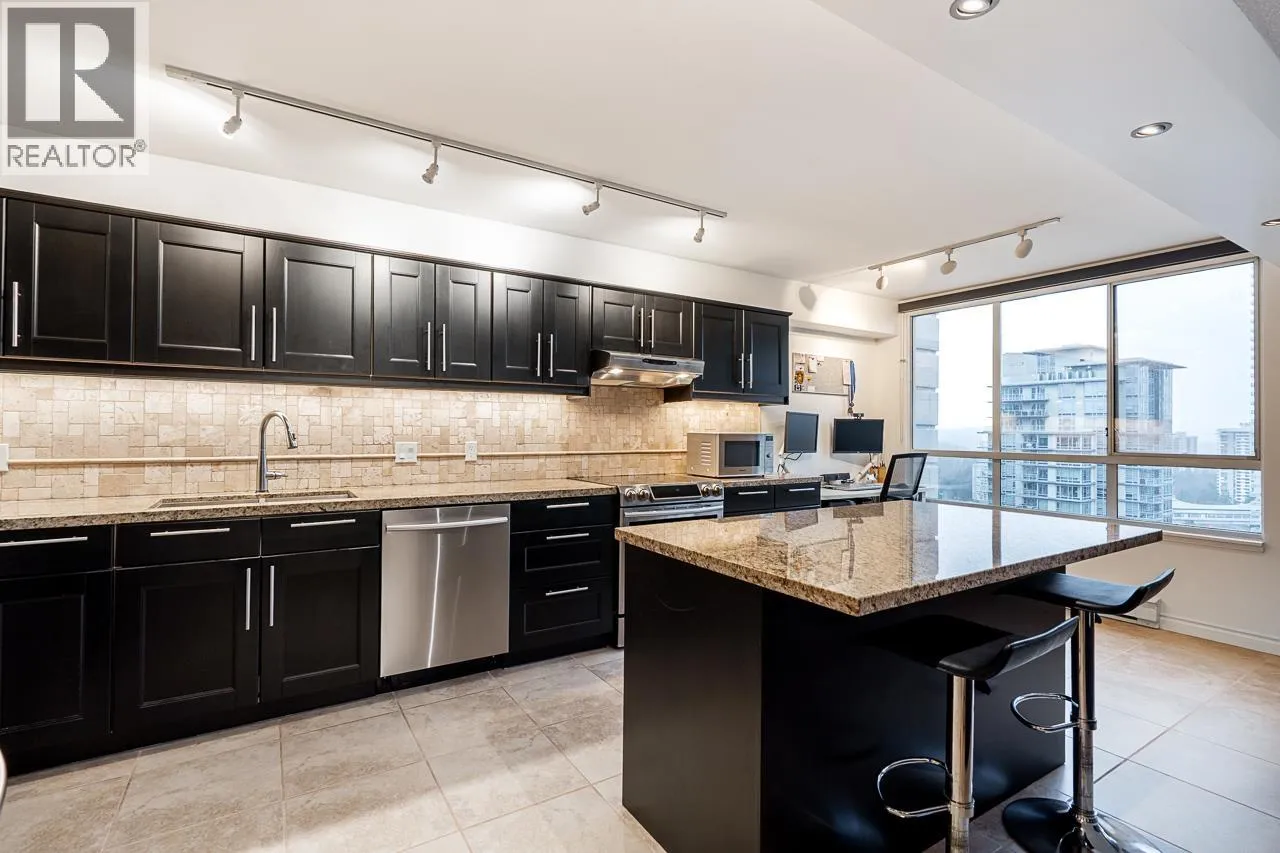 Welcome to Brookmere Towers. This bright northwest corner 2 bedroom, 2 bathroom home offers panoramic views, excellent natural light, and a spacious, well-laid-out floor plan. The kitchen has been opened to the living area, creating a more functional and inviting space with updated cabinetry, counters, flooring and appliances. The living room features a cozy gas fireplace, while both bedrooms are generously sized and thoughtfully separated for privacy. The primary ensuite has been completely renovated with custom finishes, in-floor heating and a spa-like feel. Enjoy sunsets from the large covered balcony. Well-managed concrete building with indoor pool, hot tub, sauna, gym and lounge. Steps to Lougheed Mall, SkyTrain, parks, shops and restaurants. One parking & one Storage locker included! (id:27476)