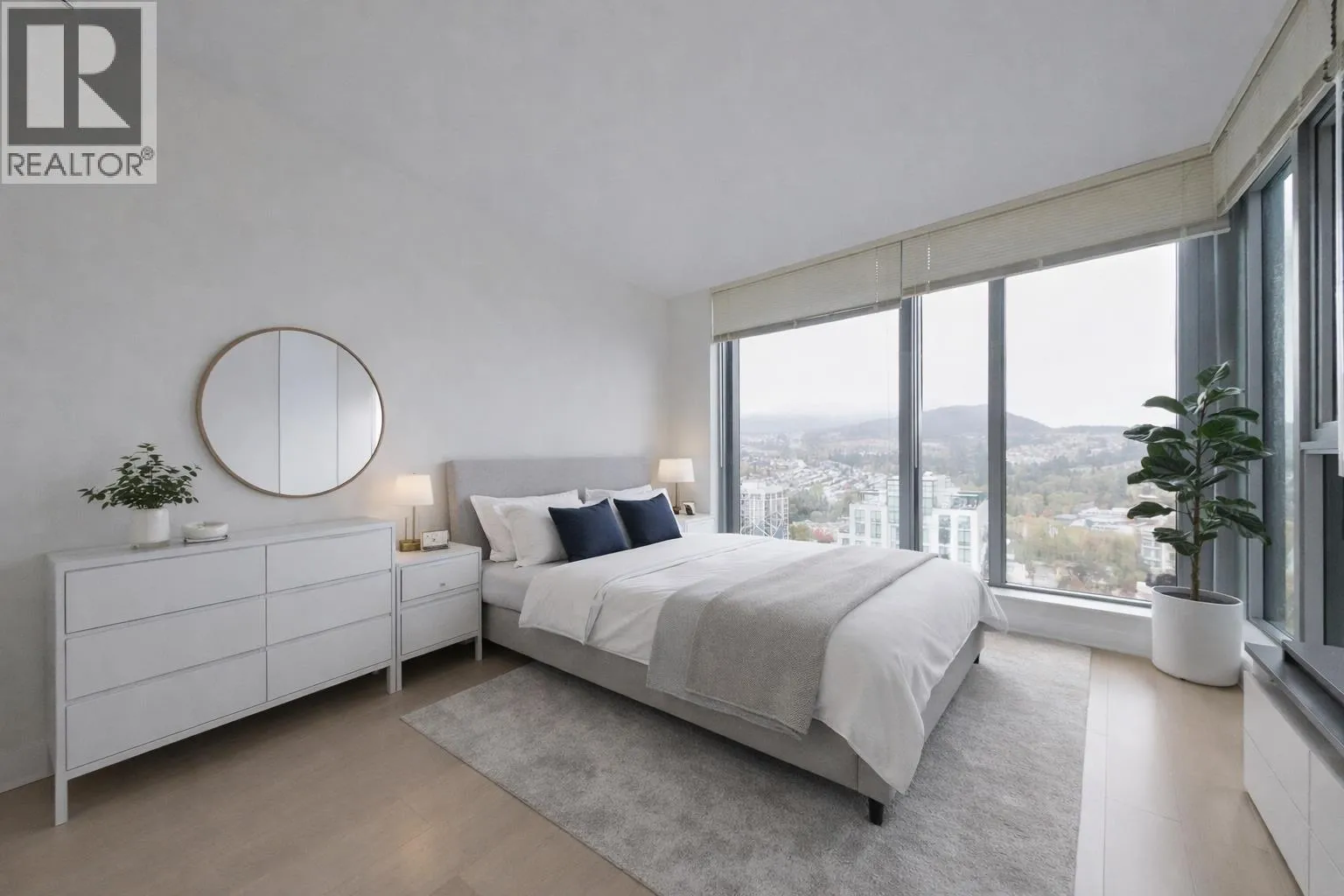 Welcome to this elegant corner unit in Coquitlam´s tallest landmark - MThree by Cressey. This rarely available 2-bed, 2-bath NE-facing home offers unobstructed mountain and Lafarge Lake views. The Cressey Kitchen features double built-in fridges, Blomberg appliances, Fulgor Milano 5-burner gas cooktop, wall oven, microwave, wine cooler, and smart pull-out cabinetry. Enjoy resort-style amenities on the 47th & 48th floors: 360° views, lounge with piano, gym, yoga & music rooms, and outdoor picnic area. Includes 1 parking + 1 locker and building is A/C approved. 37 Visitor Parking + 7 EV parkings for the residence. Steps to Coquitlam Centre, Douglas College, Lafarge Lake, SkyTrain, and more. A must-see!*All photos are virtually staged* (id:27476)