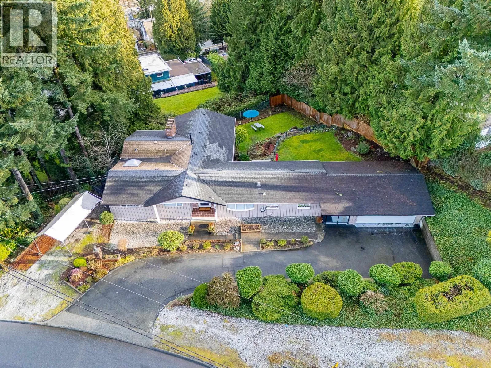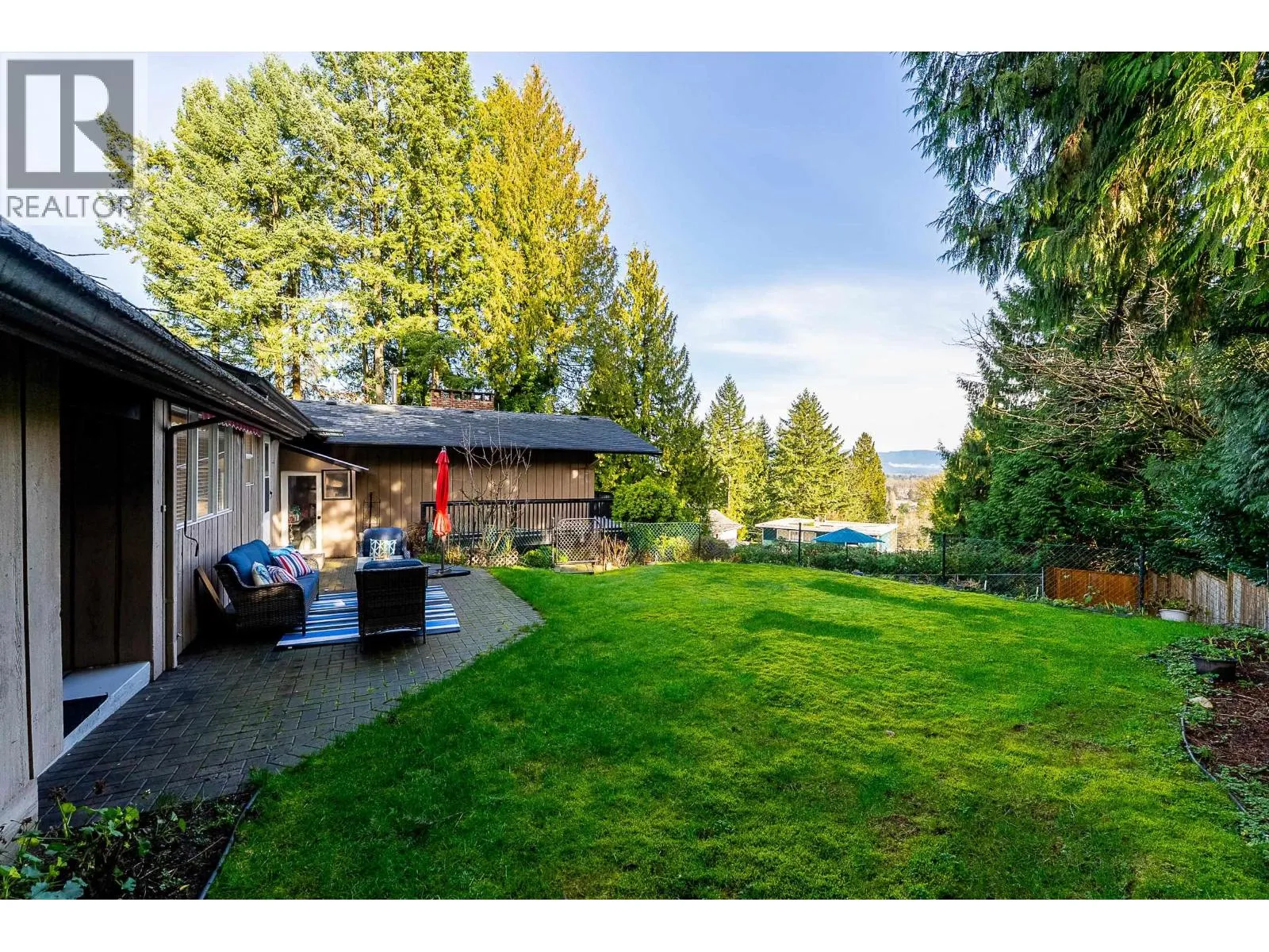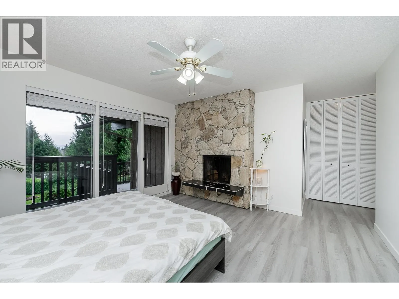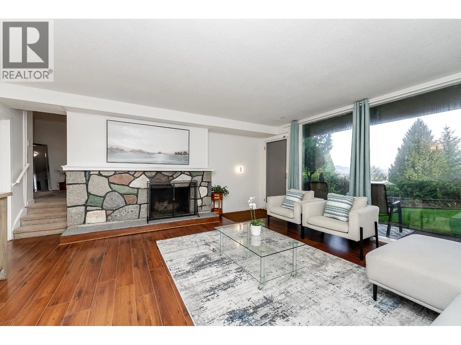 Beautifully updated home situated on a private, 12,000+ square ft lot! Offering 5 beds, 5 baths, and 3,264 square ft spanning over 2 levels. Enjoy a stunning, light-filled living room with soaring vaulted cedar ceilings and floor-to-ceiling windows. A striking natural stone fireplace anchors the space. Take in breathtaking views from the generous wrap-around balcony. 3 beds up including the primary with a cozy f/p, ensuite, and access to the balcony. The updated kitchen has ceramic tiles, quartz counters and vaulted ceilings + eating area and leads to formal dining. Lower level is spacious and walks out to the backyard with a separate entry, 2nd kitchen, 2 beds, generous storage and sauna. Desirable location with sought after school catchments, quick access to highways, parks, transit + amenities. (id:27476)