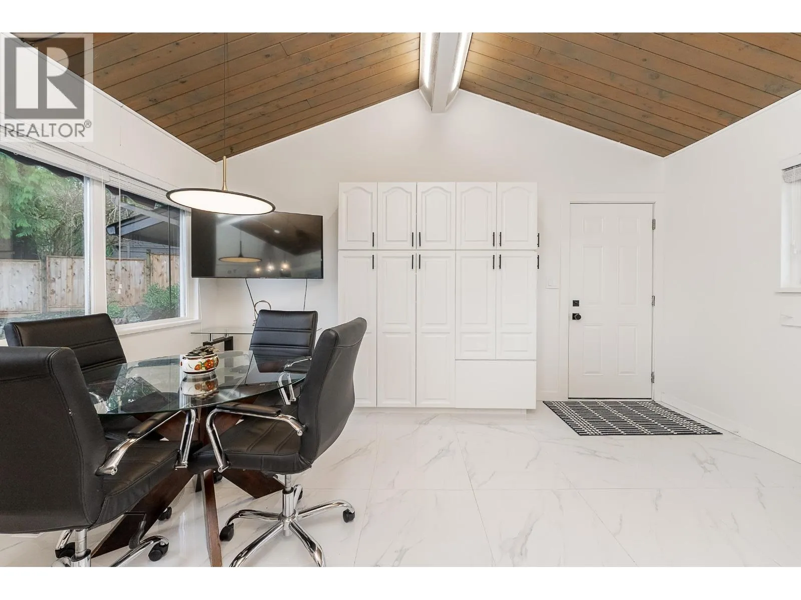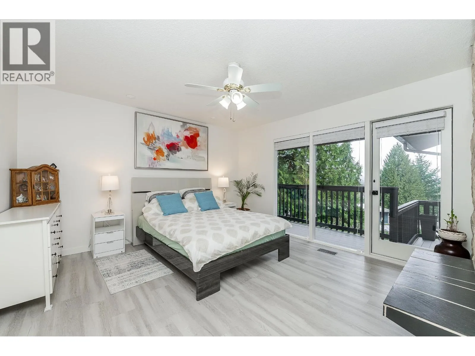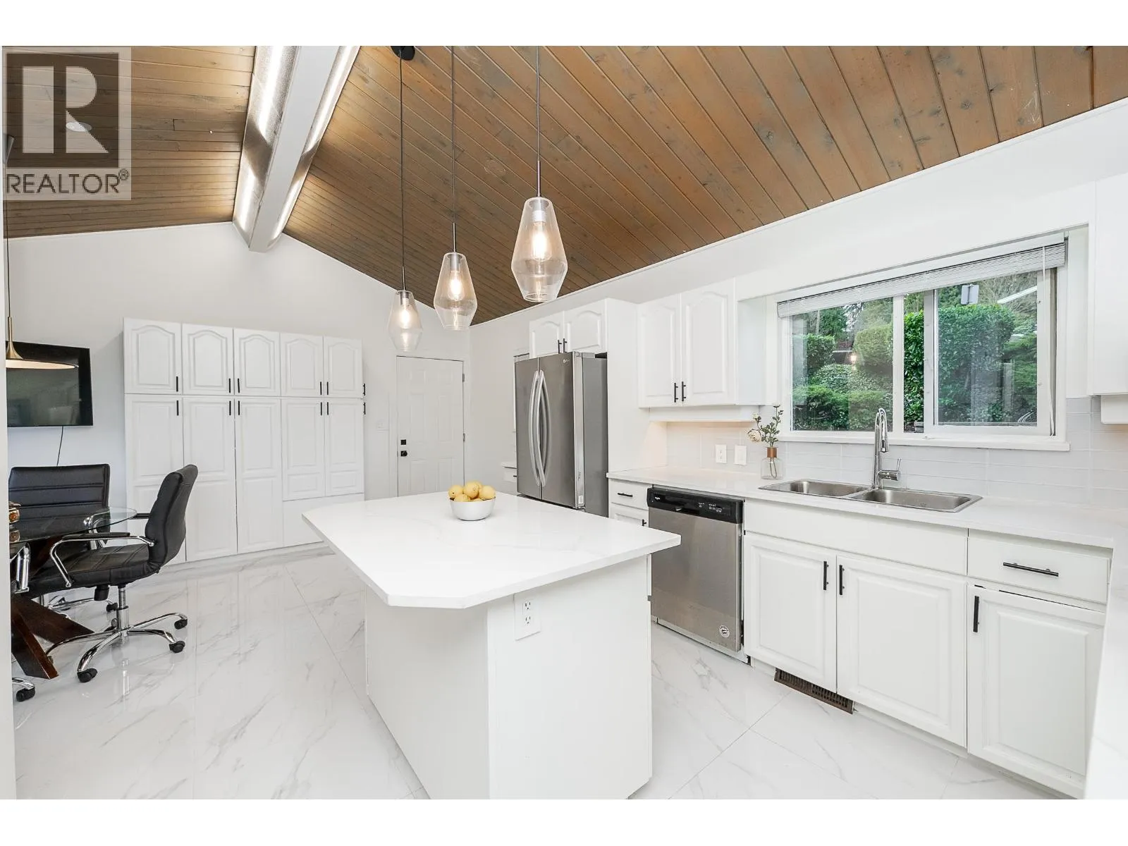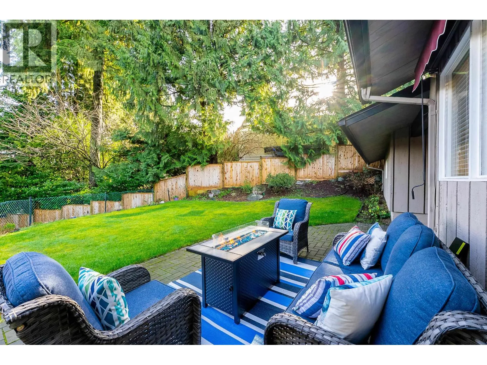 Beautifully updated home situated on a private, 12,000+ square ft lot! Offering 5 beds, 5 baths, and 3,264 square ft spanning over 2 levels. Enjoy a stunning, light-filled living room with soaring vaulted cedar ceilings and floor-to-ceiling windows. A striking natural stone fireplace anchors the space. Take in breathtaking views from the generous wrap-around balcony. 3 beds up including the primary with a cozy f/p, ensuite, and access to the balcony. The updated kitchen has ceramic tiles, quartz counters and vaulted ceilings + eating area and leads to formal dining. Lower level is spacious and walks out to the backyard with a separate entry, 2nd kitchen, 2 beds, generous storage and sauna. Desirable location with sought after school catchments, quick access to highways, parks, transit + amenities. (id:27476)