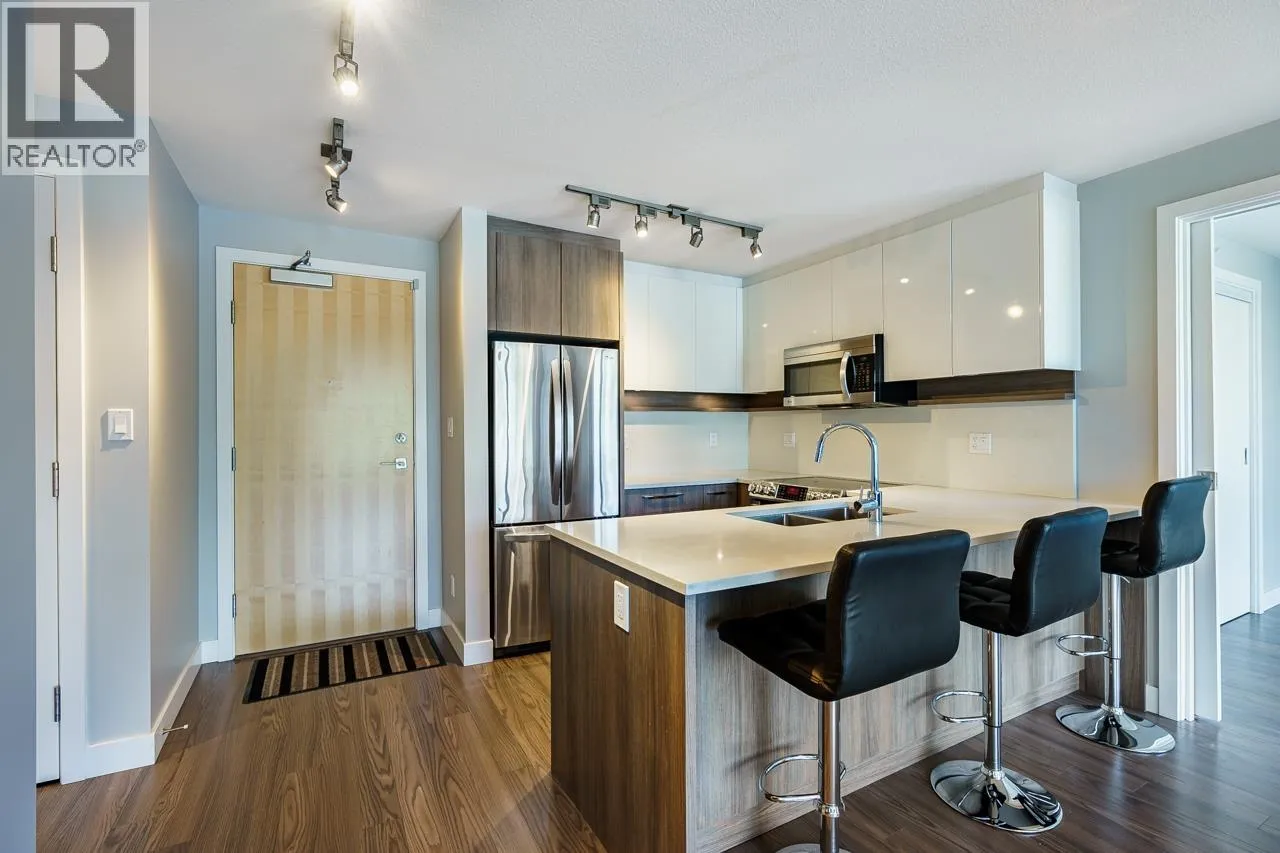 LOCATION! LOCATION! LOCATION! Walkable to everything, this 770 sqft 2-bedroom home at The Austin offers convenience, quality, and comfort. Enjoy high-end finishings and a thoughtfully designed layout with floor-to-ceiling windows, a spacious living room that opens onto a private patio, and a CHEF-INSPIRED kitchen featuring quartz countertops, stainless steel appliances, double undermount sink, and breakfast bar seating for three. Bedrooms are on opposite sides for added privacy, with a 4-piece cheater ensuite off the primary. Amenities include guest suites, lounge, gym/yoga room, playground, and a large common patio area-perfect for entertaining! RARE bonus: two side-by-side parking stalls and one storage locker. Rentals and pets allowed, making it a great home or investment. Walk to the Vancouver Golf Club, restaurants, shops, and services. Bus stop right outside, 5 minutes to SkyTrain, and just 15 minutes to SFU. A must-see and easy to show! OPEN HOUSE SUN FEB 15 2-4PM (id:27476)