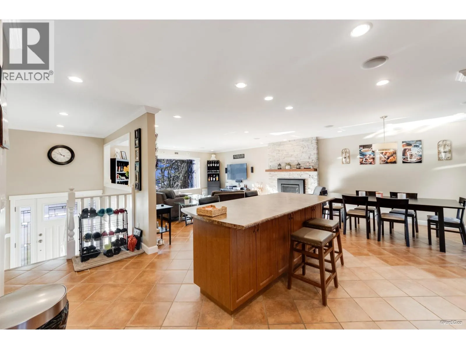 Welcome to this updated 5 bedroom, 3 bath family home in desirable Ranch Park, offering over 2,500 square ft of living space. The bright open-concept main floor features tiled flooring, stainless steel appliances, flowing out to a 47´ covered deck perfect for entertaining. Recent improvements include a new roof, front porch, 60´ rear fence, washer and dryer & a fully finished basement with updated flooring, adding significant and flexible living space. Enjoy year-round comfort with a heat pump and A/C, two fireplaces, a double-length double garage with backyard access, an unfinished workshop & a full-length attic providing excellent storage. Situated on a 7,020 square ft lot with a spacious backyard, ideal for families, close to transit, schools, parks, shopping & everyday amenities. (id:27476)