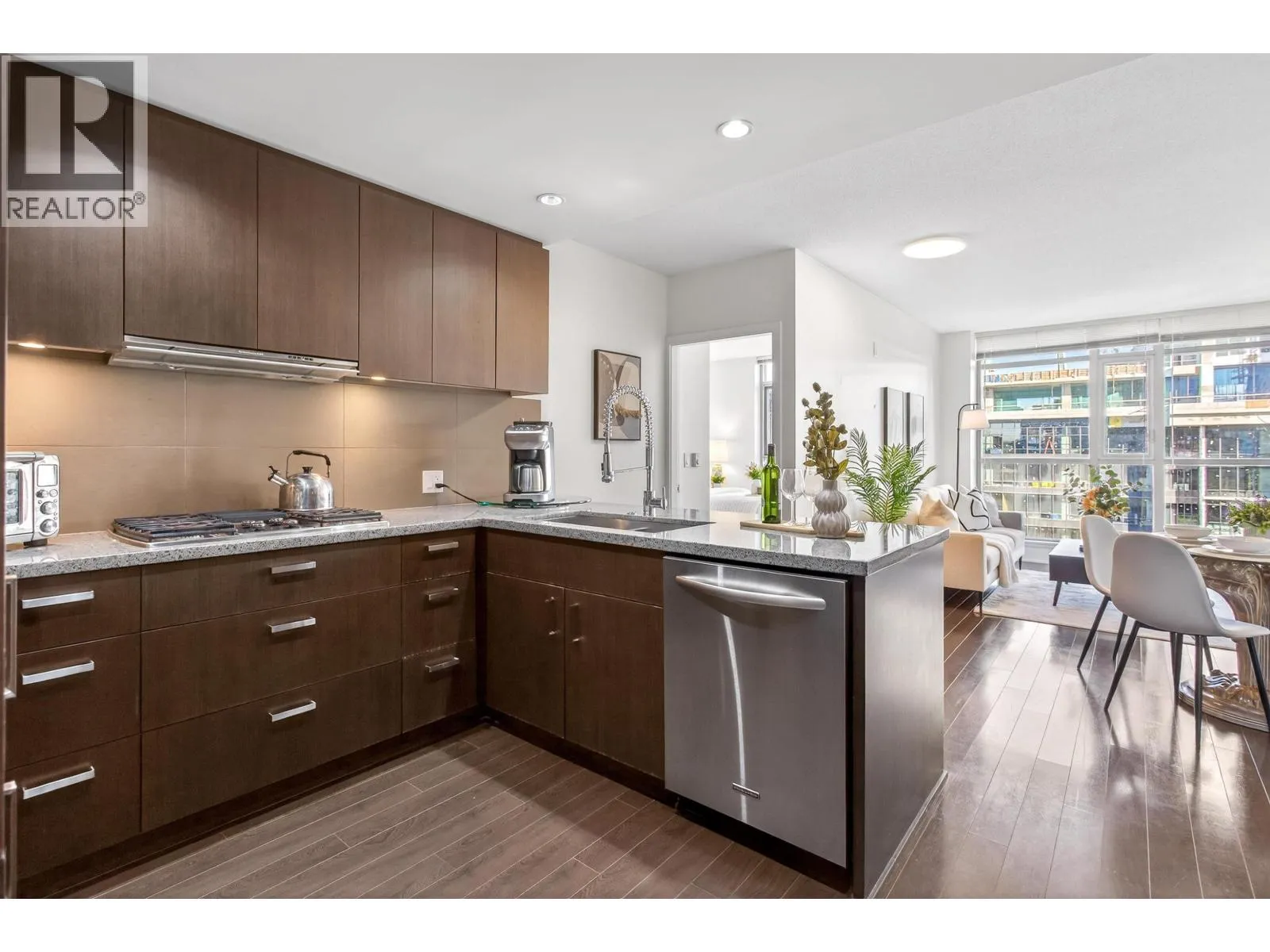 Welcome to this bright & thoughtfully designed 2 bed, 2 bath home featuring the signature Cressey Kitchen with sleek full-height cabinetry, S/S appliances, & a built-in workstation; ideal for modern living. The smart layout offers bdrms on opposite sides for privacy, large windows, & a desirable E-facing exposure that fills the home with natural light. Laminate flooring throughout adds a contemporary, low-maintenance finish, while the primary bdrm includes a W/I closet. Centrally located in Coquitlam Town Ctr with shopping, restaurants, SkyTrain, West Coast Express, schools, parks & rec just steps away. Amenities include a fitness ctr, social lounge, kids' play areas, BBQ pavilion & landscaped outdoor spaces, all within a vibrant, walkable community with excellent access to everyday conveniences. (id:27476)