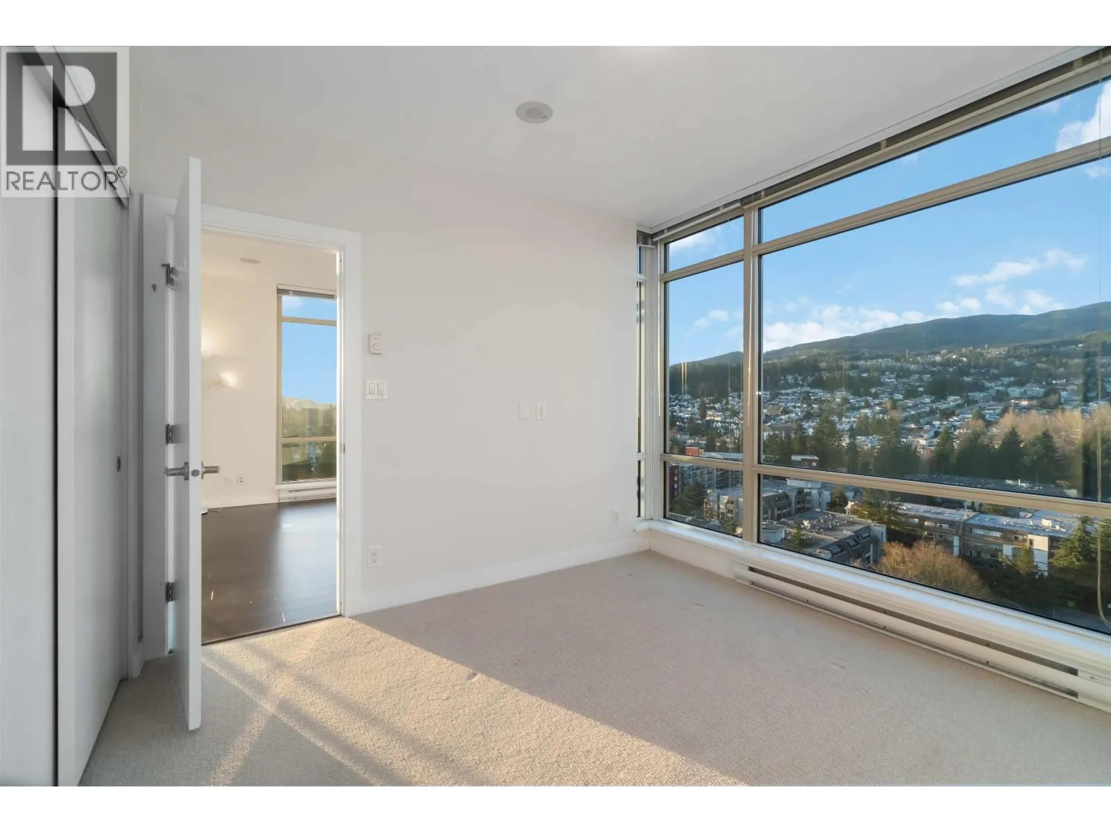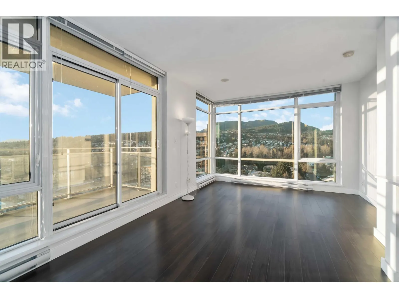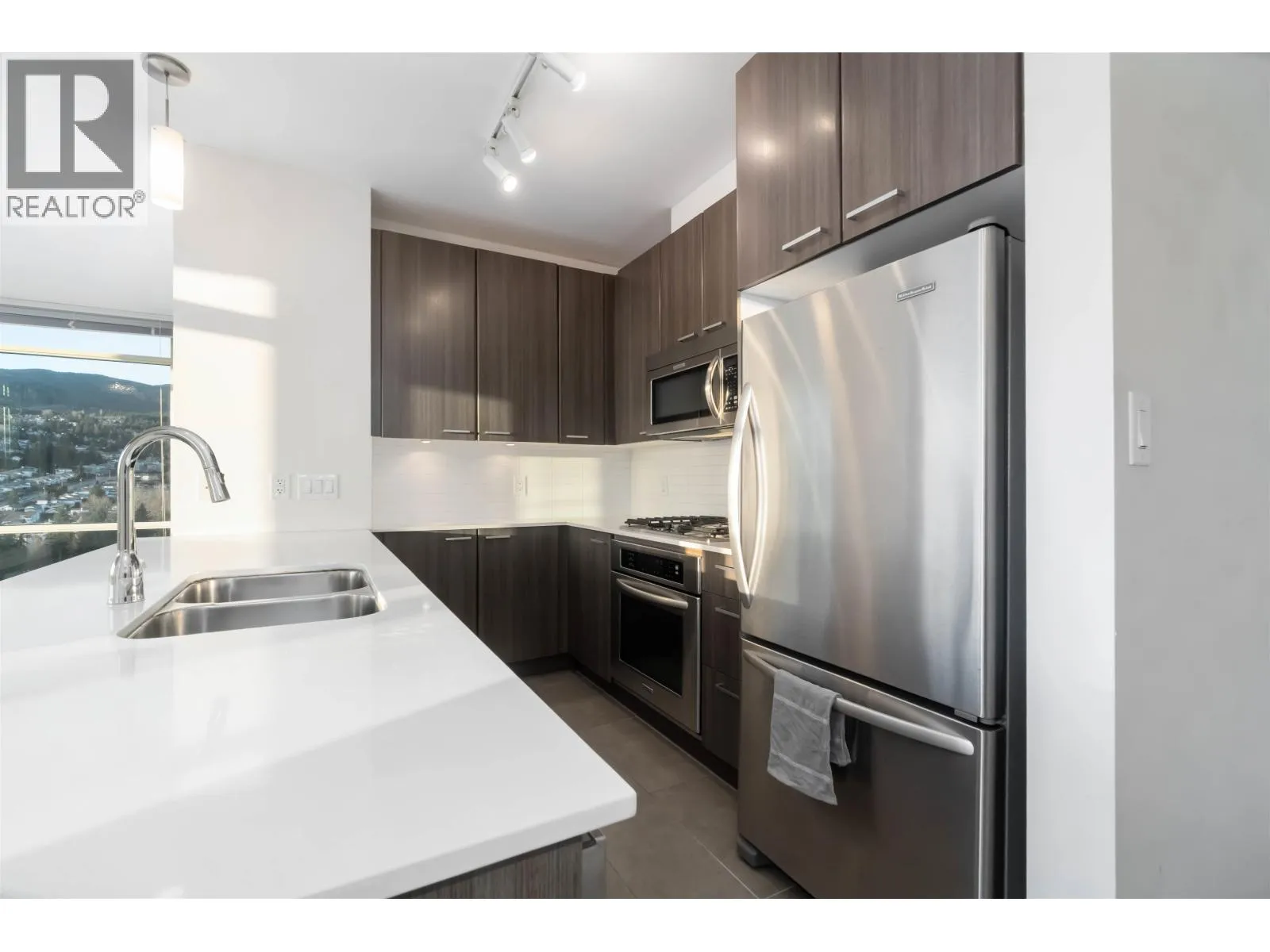 Rare 19th floor NW corner unit with unobstructed panoramic mountain views and stunning sunsets. Bright 820 square ft home with floor-to-ceiling wrap-around windows and two bedrooms on opposite sides for privacy. Original owner since 2012, never rented, meticulously maintained and move-in ready. Quality finishes include KitchenAid stainless steel appliances with gas cooktop, stone countertops, and in-suite laundry. Includes THREE storage lockers. Resort-style amenities with low strata fees. Steps to Lincoln SkyTrain Station and Coquitlam Centre. Exceptional opportunity in a high-demand building. Open House March 22st 12-2pm (id:27476)