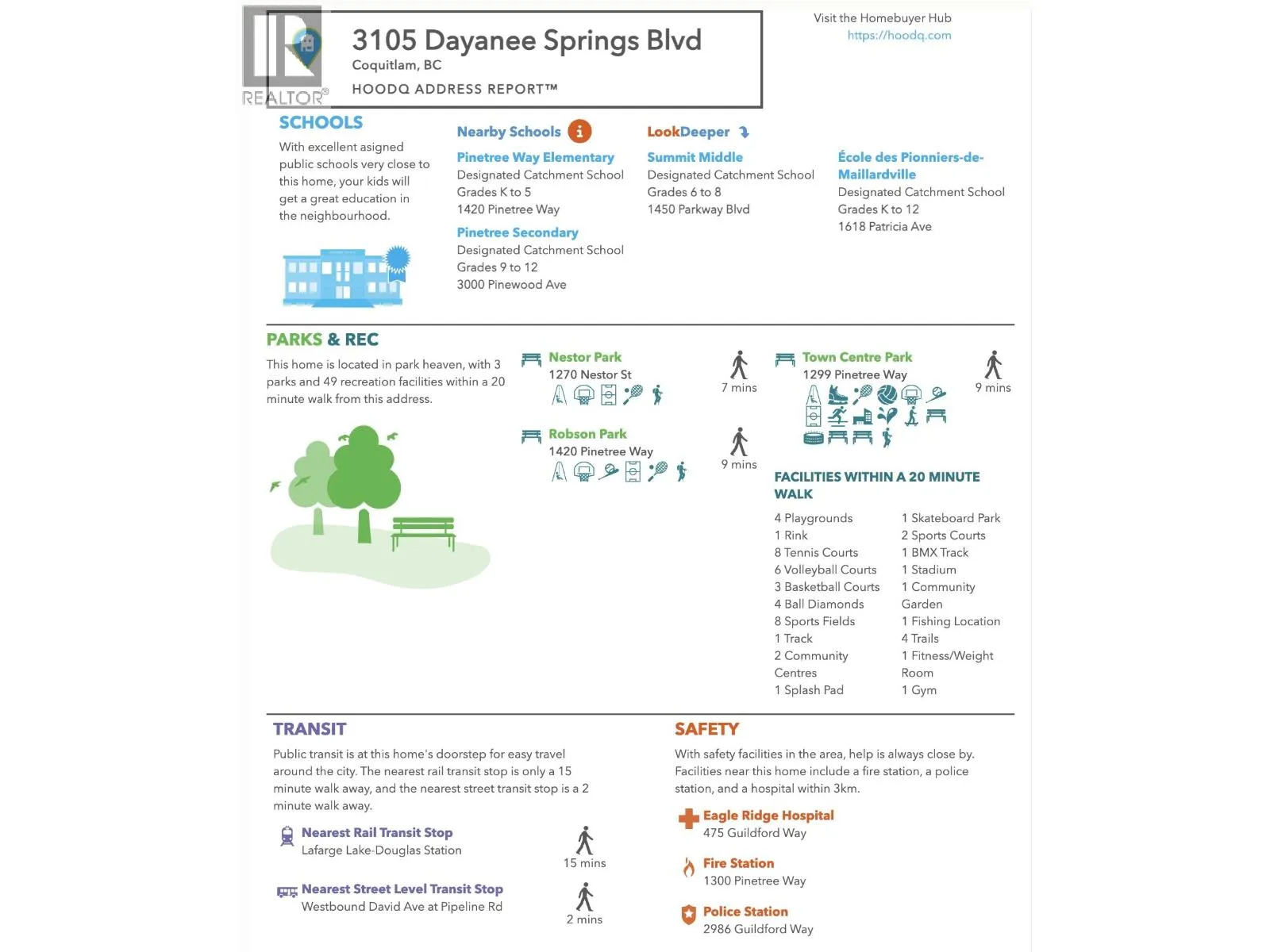 WELCOME TO WHITETAIL LANE by POLYGON! Original owners from day one. Nestled in the beautiful neighbourhood Dayanee Springs in Westwood Plateau, this sought after community offers an executive 3 Bed + 3 Bath 1,374SF townhouse with open Living & Dining. With access to your own PRIVATE backyard, from your kitchen, powder room on the main & laminate flooring throughout & a spacious 608SF double tandem garage. Amazing location WALKING DISTANCE to Evergreen Skytrain station, Douglas College, Pinetree Secondary, Community Centre, & Town Centre Park. Amazing amenities at TIMERS CLUB, include fitness Facility, Outdoor pool, Sauna, Guest suite, Hockey room, Crafts room, & Theatre Room, just steps away from the unit. Newer floors, Hot Water tank and fridge. Open House March 7/8 2:00-4:00pm (id:27476)