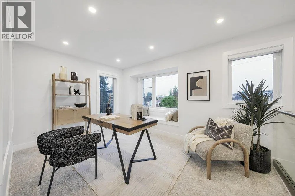 Experience the elegance of this high-quality, new-built 4 bed/3.5 bath, 1973 square ft Side By Side Triplex Unit 101 This sunny, south-facing home offers 3 levels of well-designed luxury living on Smith Ave, Coquitlam. Main floor features hardwood, 9 ft ceilings, open living/dining, a high-end kitchen with quartz counters, pantry, and a large balcony. The second level offers a primary bedroom with luxe ensuite + 2 bedrooms and a full bath. The top level includes a family/office space + 1 bedroom plus full bath. Tasteful finishes: carpet, custom cabinetry, modern lighting, Fisher & Paykel appliances. Heating/AC heat pump + electric baseboard. Huge Crawl space storage. Two parking W/ EV Charger out let. Steps to SkyTrain. 2/5/10 Yrs Warranty Open House Saturday March 28th 2-4 PM (id:27476)
