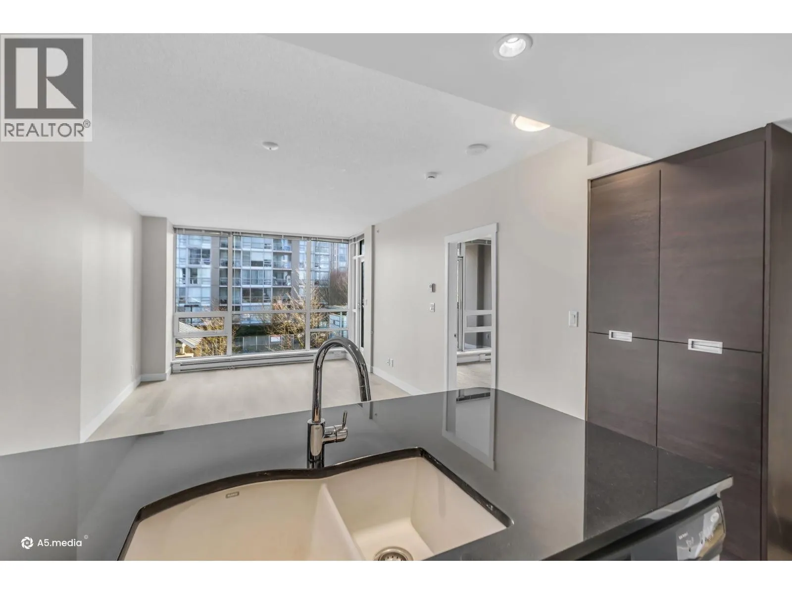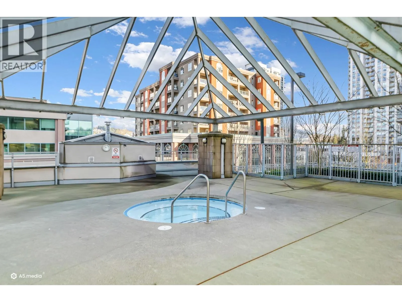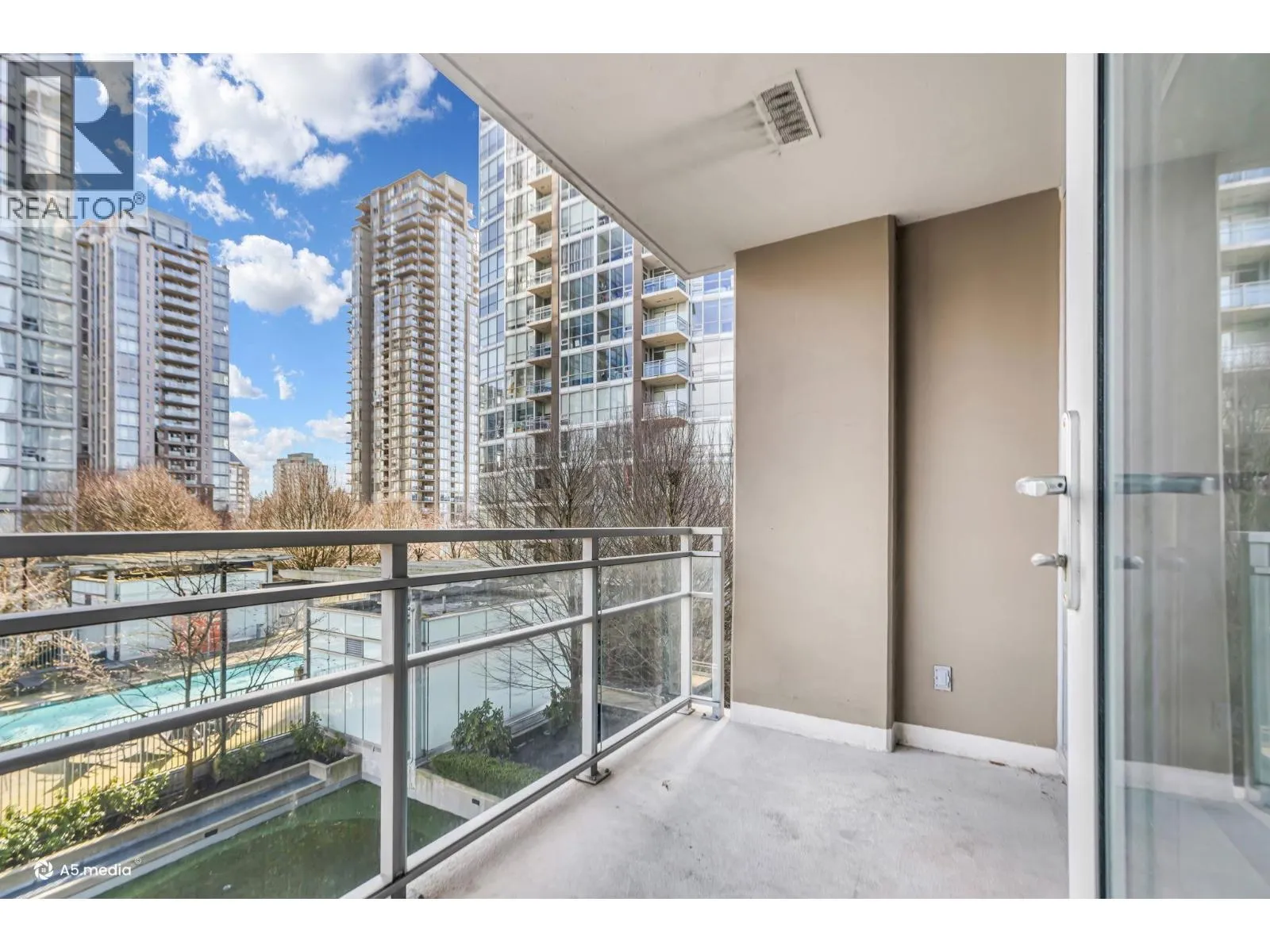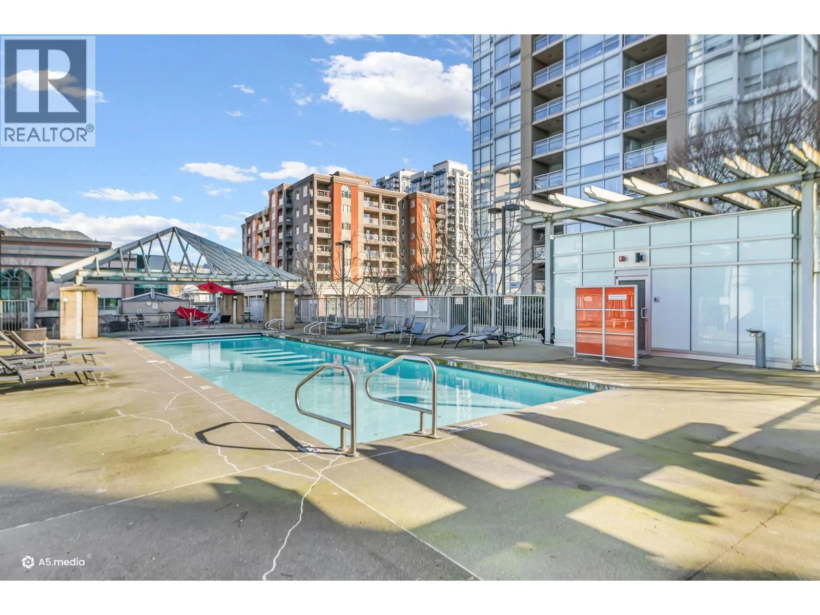 Bright and perfectly located, this one bedroom condo at Grand Central 2 offers exceptional living in the heart of Coquitlam City Centre. Enjoy views of the beautifully landscaped rooftop amenities through floor to ceiling windows, filling the home with natural light. The east facing open layout features a generously sized bedroom with direct access to a private balcony, perfect for morning coffee. Recently updated vinyl flooring brightens the living and dining areas, while the kitchen offers granite countertops, gas stove, plenty of cabinetry and an updated washer and dryer. Enjoy luxurious amenities including a rooftop outdoor pool, hot tub, putting green, gym and garden. Just steps from shopping at Coquitlam Centre, dining, Lafarge Lake & transit including the SkyTrain Millennium Line. (id:27476)