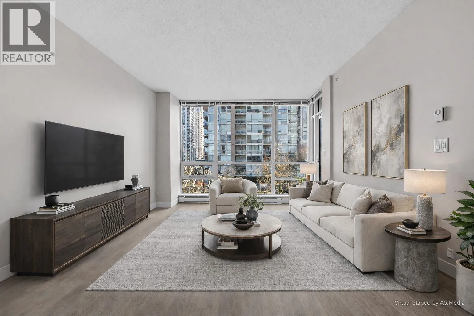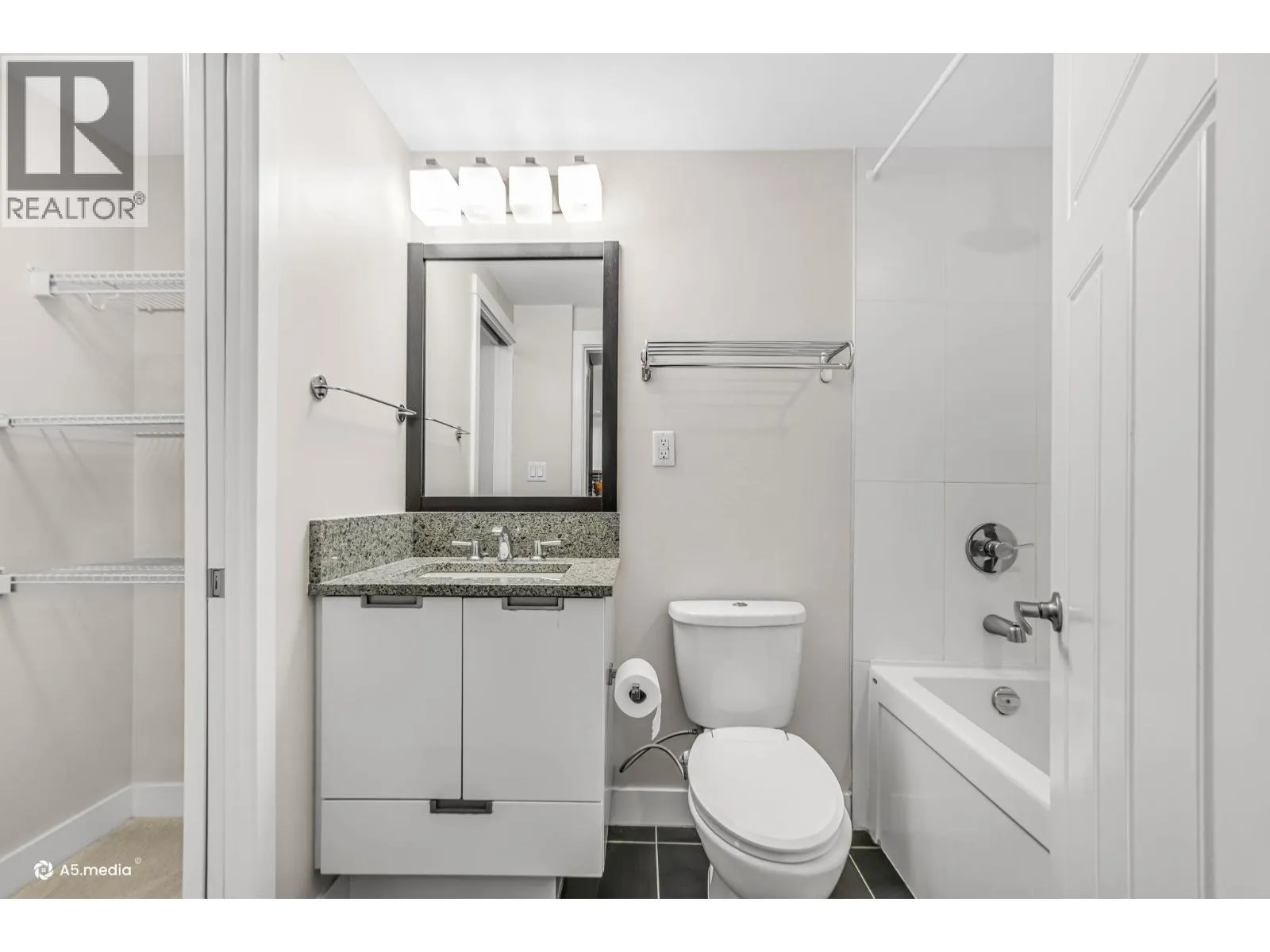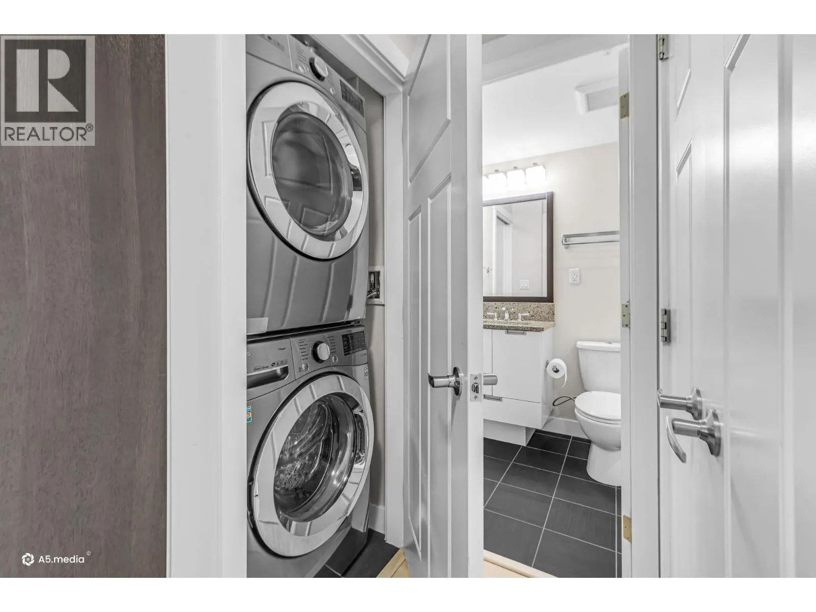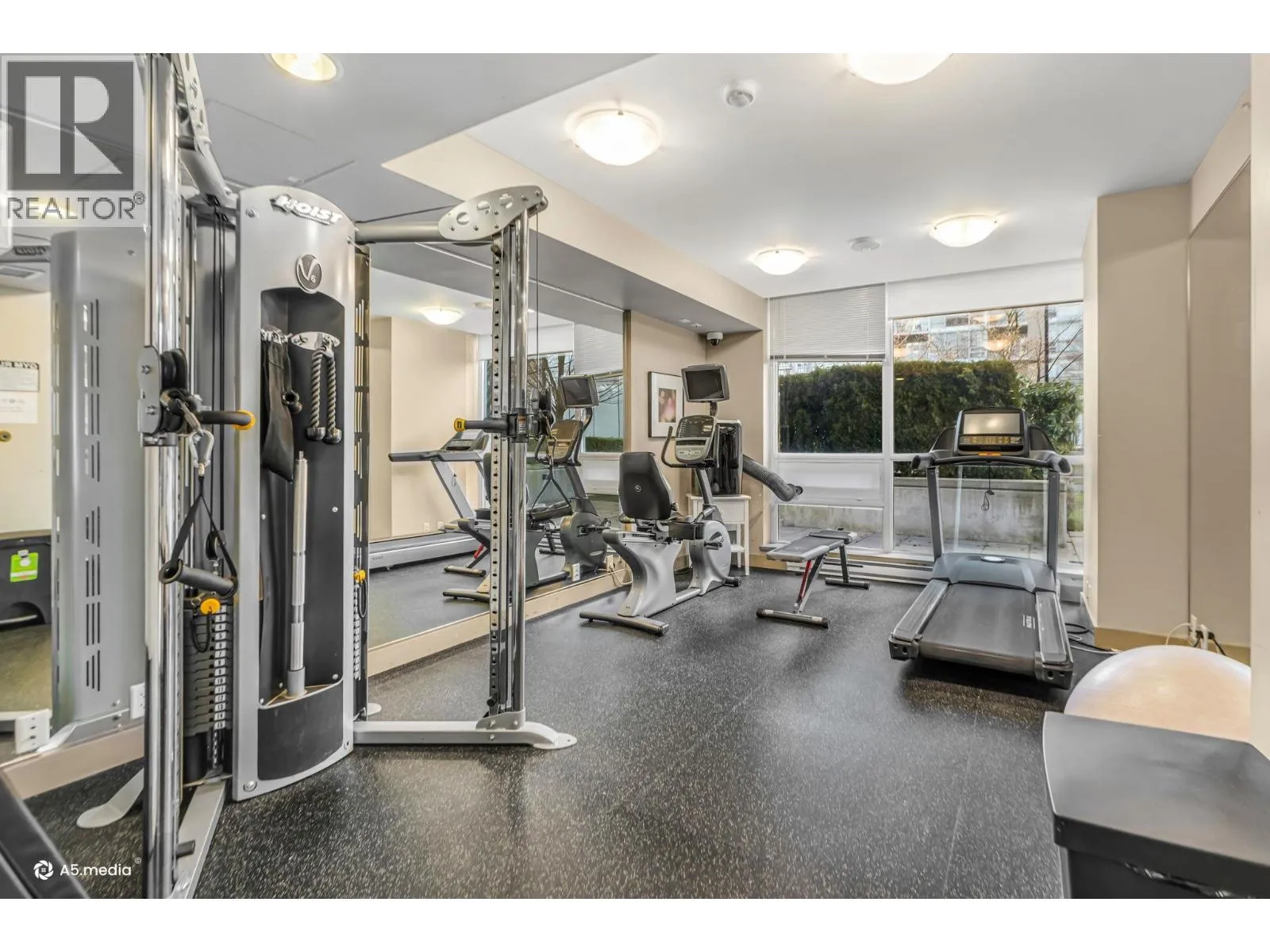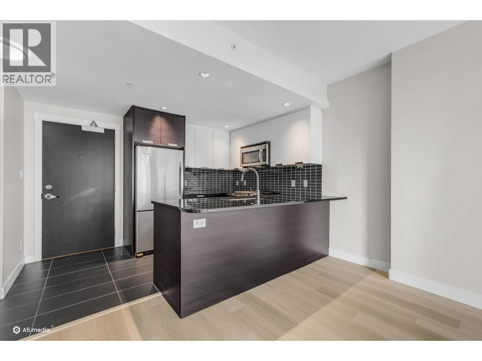Bright and perfectly located, this one bedroom condo at Grand Central 2 offers exceptional living in the heart of Coquitlam City Centre. Enjoy views of the beautifully landscaped rooftop amenities through floor to ceiling windows, filling the home with natural light. The east facing open layout features a generously sized bedroom with direct access to a private balcony, perfect for morning coffee. Recently updated vinyl flooring brightens the living and dining areas, while the kitchen offers granite countertops, gas stove, plenty of cabinetry and an updated washer and dryer. Enjoy luxurious amenities including a rooftop outdoor pool, hot tub, putting green, gym and garden. Just steps from shopping at Coquitlam Centre, dining, Lafarge Lake & transit including the SkyTrain Millennium Line. (id:27476)