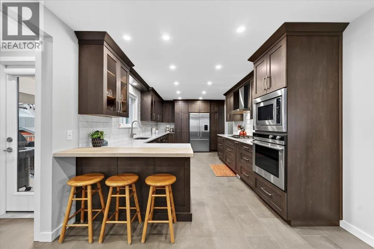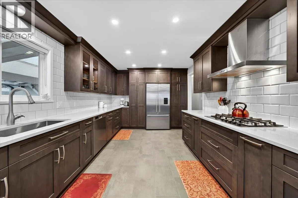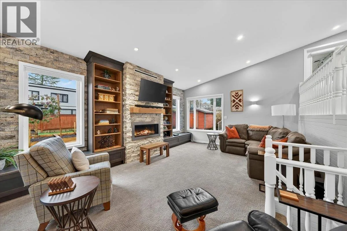 YOUR FOREVER HOME AWAITS! This well maintained rancher bungalow has space for a growing family in a well established neighborhood on a quiet street. Your main floor boasts both a formal living and dining room, updated modern kitchen and a split level large cozy family room. The dining room easily fits a large family for entertaining. 3 large bedrooms on the main, with a 2 piece powder room in the primary. Downstairs boasts 2 more bedrooms, a large rec room or convert to a suite! NO SHORTAGE OF STORAGE throughout as well as a double garage. Privacy and safety for your children to play, garden and enjoy a sunny south facing backyard. Updates include a newer roof, appliances, gutters & AIR CONDITIONING. Plenty of parking out front and centrally located to parks, school, shopping and transit. (id:27476)
