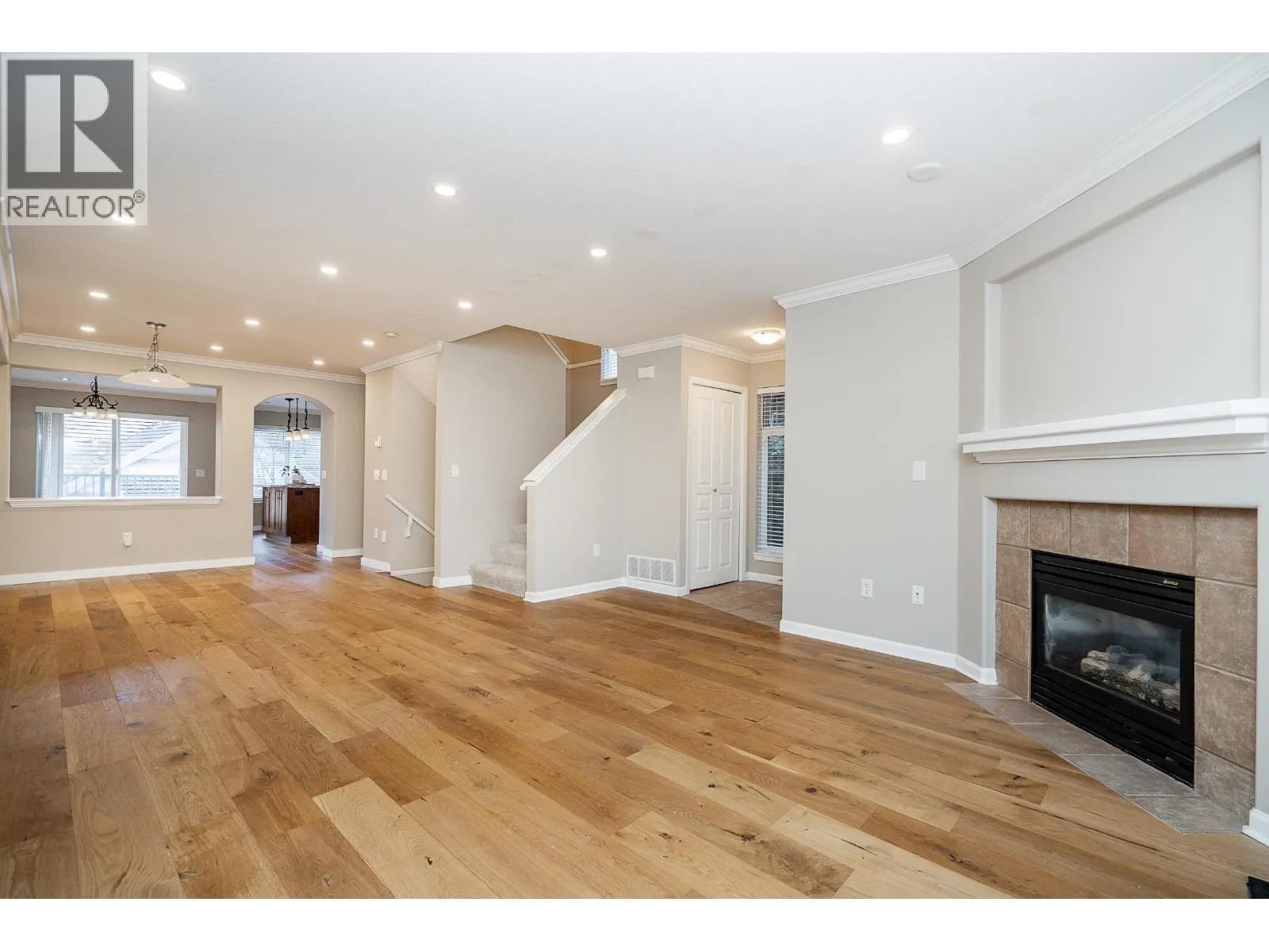 Beautiful and inviting END unit townhome at Windance! Offering 3 bedrooms, 3 bathrooms and 2,063 square ft of thoughtfully designed living space. On the main enjoy a spacious living room with a cozy gas fireplace that flows to the dining. The kitchen offers warm wood cabinetry, granite countertops, a centre island with seating, stainless steel appliances, and pendant lighting. The family room leads to a sunny SW balcony with greenbelt and mountain views. A convenient powder room completes the main. Up are 3 generous beds. Primary has a large WIC and ensuite. Down is a recreation room with a double side by side garage. Engineered hardwood floors, brand new carpet and paint throughout. Situated near trails, nature and schools, while being conveniently close to urban conveniences. (id:27476)