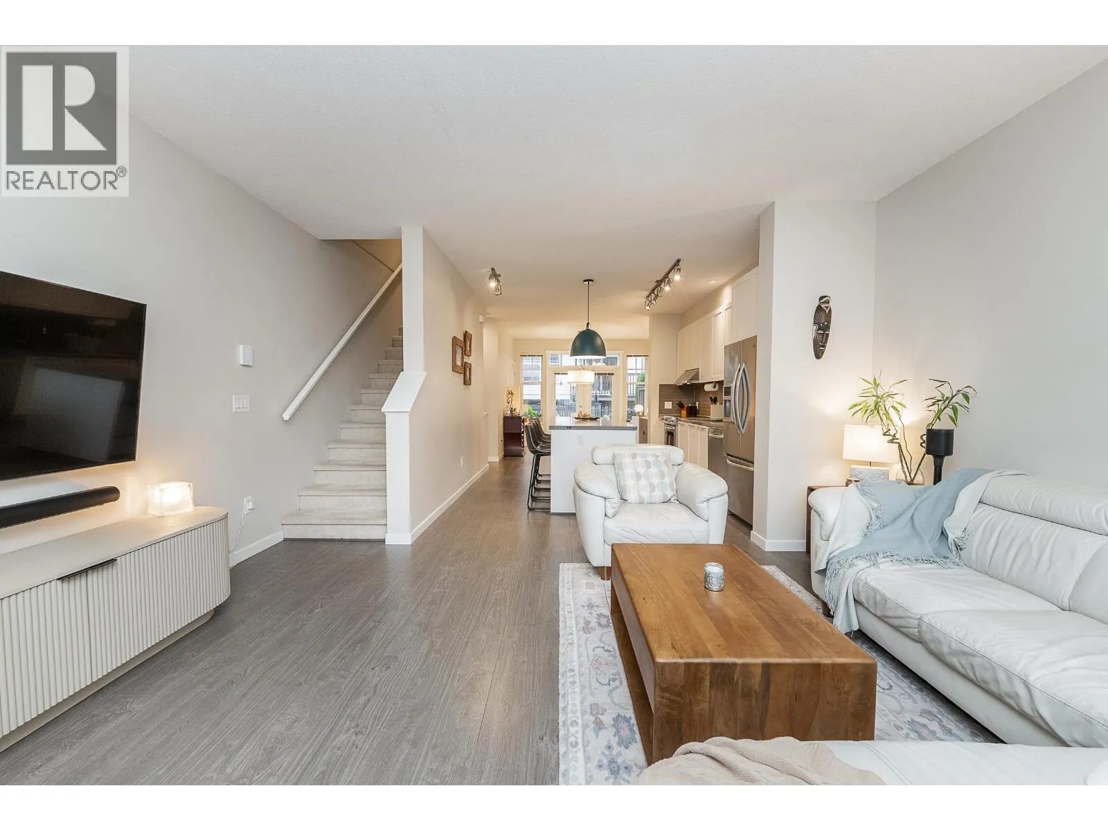 Welcome to this beautiful Burke Mountain townhome at sought after Bridlewood by Polygon! This 3 bedroom, 3 bathroom home offers an open, functional layout with 1,475 square ft of living space. The spacious centre kitchen features a large island, quartz countertops, shaker style cabinetry, and SS appliances. French doors off the dining area open to a private, fenced yard with patio. The south-facing living room is generous in size and filled with natural light. Powder room on the main for added convenience. Upstairs offers 3 bedrooms and 2 full bathrooms, with the primary featuring a 5-piece ensuite. Large, 511 square ft tandem garage has parking for 2 cars and ample storage. Located steps away from trails, and walking distance to Smiling Creek Elementary, parks and transit. (id:27476)