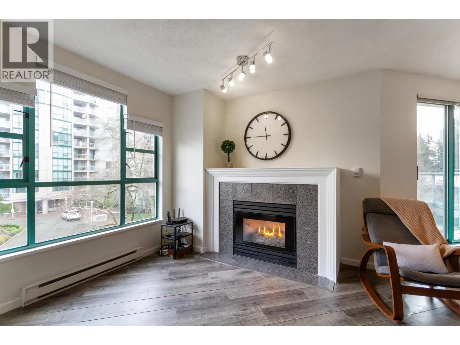Do you want to be close to central location but still want a quiet neighbourood? This unit will be perfect for you! Bright East facing Top Corner 3 BDRM 2 BATH unit located in between Lafarge Lake and Glen Park. Two BIG balconies, spacious living room w/gas fireplace and 2 parking spots. Upgrades: Laminate flooring throughout, new blinds, new black engineered quartz countertop, newly painted, thermostat, vanity, light and caulking done recently. Repiping done in the building (all paid for). Private EV Charger installed in the parking spot. Walking distance to Glen Elementary School. Near all the shopping malls, restaurants, bus stops/SkyTrain Station, Pinetree Secondary/ Douglas College, library, Coquitlam Aquatic centre and Lafarge Lake/Parks. Contact listing agent for a private showing. (id:27476)