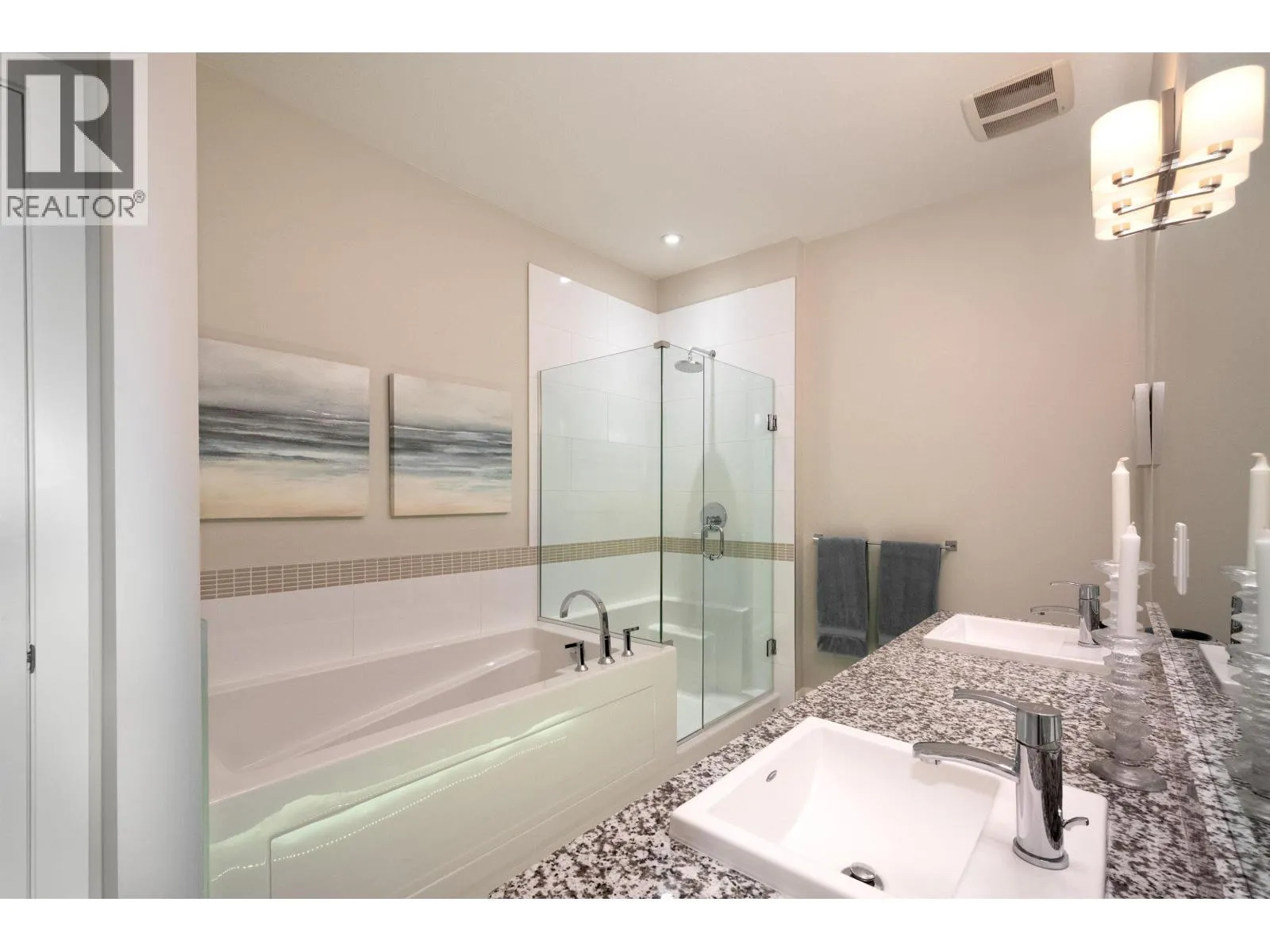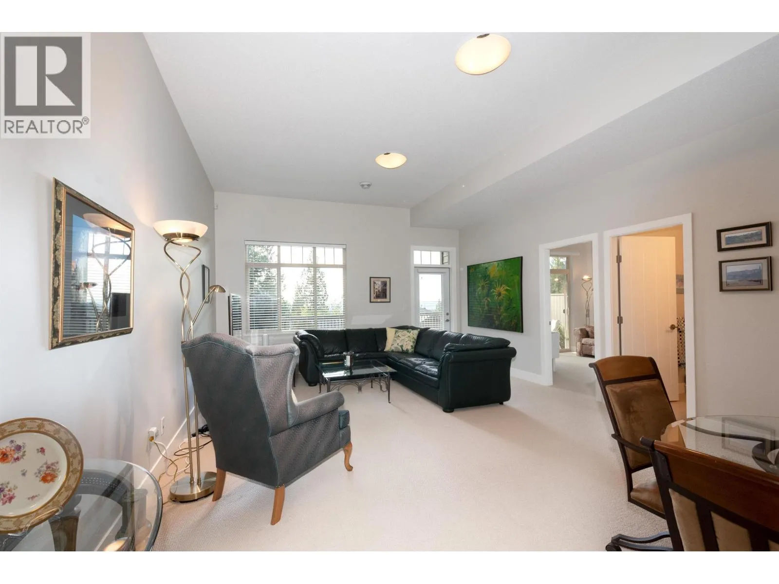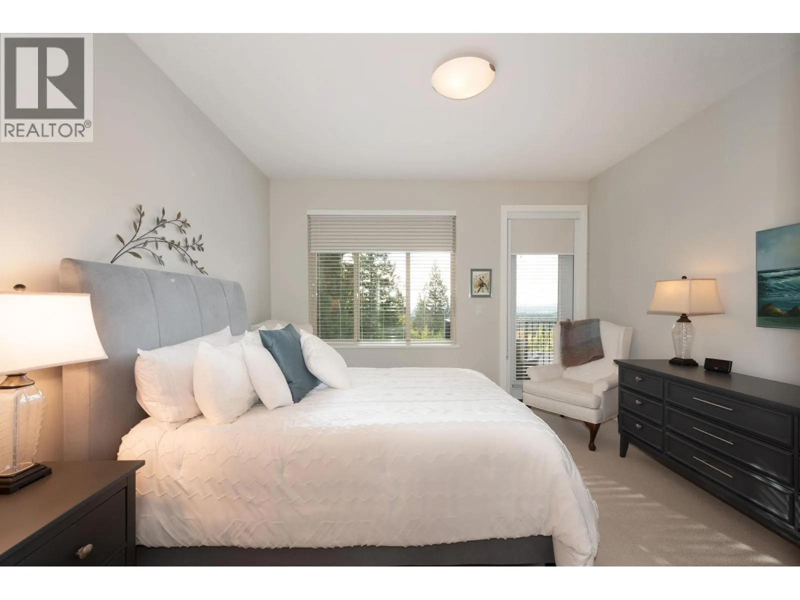 Level-entry duplex-style home with breathtaking, unobstructed views and surrounding greenbelt. Enjoy true main-level living with the primary bedroom, laundry, kitchen, and living areas all on one floor. Vaulted ceilings and large windows fill the open-concept layout with natural light and highlight the stunning south-facing outlook. The Primary Bedroom includes deck access and a spacious ensuite. Downstairs offers two additional bedrooms, a large rec room, family room, storage, and a walk-out fenced yard. Two-car garage, with parking for two more cars, A/C, and a serene setting complete this exceptional home. (id:27476)