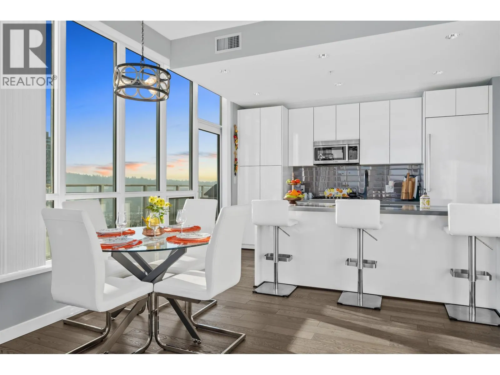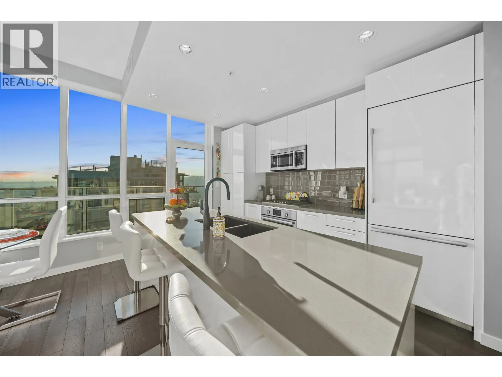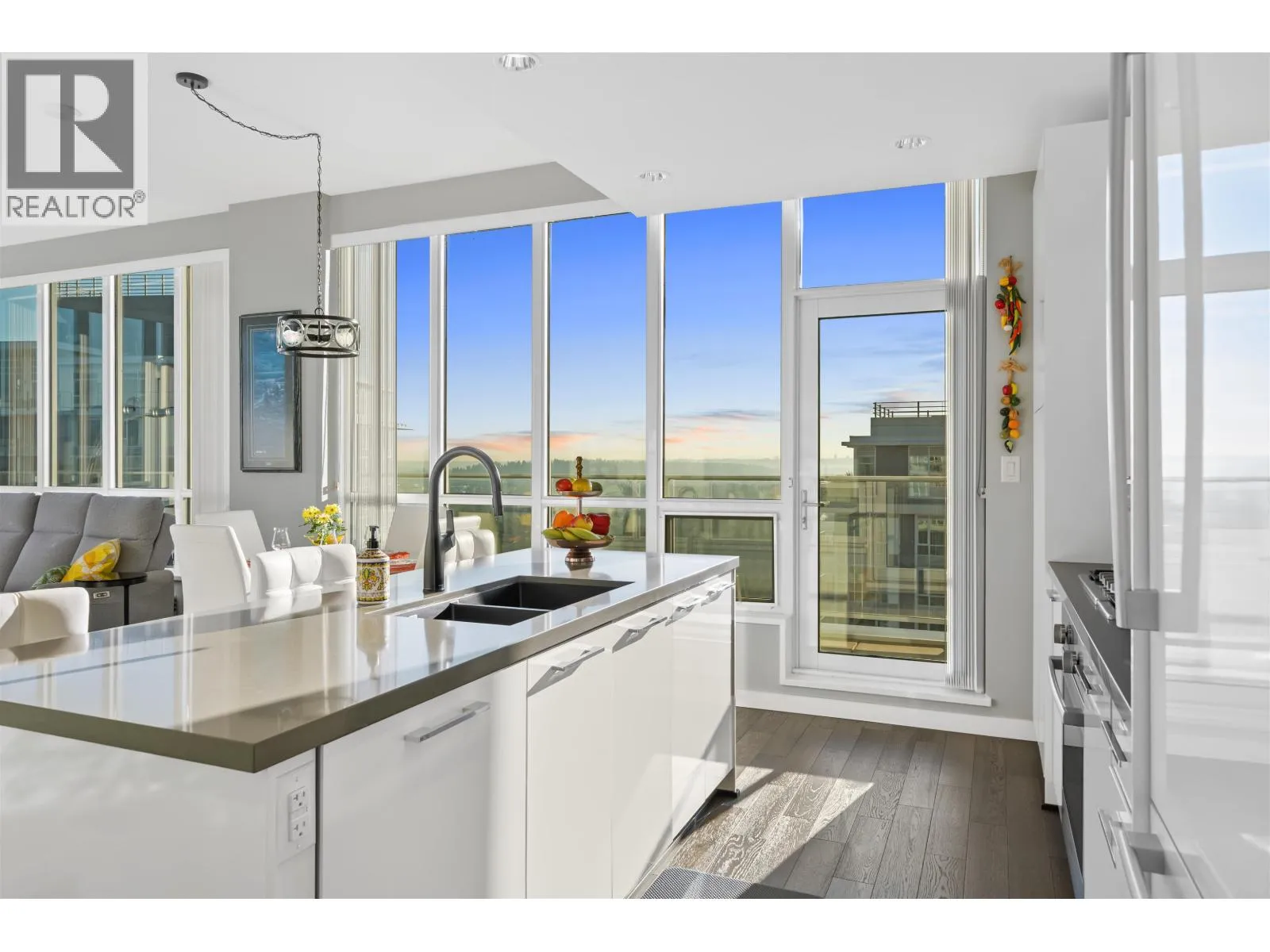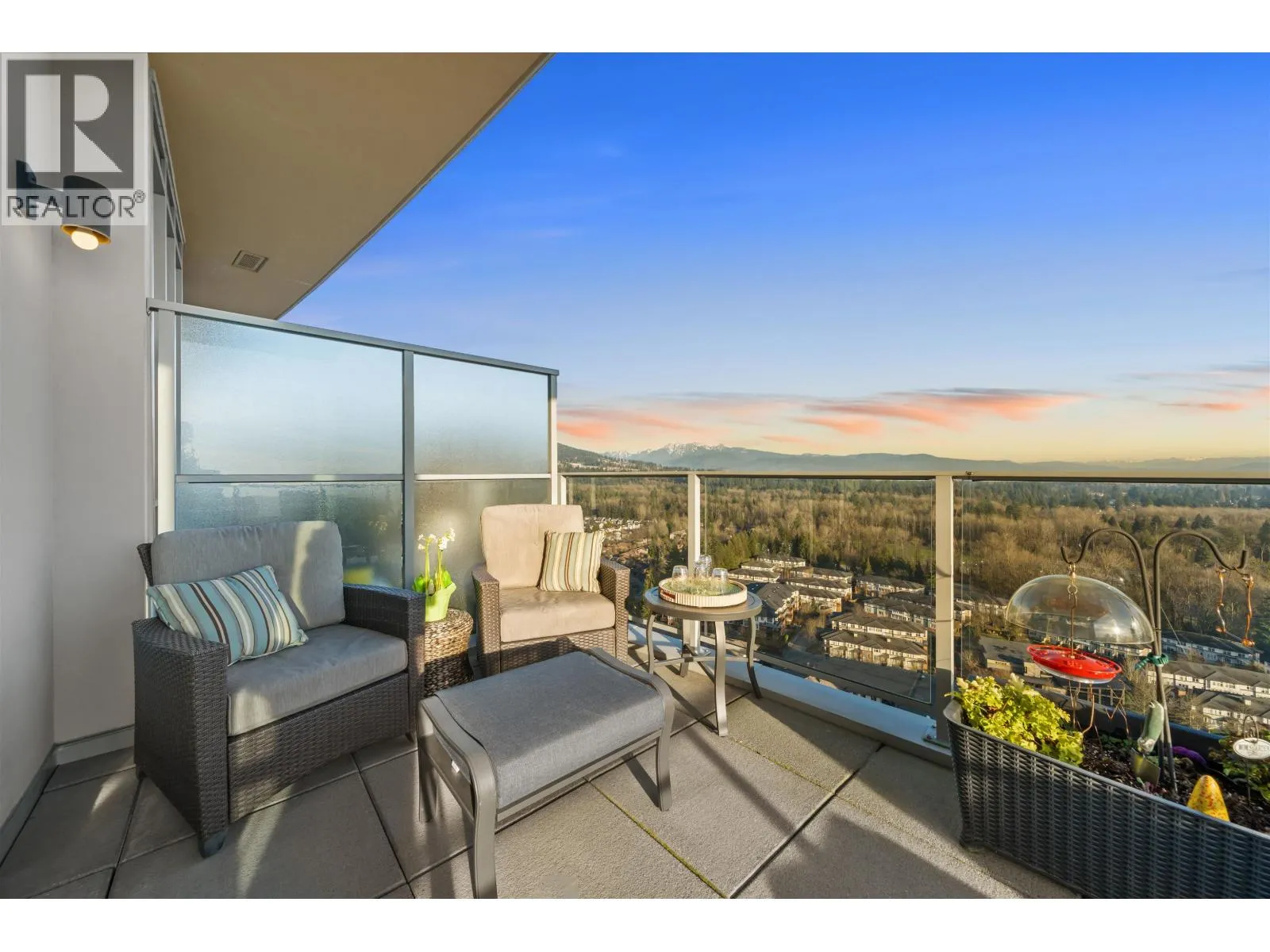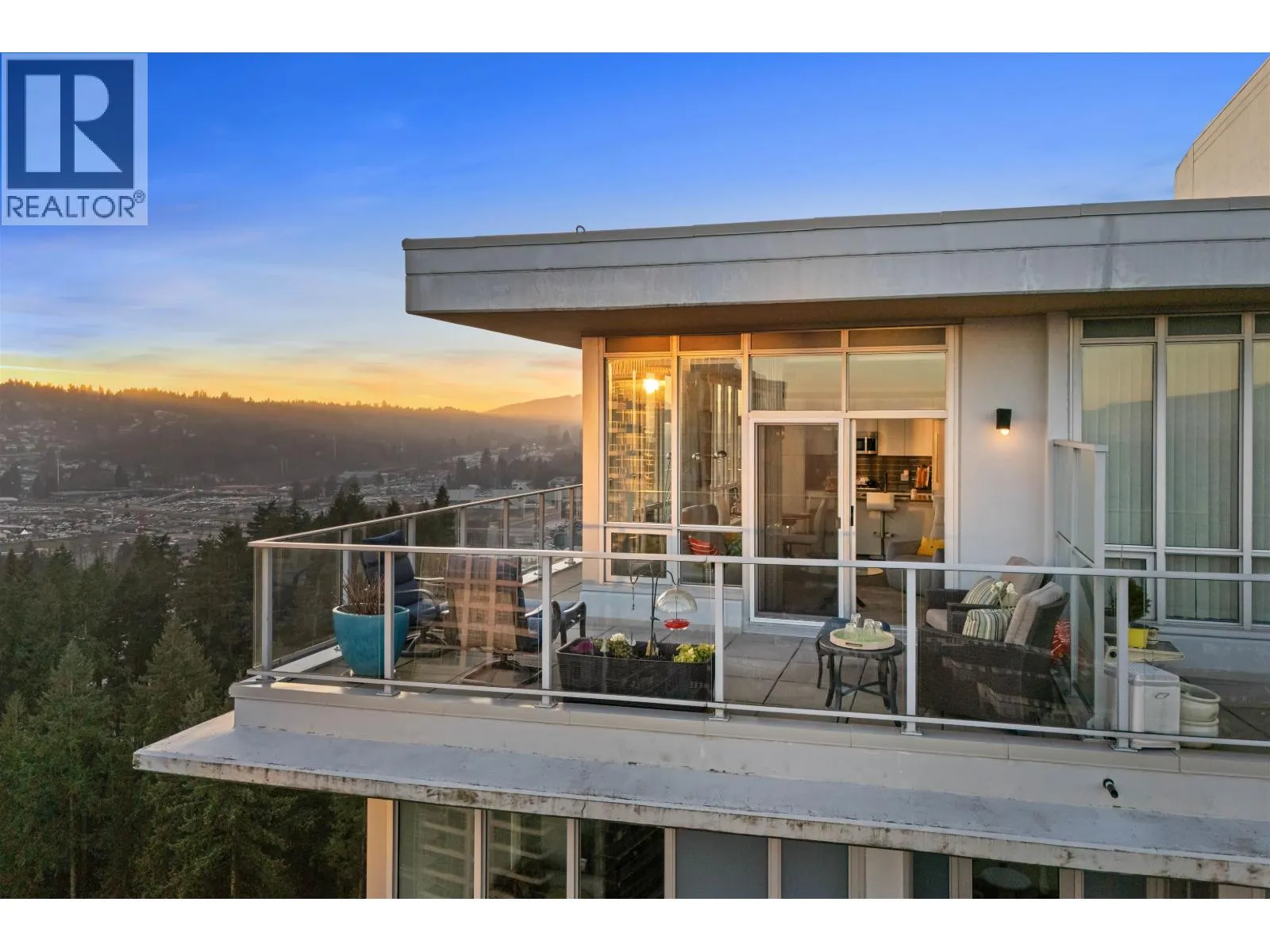 Exclusive Top-Floor Penthouse with an over 400sq. ft. wrap-around balcony offering south & east exposure & breathtaking sunrise views from the Golden Ears Mt. to Mt. Baker, the Fraser River, Port Mann Bridge, & SFU Burnaby Mt. This residence features, A/C, gourmet kitchen, gas stove & full Bosch appliance package, engineered hardwood flooring, 2 bdrms, 2 bathrooms plus den, separate laundry room, & ample storage. Includes 2 parking stalls & 2 storage lockers. Enjoy access to an exclusive private community recreation centre Nakoma Club, featuring a theatre room, executive meeting rooms, basketball/volleyball court, pool & games room, ping pong tables, swimming pool with Jacuzzi, guest suite, and banquet facilities. Great location walking distance to Skytrain & Lafarge lake. (id:27476)