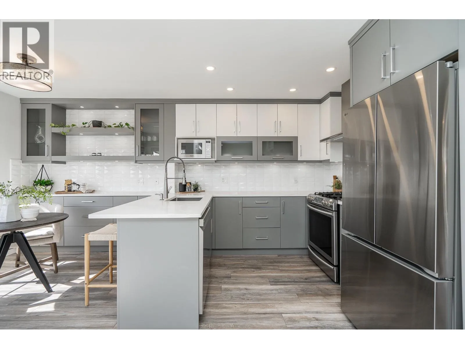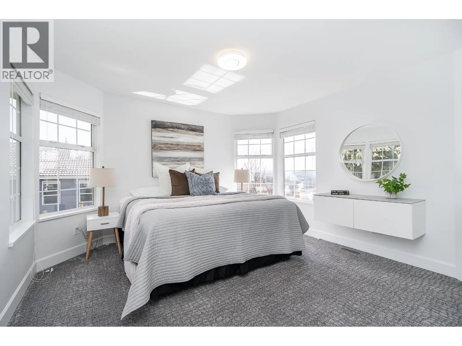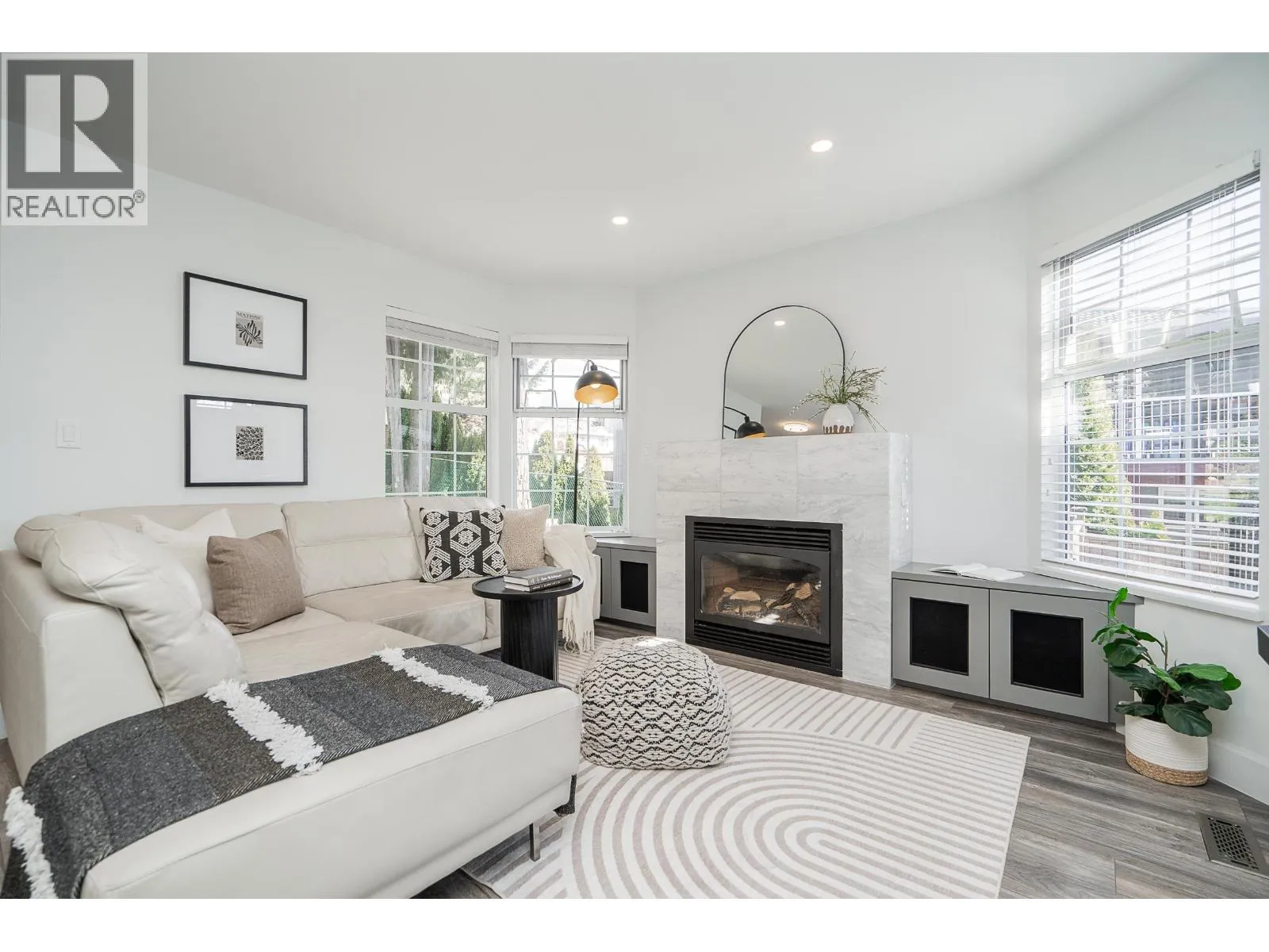 Duplex home with a single family home feel! This bright and airy 3 bed, 3 bath home offers gorgeous, updated living space with an impressive, private, sun-filled backyard! On the main is a generous living room with a cozy gas fireplace. Dining seamlessly connects to an updated kitchen w/quartz countertops, white cabinetry, gas cooktop, custom cabinetry, shelving and a breakfast nook framed by windows. Step off the dining room onto a large, wrap around, deck with awning and take in South views! Up the primary bed offers mountain and river views and a private ensuite. Two additional beds are well-sized and enjoy beautiful views. Heat pump, furnace, hot water tank 2023. Situated on a quiet street with quick access to the Highways, IKEA, Lougheed SkyTrain, amenities and shopping. (id:27476)