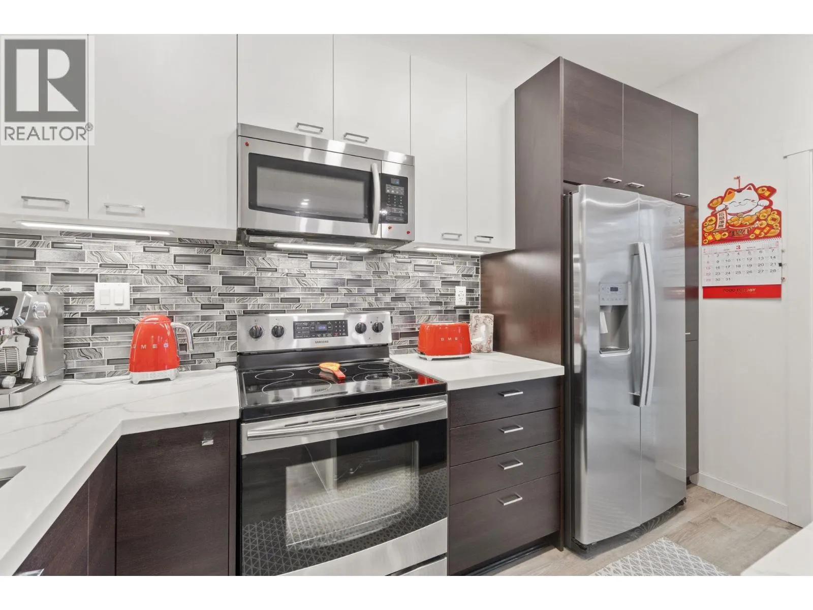 Welcome to this spacious 2 bed, 2 bath townhouse in Coquitlam! Offering a functional and family-friendly layout, the bright main level features a balcony and a modern kitchen with stainless steel appliances, built-in microwave, and a fridge with water and ice dispenser. The lower level includes a private patio and small yard-perfect for outdoor enjoyment. The garage provides plenty of parking and storage. Conveniently located with easy access to Lougheed Highway and Highway 1, close to shops, parks, and transit. Ideal for growing families! (id:27476)