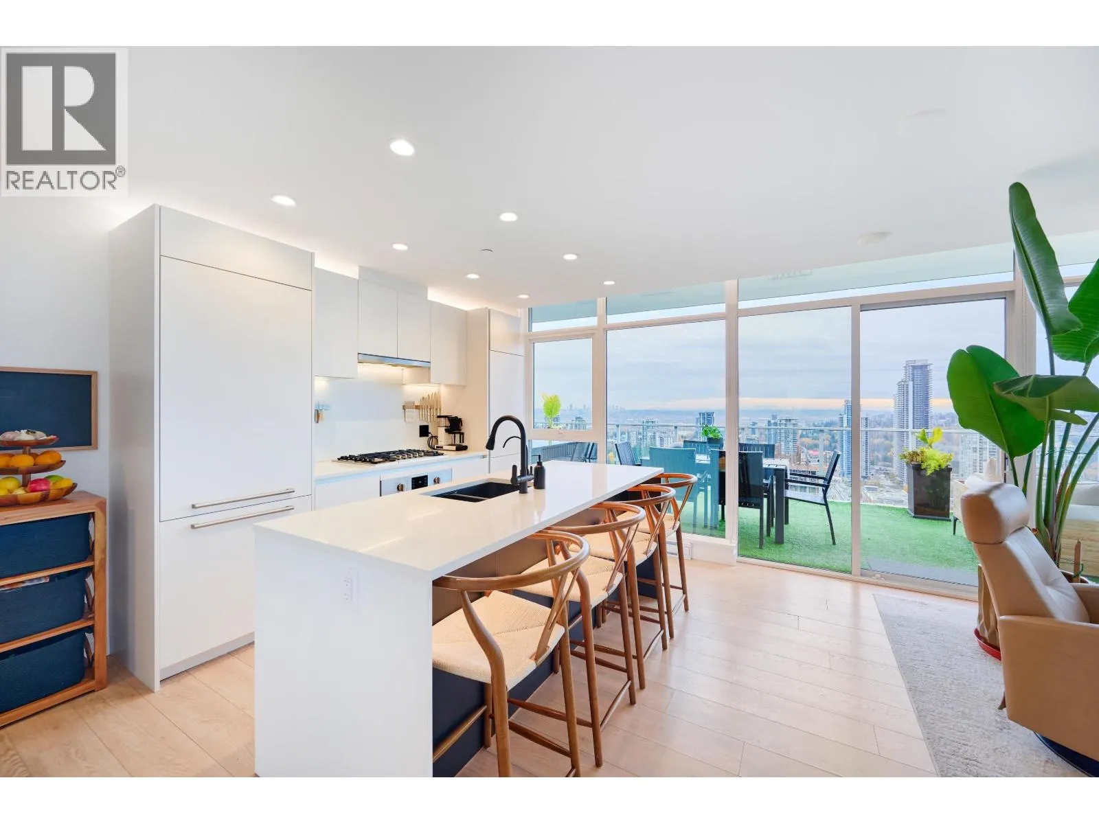 Here's something very special & truly unique. More than just a large condo, this is an opportunity for multi-generational living. 2 side by side sub-penthouse homes w/4 bedrooms, 4 baths, 2 kitchens & so on, allow for kids in university or aging parents to be close by yet independent. 1200 sf of room size outdoor space w/views from Mt. Baker to Nanaimo blend this forever home together. Full height glass walls wrap around from east to west for all day sun. Inside you'll find upgraded plumbing fixtures & cabinet hardware, smart sound & lighting (incl. closets), A/C, integrated Bosch appliances w/gas plus 3 parking & 3 large lockers. Bldg amenities incl pool, gym, dog run, BBQ area & concierge, for a complete, bespoke package. Location is 10/10, close to skytrain & SFU. Shown by appointment. (id:27476)