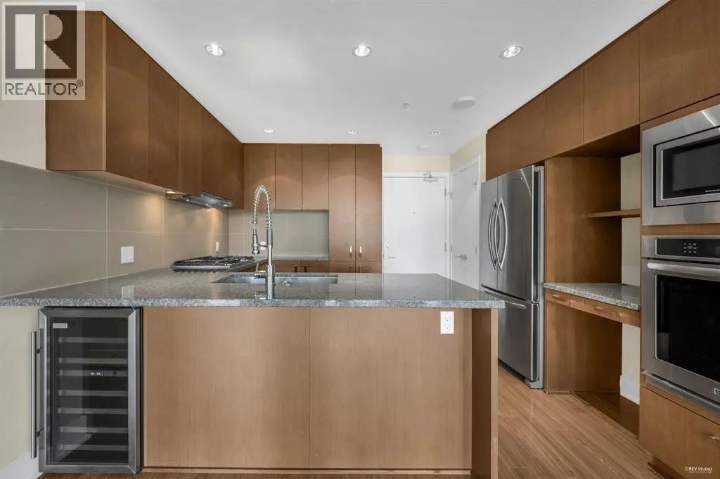 Welcome to M-TWO, ideally situated just a stone's throw from Coquitlam Town Center, various dining establishments, and retail stores. It's within easy walking distance of the Evergreen Skytrain station and Douglas College, as well as the Coquitlam Aquatic Center, Coquitlam Public Library, and Lafarge Lake. Adding to the appeal is the beautiful open concept Kitchen, equipped with high-quality stainless steel Kitchen-Aid appliances, granite countertops, wine fridge and a convenient integrated workspace. This unit faces Northeast and boasts splendid mountain vistas from both the balcony and bedroom. Included with this unit are one parking space and one storage locker. VR TOUR: https://app.immoviewer.com/portal/tour/2974589?accessKey=64a5 (id:27476)