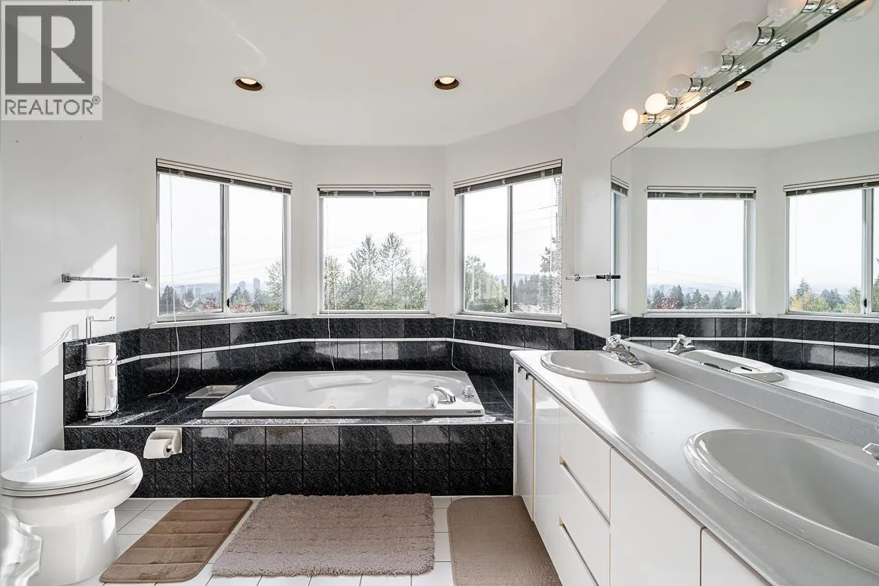 Welcome to this gorgeous well-maintained family home situated on a quiet crescent in the prestigious Westwood Plateau with spectacular southern Valley views. This beautiful property sits on 10500 Sqft flat lot with fully fenced backyard, features over 4300 SqFt of living on 3 levels with walkout basement. The main floor boasts a bright open floor plan w/spacious living area, vaulted ceilings, formal dining room & kitchen w/large centre island. Upper level, consists of 4 large bdrms including an exquisite master with a walk-in closet, "spa-like" ensuite & spectacular views. Lower level boasts spacious & bright one bdrm and huge den (2 bdrm) in-law suite with separate laundry, sauna & entrance. This fabulous home is located just minutes away from Town Centre Park & schools. (id:27476)