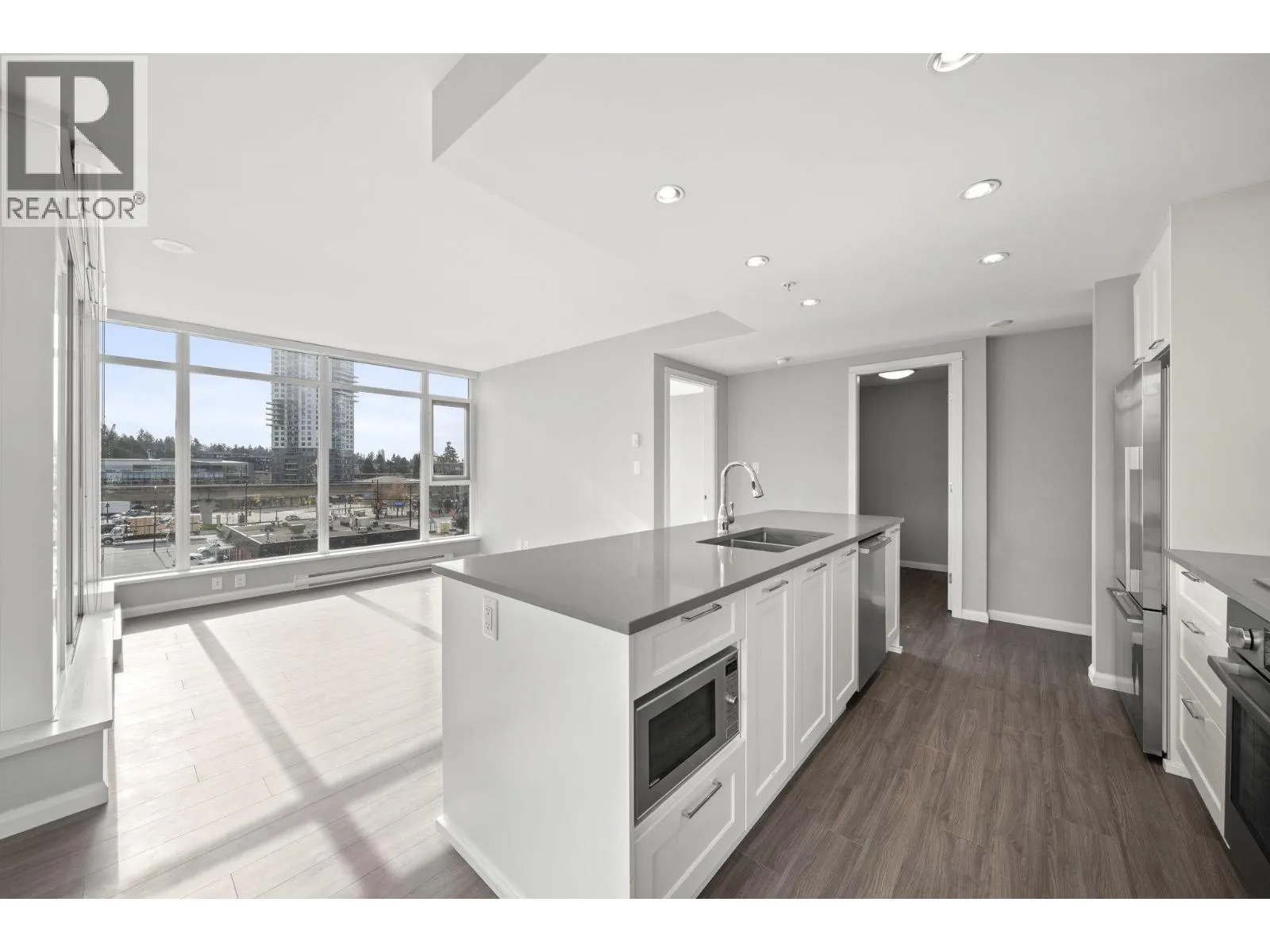 Welcome to Crown by reputable builder, Beedie. This large, 945 sf, 2 bed & den, 2 bath corner unit features a superb layout: bedrooms separated for privacy, a gourmet kitchen with a large island, a wide foyer, and a den/office. Floor to ceiling windows bathe the home in natural light. Elegant design including a herringbone backsplash, marble-style bathroom vanities, and premium appliances result in a timeless appeal. Amenities include an exercise centre, party room, outdoor lounge with BBQ, guest suite, and bike storage. Rest assured knowing the complex is in solid condition, with a smart strata council and management team. Located near shops, restaurants, the SkyTrain, Lougheed Mall, Safeway, golf course, community centre, and SFU. 1 parking + 1 locker (6x9). (id:27476)