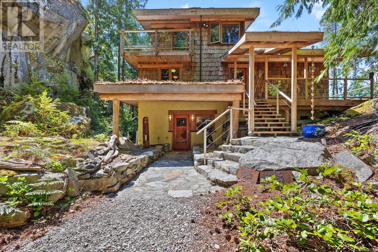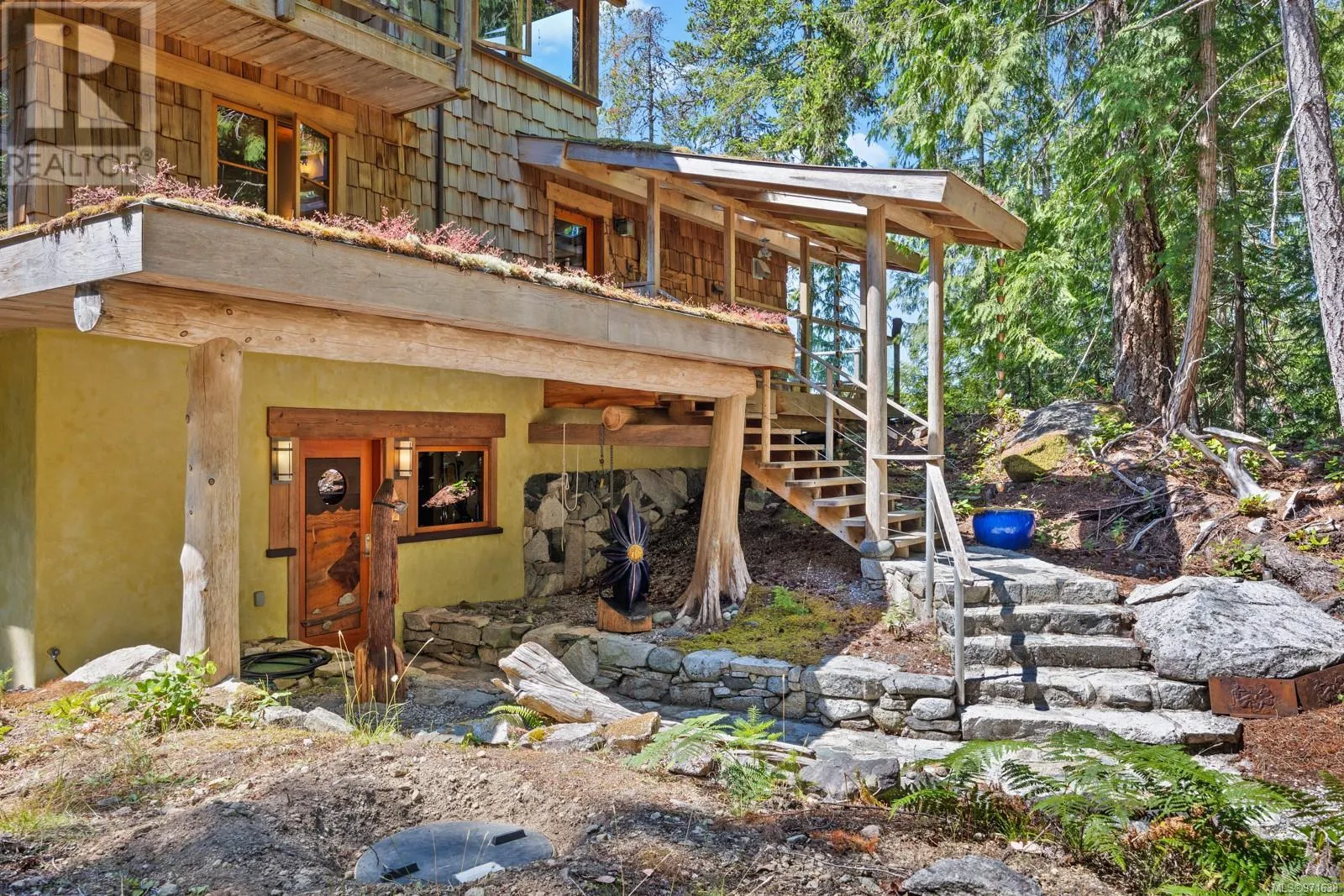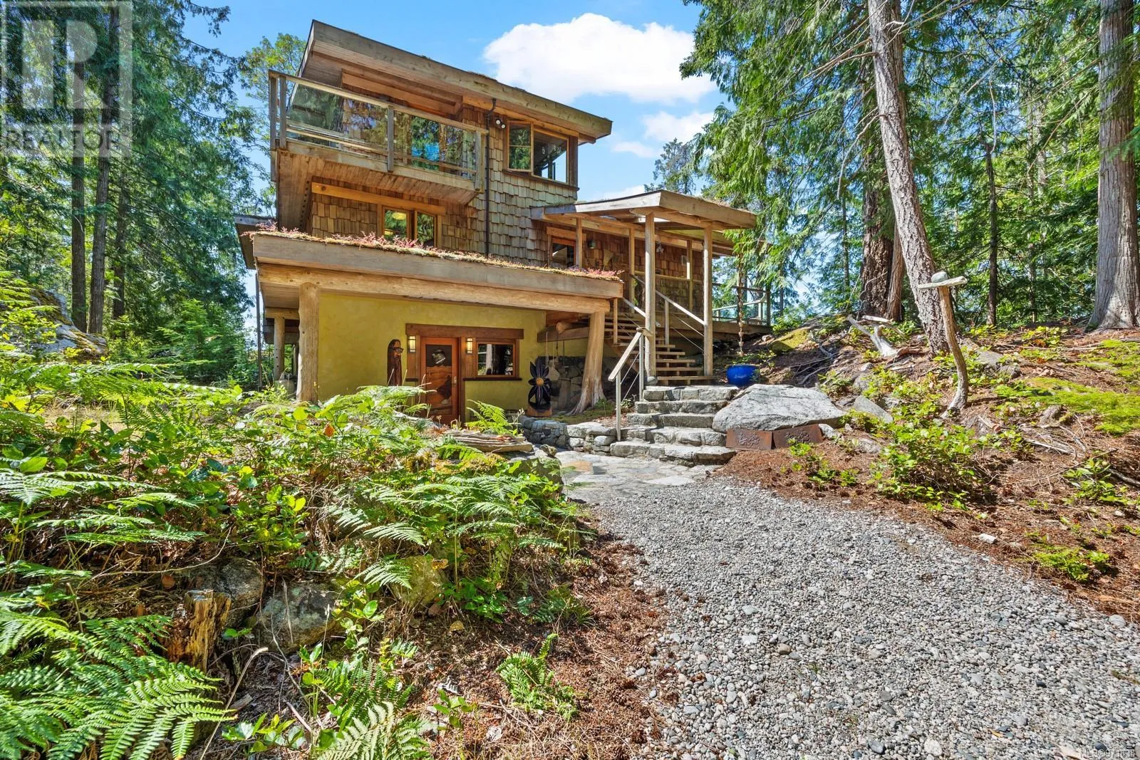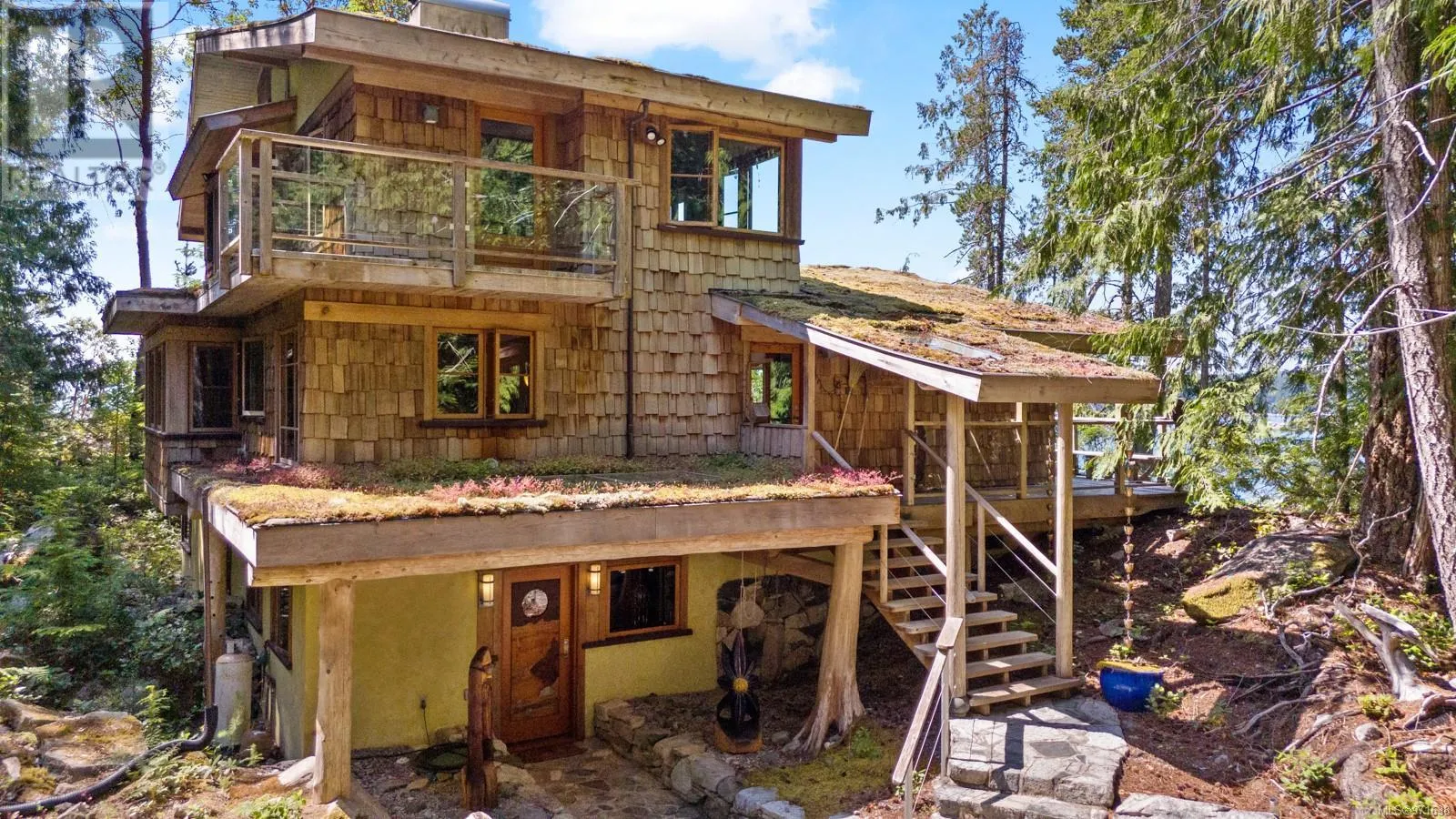 Welcome to your dream retreat, a stunning 132-acre walk-on waterfront property on Cortes Island with breathtaking vistas, multiple bays, and beach fronts on both Gorge Harbour and looking towards Marina Island. This 3263 sq ft custom-built home is a true masterpiece, combining exquisite design with exceptional functionality. This work of art home features maple floors, pine ceilings, and custom wood doors and windows that enhance its rustic elegance. The gourmet kitchen boasts garnet inlaid granite countertops, a farm sink, and maple cabinets. There is a wood dumbwaiter for easily transporting firewood from the lower floor. Completely off-grid, this home offers sustainable living with a green (living) roof, clear fir trim on the windows and baseboards, and hidden gutters with downspouts. The property includes a private dock inside the protected waters of Gorge Harbour, making it accessible in any weather. Blanketed by heavily forested land, the property offers incredible view bluffs and serene walking trails. The amazing vistas and tranquil surroundings make this a perfect sanctuary for nature lovers. Foreign buyers are allowed on the Discovery Islands. This unique property promises an unparalleled living experience where luxury meets sustainability amidst stunning natural beauty. (id:27476)