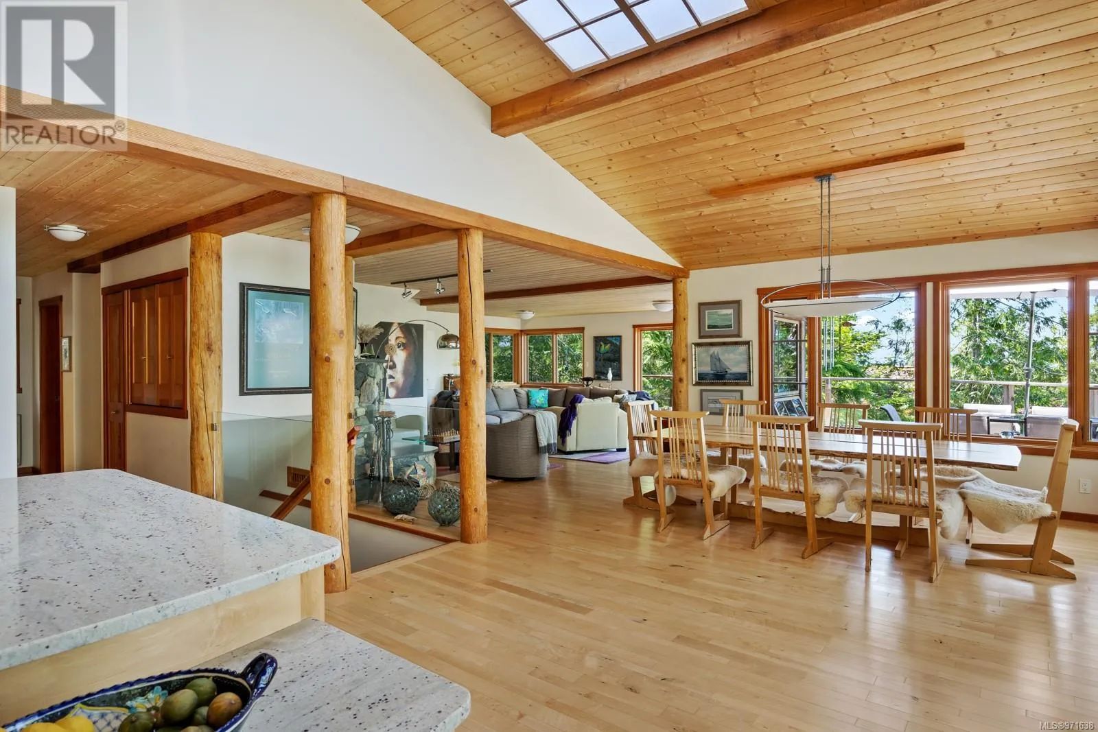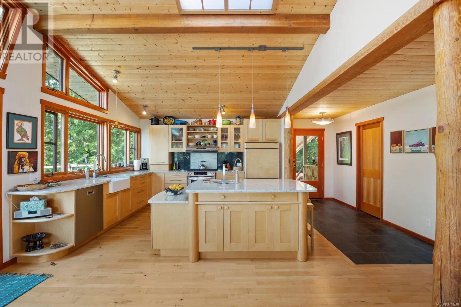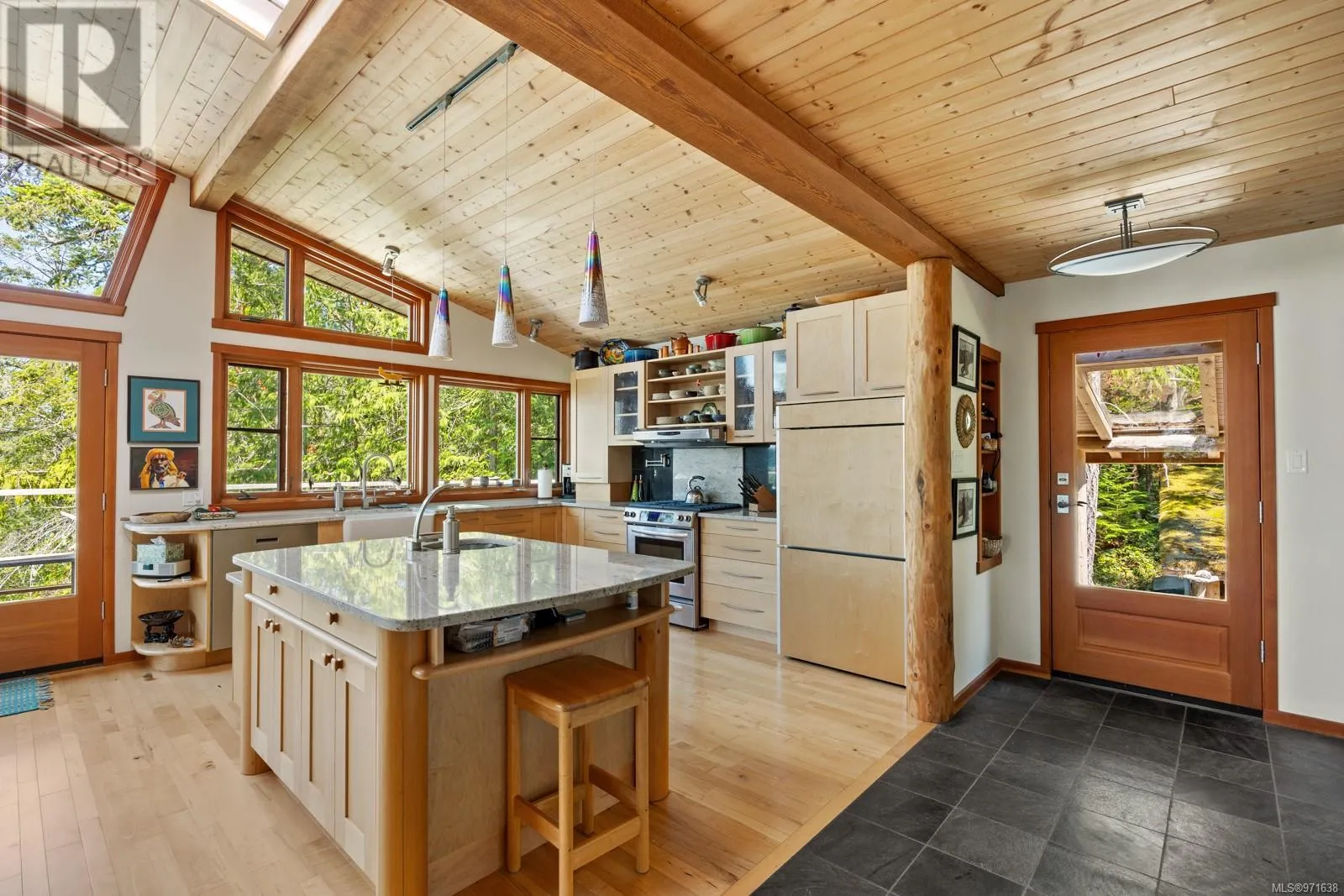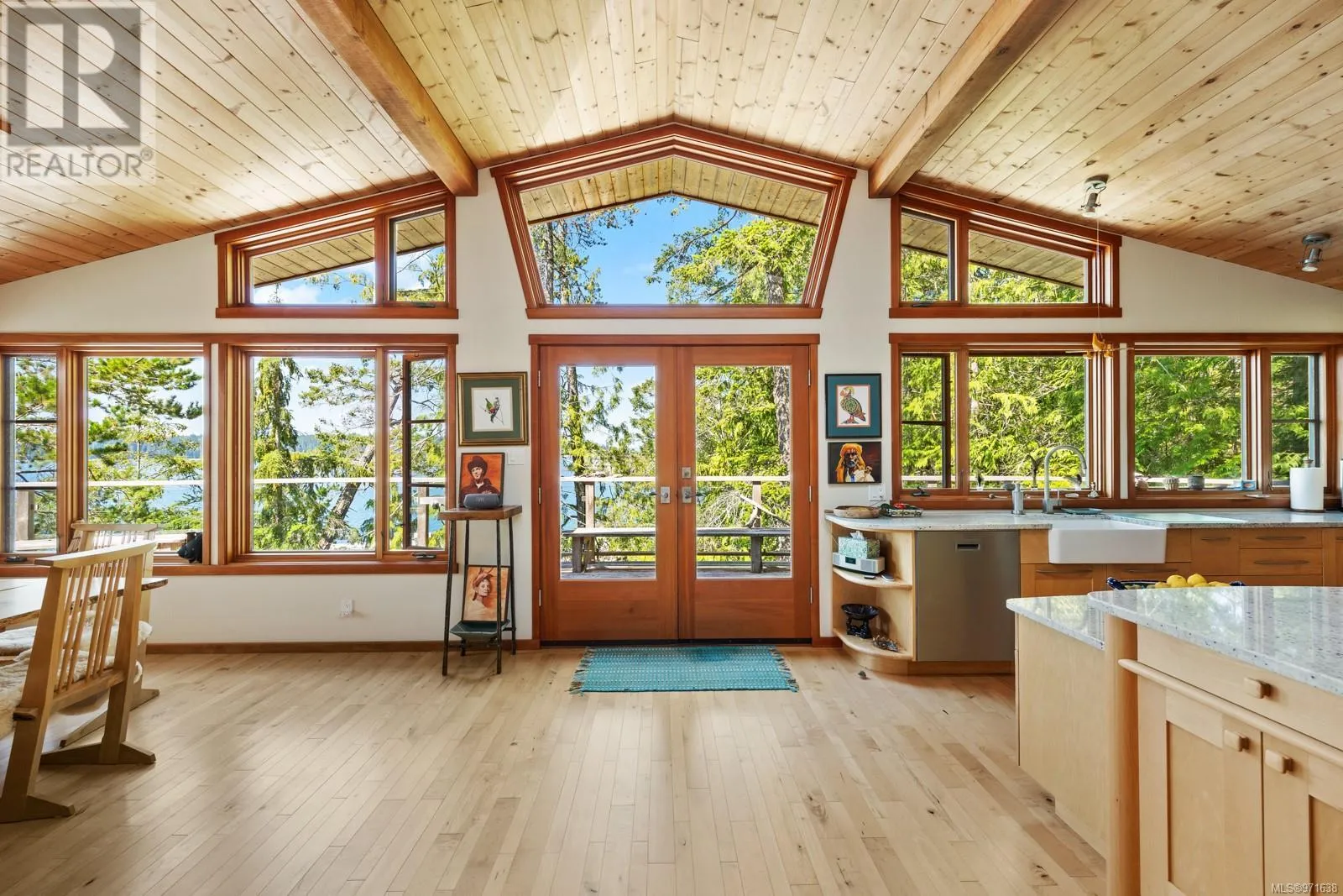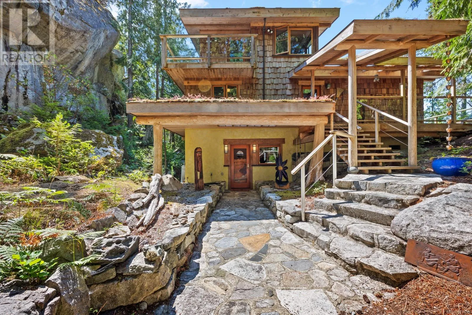 Welcome to your dream retreat, a stunning 132-acre walk-on waterfront property on Cortes Island with breathtaking vistas, multiple bays, and beach fronts on both Gorge Harbour and looking towards Marina Island. This 3263 sq ft custom-built home is a true masterpiece, combining exquisite design with exceptional functionality. This work of art home features maple floors, pine ceilings, and custom wood doors and windows that enhance its rustic elegance. The gourmet kitchen boasts garnet inlaid granite countertops, a farm sink, and maple cabinets. There is a wood dumbwaiter for easily transporting firewood from the lower floor. Completely off-grid, this home offers sustainable living with a green (living) roof, clear fir trim on the windows and baseboards, and hidden gutters with downspouts. The property includes a private dock inside the protected waters of Gorge Harbour, making it accessible in any weather. Blanketed by heavily forested land, the property offers incredible view bluffs and serene walking trails. The amazing vistas and tranquil surroundings make this a perfect sanctuary for nature lovers. Foreign buyers are allowed on the Discovery Islands. This unique property promises an unparalleled living experience where luxury meets sustainability amidst stunning natural beauty. (id:27476)