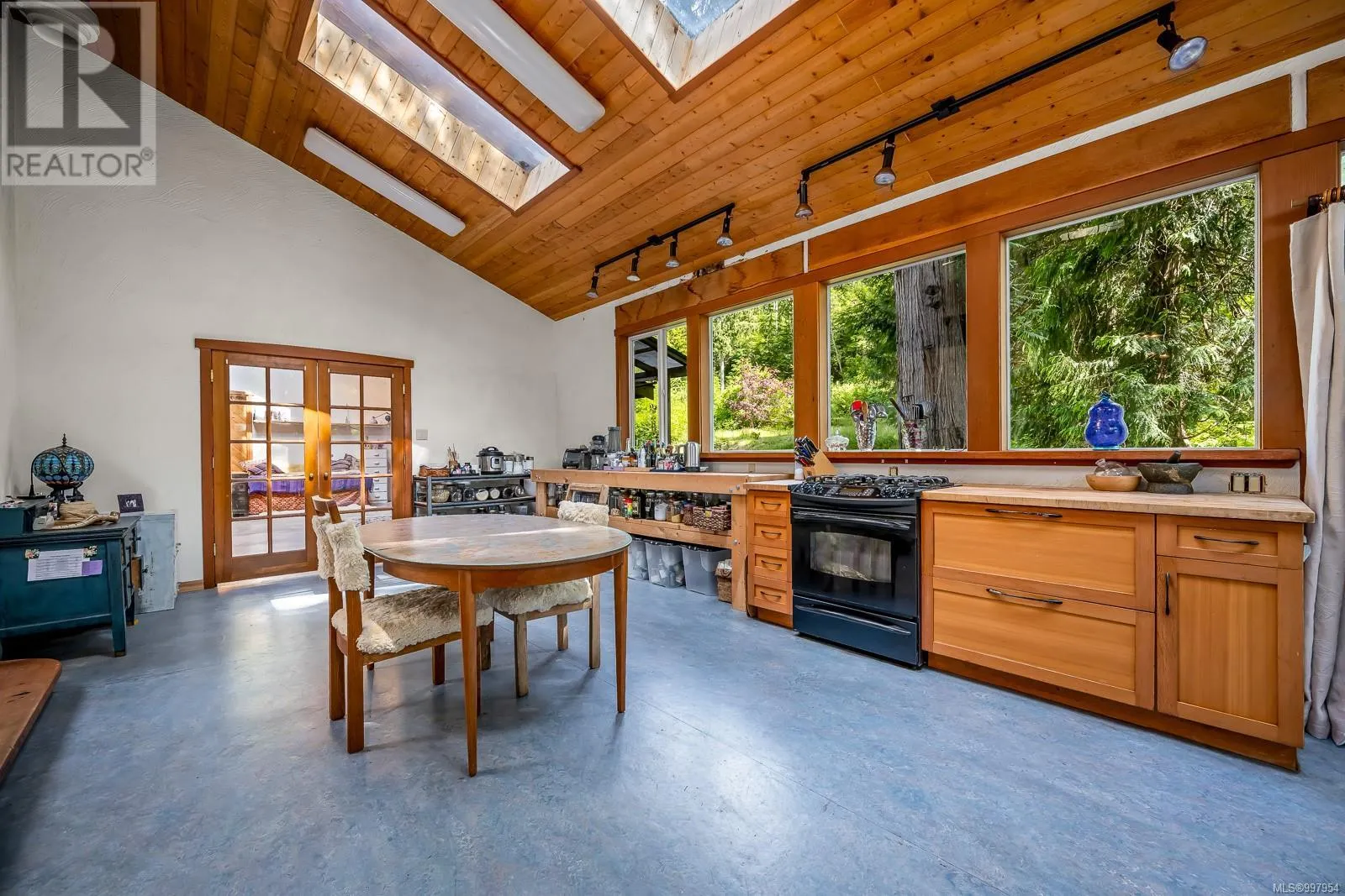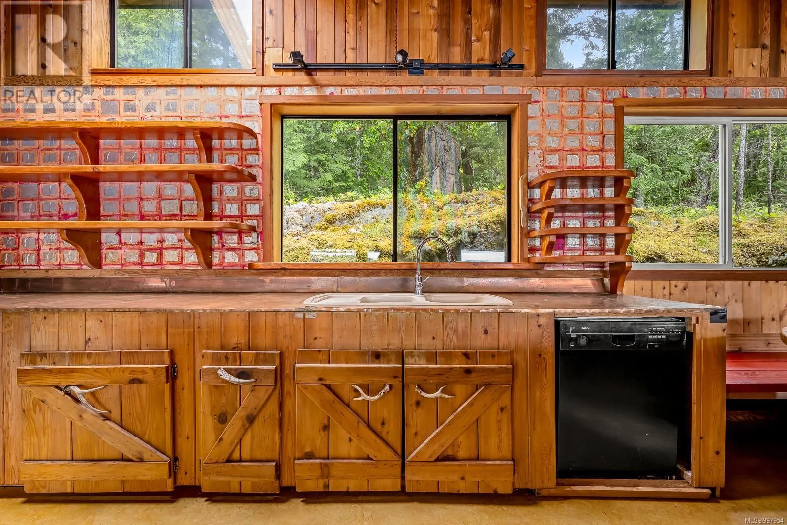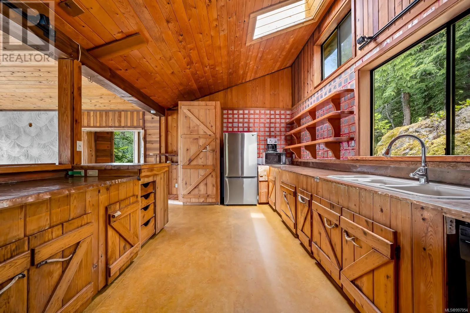 Rare opportunity to own a stunning 10.93-acre waterfront property in Gorge Harbour with a private 80 ft dock, two houses, and a cabin. The 2,013 sq ft main home offers 1 bed, 2 baths, office, den, and sweeping ocean views. Warm wood detailing, ample light, and two wood stoves create a warm atmosphere. A bright, 2223 sq ft studio near the garden features high ceilings, a loft bedroom, and a spacious kitchen/dining areaâideal for guests or creative projects. The 658 sq ft cabin includes 1 bed, 1 bath, a wood stove, and water views. All homes share a spring water system and a permitted septic. Paved driveway, fruit trees, garden, and rustic workshop complete this exceptional island retreat. Perfect for multi-family living, co-ownership, or rental potential. All measurements are approximate. Buyer to verify if important. Property sold as is. (id:27476)