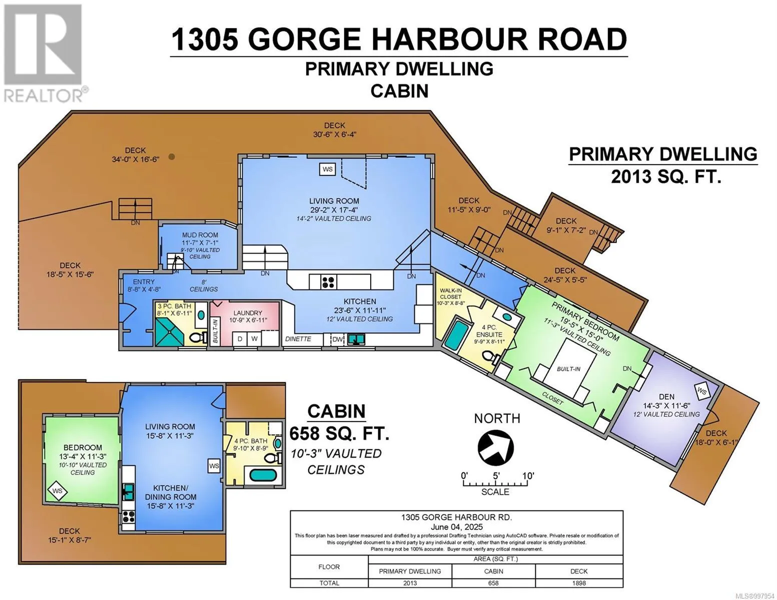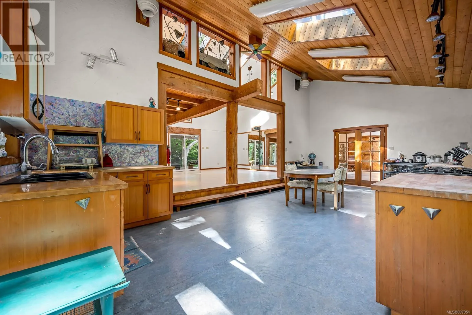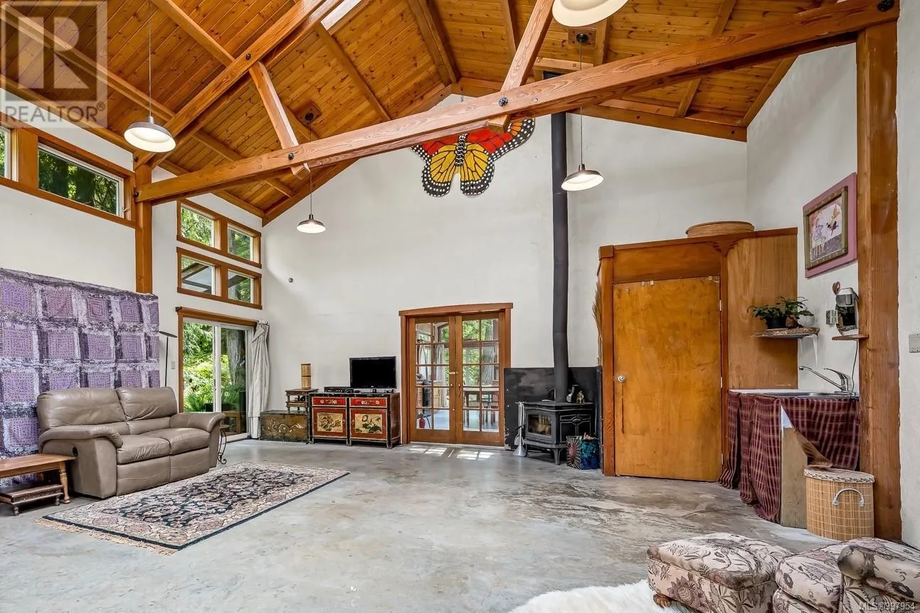 Rare opportunity to own a stunning 10.93-acre waterfront property in Gorge Harbour with a private 80 ft dock, two houses, and a cabin. The 2,013 sq ft main home offers 1 bed, 2 baths, office, den, and sweeping ocean views. Warm wood detailing, ample light, and two wood stoves create a warm atmosphere. A bright, 2223 sq ft studio near the garden features high ceilings, a loft bedroom, and a spacious kitchen/dining areaâideal for guests or creative projects. The 658 sq ft cabin includes 1 bed, 1 bath, a wood stove, and water views. All homes share a spring water system and a permitted septic. Paved driveway, fruit trees, garden, and rustic workshop complete this exceptional island retreat. Perfect for multi-family living, co-ownership, or rental potential. All measurements are approximate. Buyer to verify if important. Property sold as is. (id:27476)