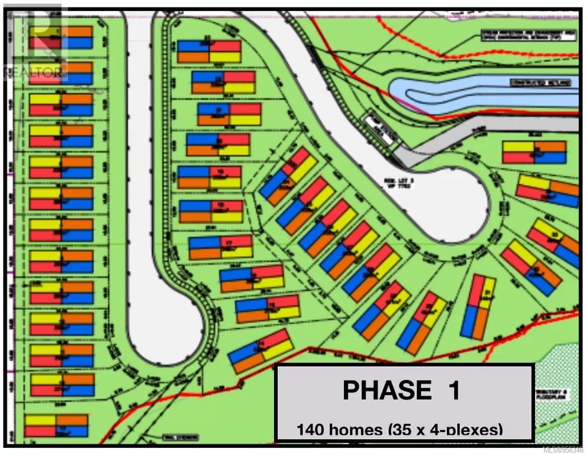 For additional information, please click on Brochure button below. SHOVEL READY ...PLR ISSUED ...DP... approved.... 156 Fourplexes...39 x SSMUH triplex/ fourplex FEE SIMPLE lots. The yield allows 39 Single fam w/ suites, or 78 Duplexes w/ suites, or 121 TRIPLEXES, Under current new Zoning/ Approvals, PLR issued. List price is only $ 50 k / per door, land cost !!! DP approved. Phase 1 is 35 lots for the first 140 homes, or 121 Triplexes, or 70 Duplexes w suites, or just do 35 Single fam w/ suites. 39 x lots @ $429k/ lot) = $ 16.7 M OR, rezone as CD multi-fam strata for low rise, 4 level, 355 apt block units on this prime 18.7 AC ''ready to go'' property. Permits in place & trees already cleared & grubbed & internal roads roughed in & pond's already approved & constructed. * Devp is ripe for 2025/2026 home construction at this great location. Courtenay housing demand, has a significant pent up housing shortage, and very large demand for both affordable homes and also rental units too. 18.7 ACRES (in city limits) DEVELOPMENT PERMIT ** DP APPROVED** PLR is issued Vendor financing available, additional fees may apply (id:27476)