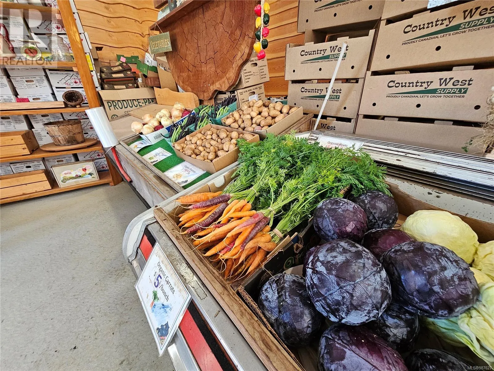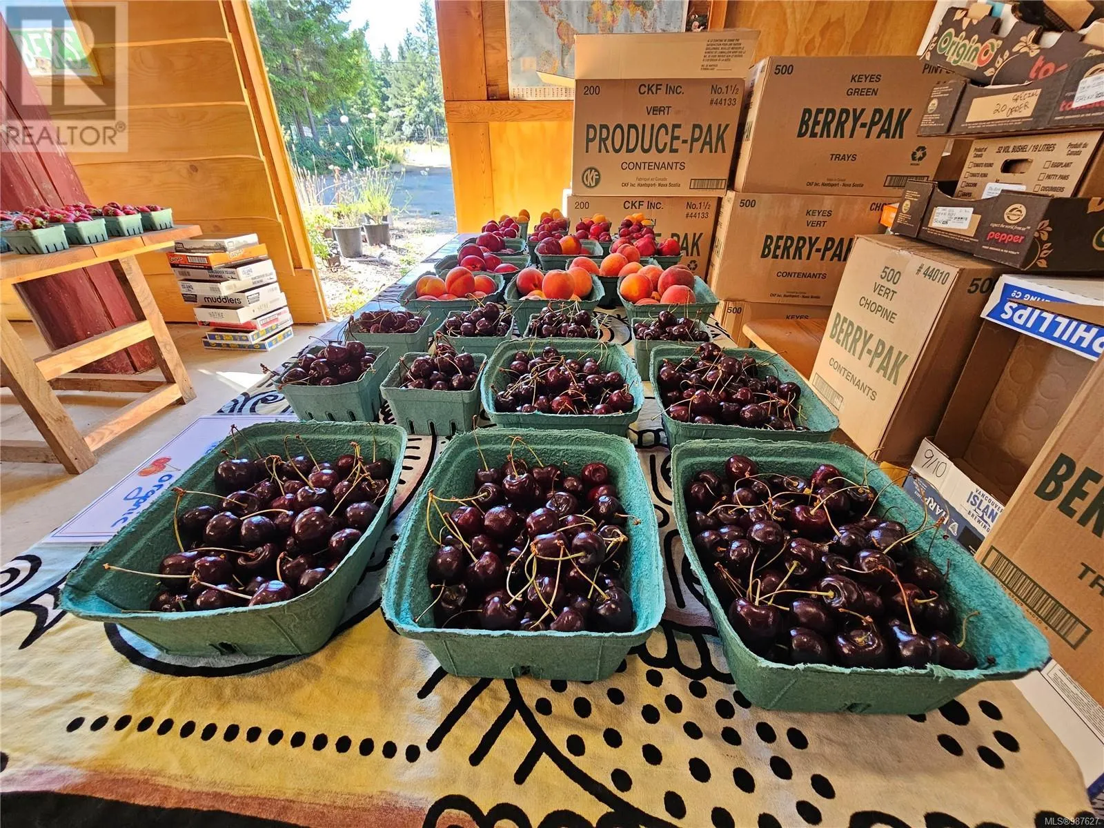 Dream rural estate on 17.23 acres in North Courtenay. This custom 5-bed, 4-bath home features soaring ceilings, Brazilian cherry hardwood, a woodstove, heat pump, and a designer kitchen with butlerâs pantry. The primary bedroom is on the main floor. One acre is a working berry and vegetable farm with a roadside stand offering blueberries (multiple varieties), cherries, strawberries, produce, and cut flowers. A 1-bed, 1-bath tiny home (unfinished) supports multigenerational living or rental use. There's also a second home with its own septic and well, plus an unfinished guesthouse with 1 bathroom. Outbuildings include greenhouses, workshop, studio, gazebo, boat/machinery storage, 3 bay garage, two walk-in coolers, and a kiosk. Three 200-amp services. Set back from the road for privacy and backing onto a creek. Minutes to Kitty Coleman Beach, Seal Bay Park, airport, college, and shopping. A unique lifestyle and income opportunity. (id:27476)