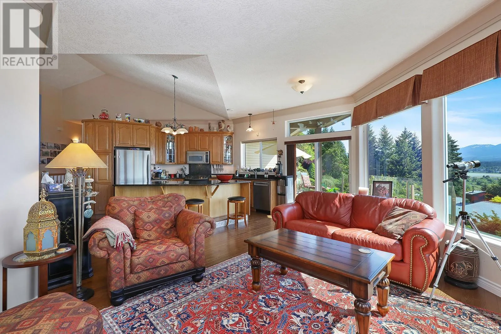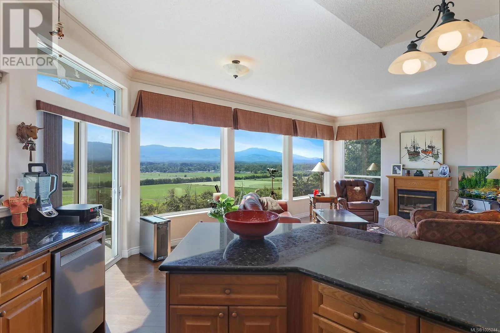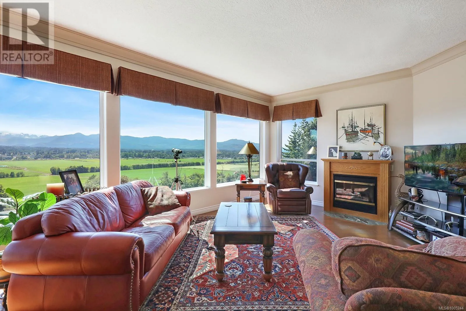 Welcome to 1437 Valley View Drive - A Scenic East Courtenay Gem! This spacious 5-bedroom, 3-bathroom home blends comfort with amazing panoramic valley and mountain views that will never get old. On the main level you have an open concept kitchen with patio access to enjoy the views, and a family room with a gas fireplace. Also, on the main you have a separate dining room/Living room, the primary bedroom with a large ensuite with a soaker tub, w/c and gas fireplace to cozy up on those chilly nights, plus 2 more bedrooms, main bathroom and laundry room. Downstairs there is another bedroom, rec room/gym, office, wine room and media room. Great for extended family visits. Outside you have a sloping landscaped backyard, patio area with a hot tub for relaxing. Just minutes from all amenities and great schools! (id:27476)