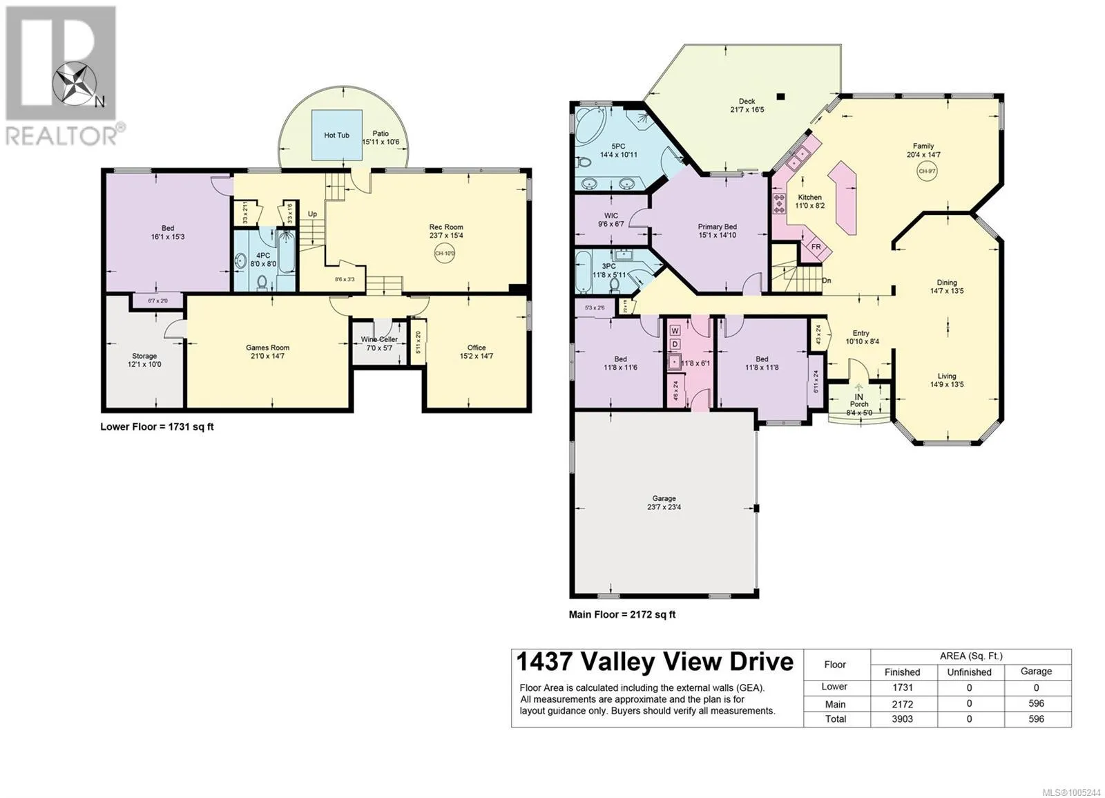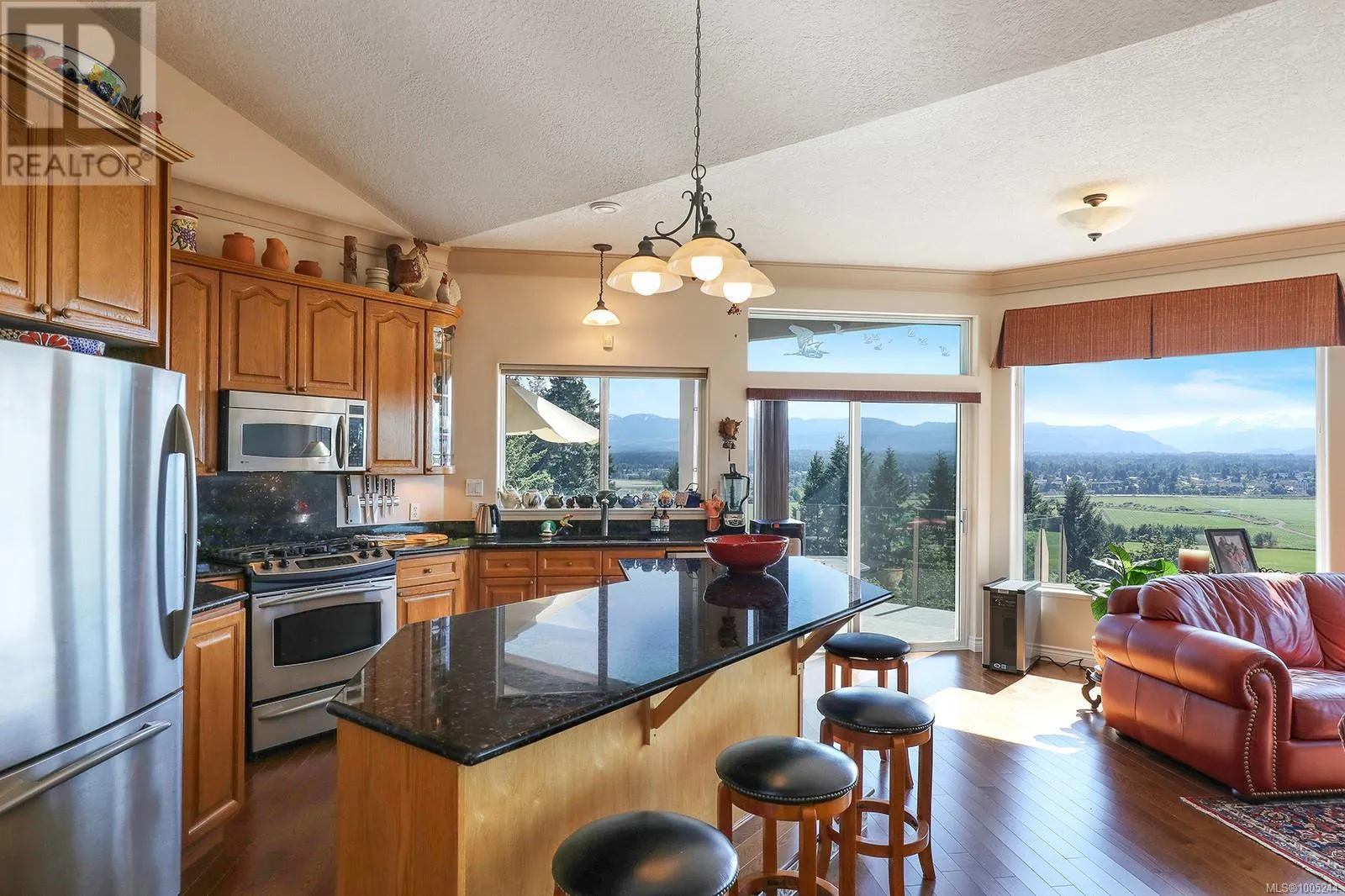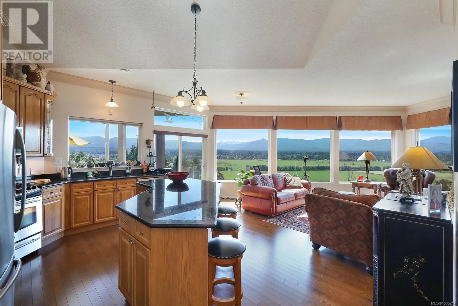 Welcome to 1437 Valley View Drive - A Scenic East Courtenay Gem! This spacious 5-bedroom, 3-bathroom home blends comfort with amazing panoramic valley and mountain views that will never get old. On the main level you have an open concept kitchen with patio access to enjoy the views, and a family room with a gas fireplace. Also, on the main you have a separate dining room/Living room, the primary bedroom with a large ensuite with a soaker tub, w/c and gas fireplace to cozy up on those chilly nights, plus 2 more bedrooms, main bathroom and laundry room. Downstairs there is another bedroom, rec room/gym, office, wine room and media room. Great for extended family visits. Outside you have a sloping landscaped backyard, patio area with a hot tub for relaxing. Just minutes from all amenities and great schools! (id:27476)