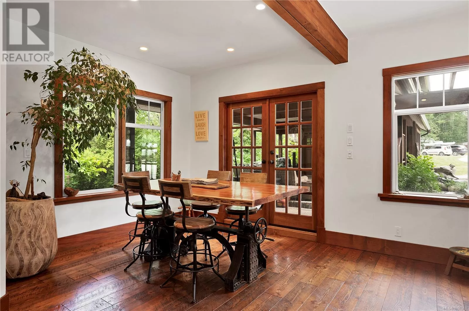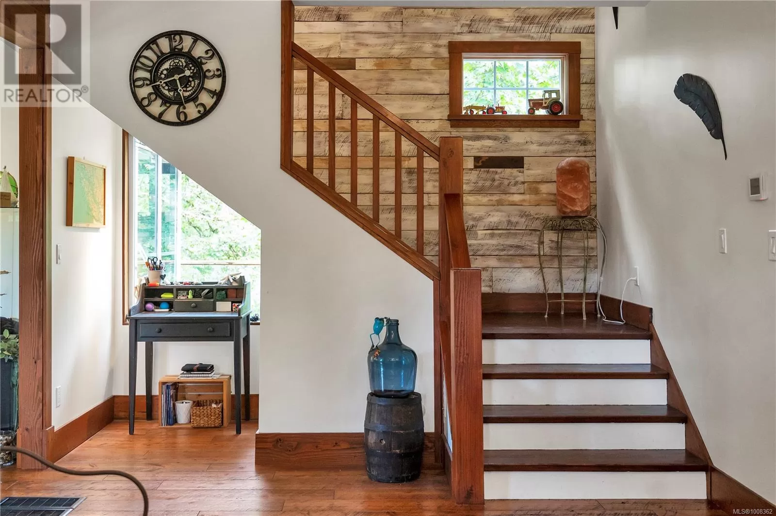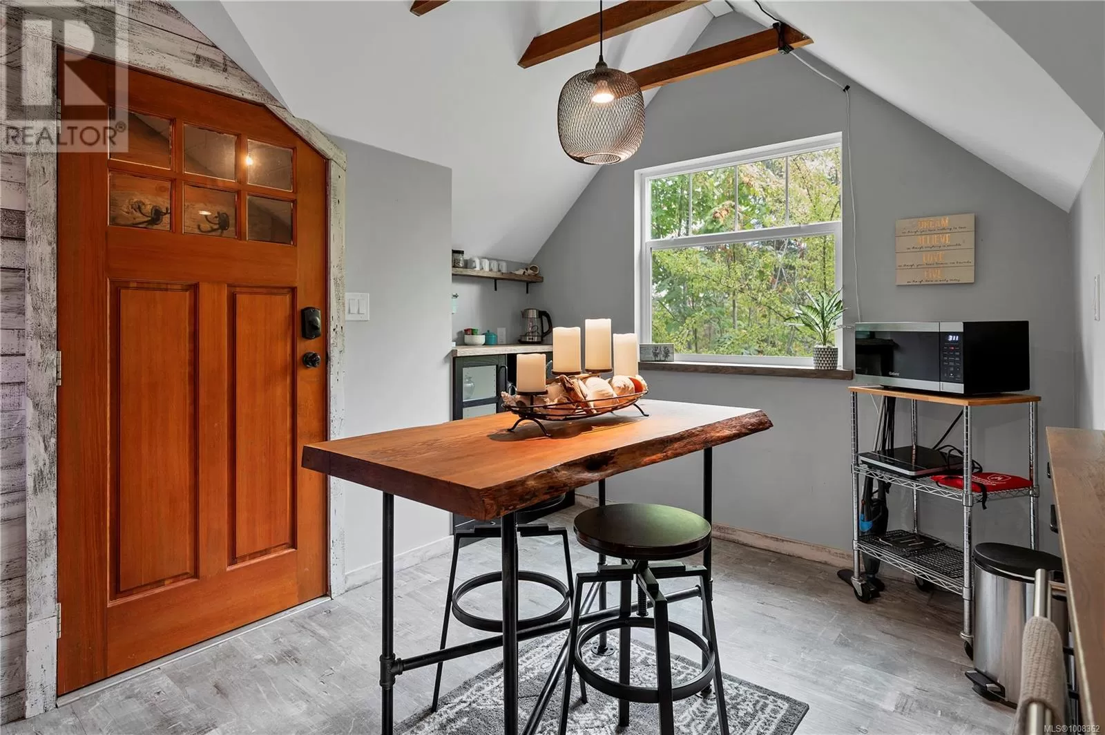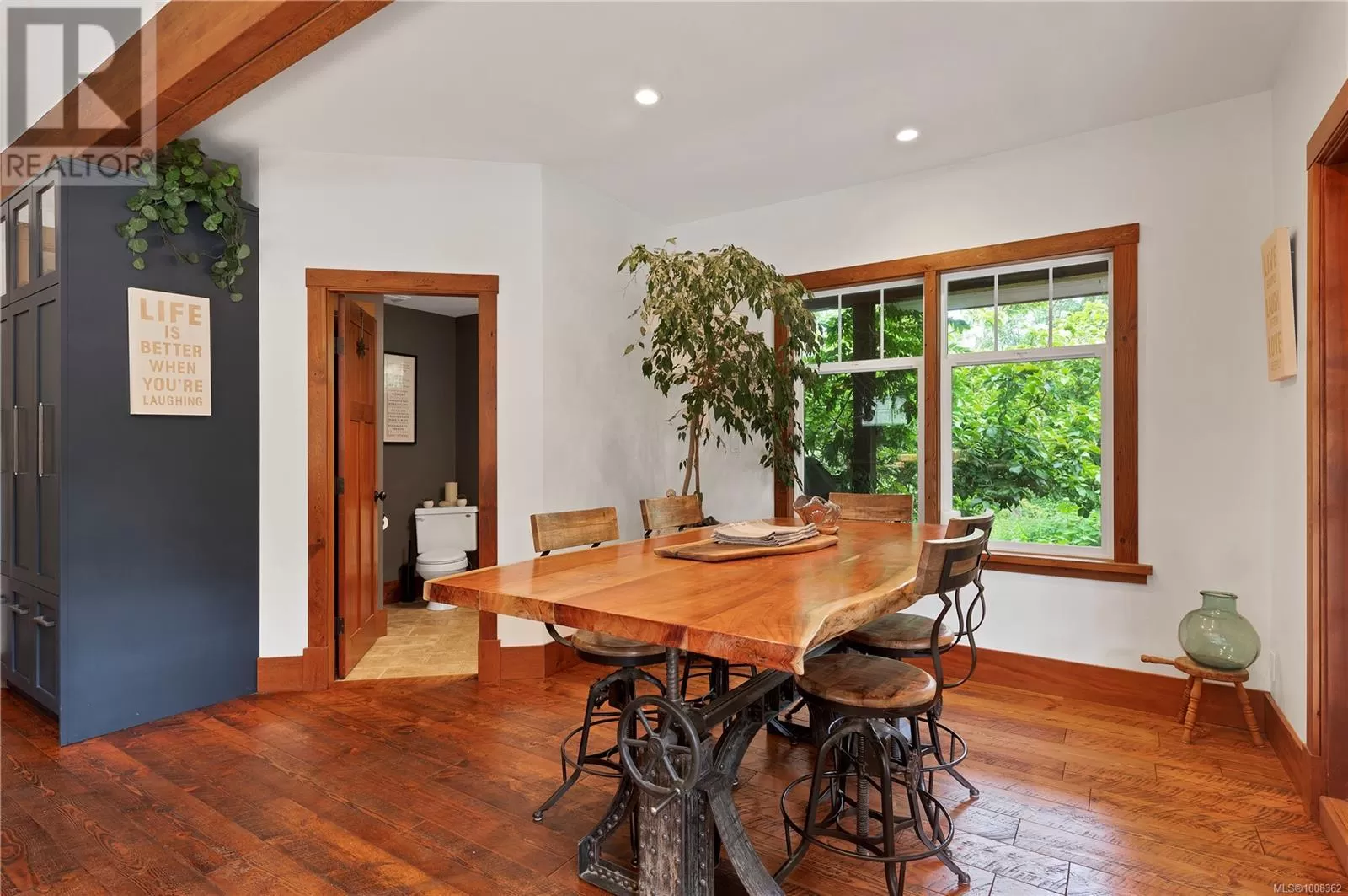 Beautifully renovated character home on acreage with seasonal creek in City of Courtenay. The home and grounds have been meticulously and lovingly restored and renovated to today's standards while maintaining the farmhouse character. Gourmet kitchen is a Chef's dream with attached dining room and access to covered patio area through beautiful French glass doors. River rock fireplace in living room with stone hearth is a stunning feature that will create a cozy atmosphere on cool evenings. Sunroom off the living room is flooded with light and gives access to back deck. Attached heated garage with suite above has been functioning as a very successful vacation rental. Detached workshop/garage has commercial/summer kitchen, 2pc bathroom & single heated garage for convenience and flexibility for this multi use space. The large barn has a 30' heated bay for RV/boat storage, animal side with stalls, workshop with welder & planer plugs. Electrical (2x 200 amp services into property) and plumbing upgraded with renovations. Versatile property currently operating successful home business onsite and has agricultural/development potential. Please read feature sheet for full list of updates and renovations. (id:27476)