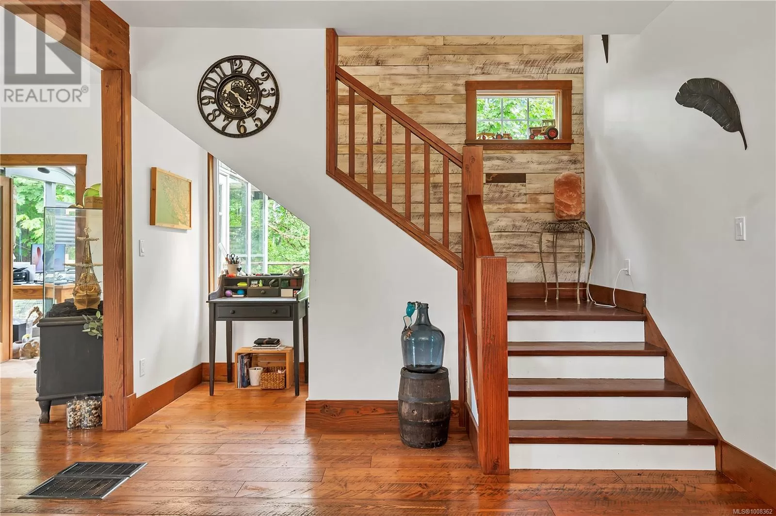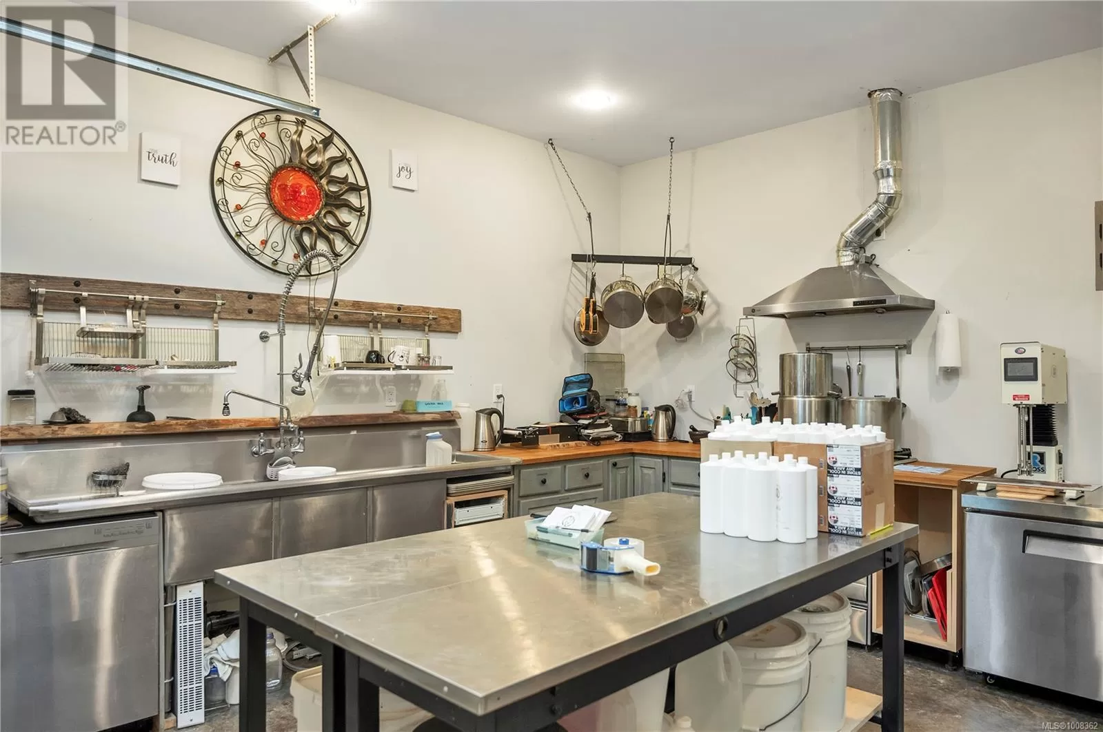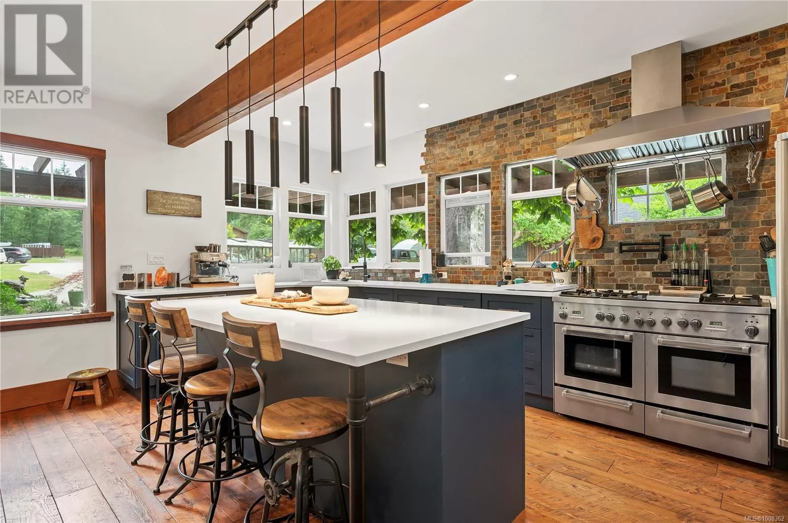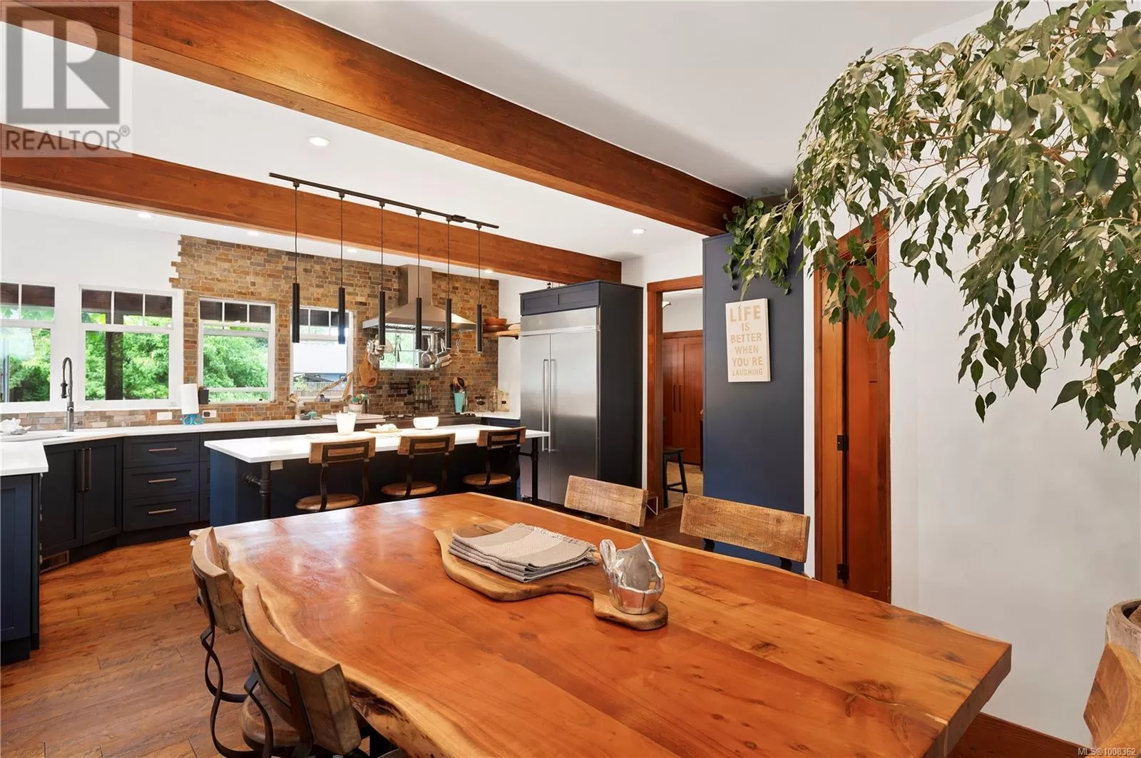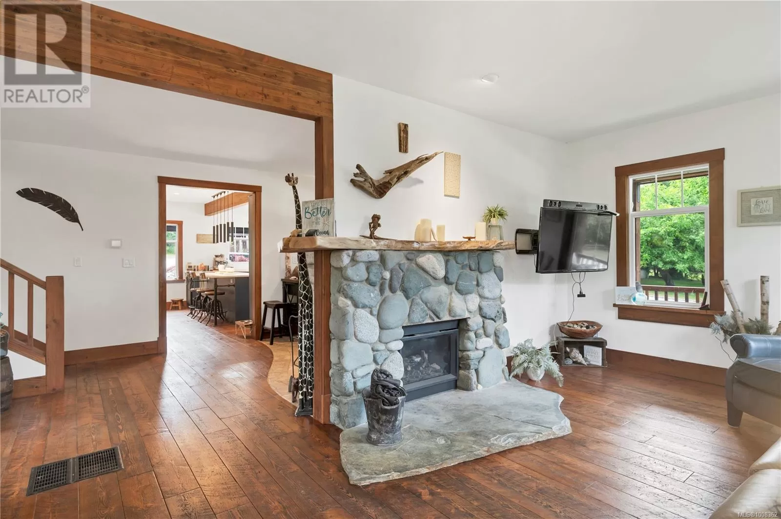 Beautifully renovated character home on acreage with seasonal creek in City of Courtenay. The home and grounds have been meticulously and lovingly restored and renovated to today's standards while maintaining the farmhouse character. Gourmet kitchen is a Chef's dream with attached dining room and access to covered patio area through beautiful French glass doors. River rock fireplace in living room with stone hearth is a stunning feature that will create a cozy atmosphere on cool evenings. Sunroom off the living room is flooded with light and gives access to back deck. Attached heated garage with suite above has been functioning as a very successful vacation rental. Detached workshop/garage has commercial/summer kitchen, 2pc bathroom & single heated garage for convenience and flexibility for this multi use space. The large barn has a 30' heated bay for RV/boat storage, animal side with stalls, workshop with welder & planer plugs. Electrical (2x 200 amp services into property) and plumbing upgraded with renovations. Versatile property currently operating successful home business onsite and has agricultural/development potential. Please read feature sheet for full list of updates and renovations. (id:27476)