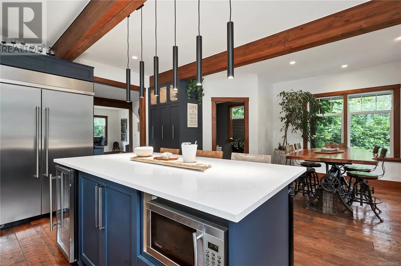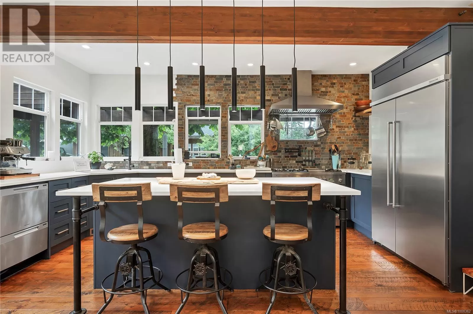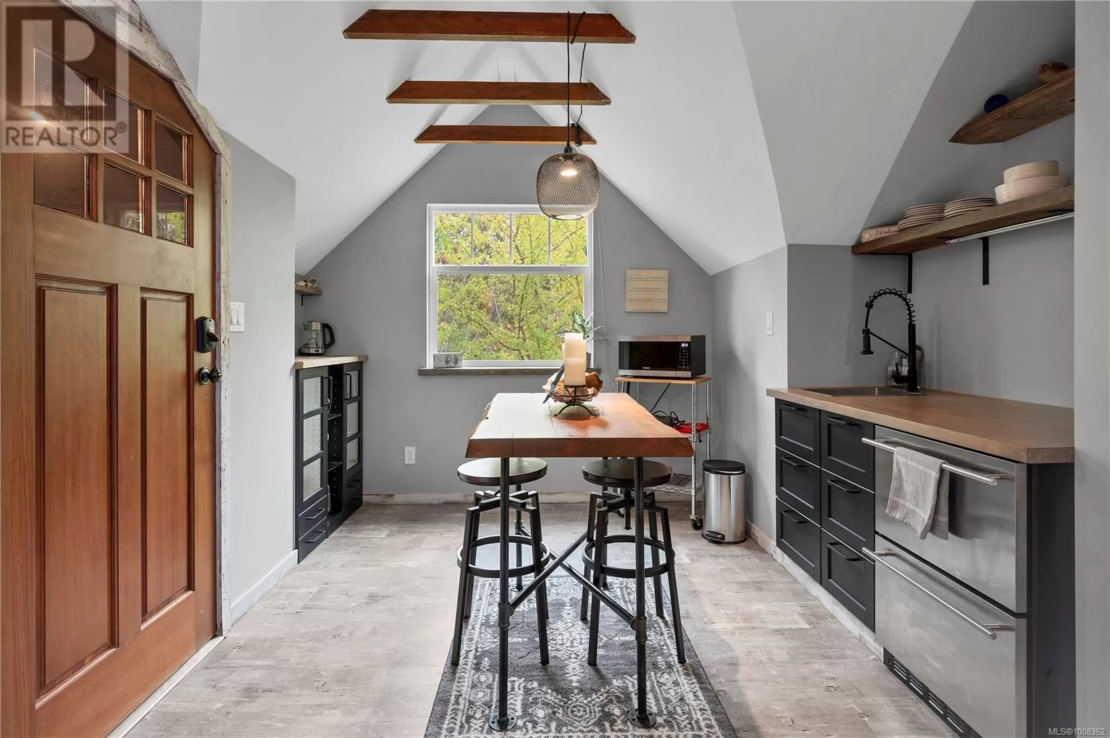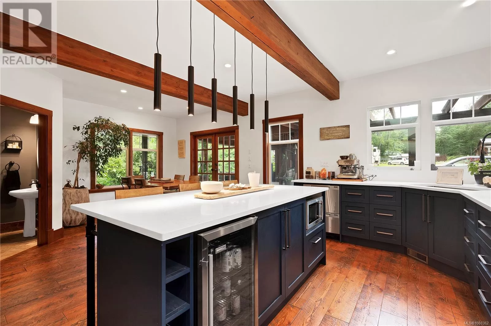 Beautifully renovated character home on acreage with seasonal creek in City of Courtenay. The home and grounds have been meticulously and lovingly restored and renovated to today's standards while maintaining the farmhouse character. Gourmet kitchen is a Chef's dream with attached dining room and access to covered patio area through beautiful French glass doors. River rock fireplace in living room with stone hearth is a stunning feature that will create a cozy atmosphere on cool evenings. Sunroom off the living room is flooded with light and gives access to back deck. Attached heated garage with suite above has been functioning as a very successful vacation rental. Detached workshop/garage has commercial/summer kitchen, 2pc bathroom & single heated garage for convenience and flexibility for this multi use space. The large barn has a 30' heated bay for RV/boat storage, animal side with stalls, workshop with welder & planer plugs. Electrical (2x 200 amp services into property) and plumbing upgraded with renovations. Versatile property currently operating successful home business onsite and has agricultural/development potential. Please read feature sheet for full list of updates and renovations. (id:27476)