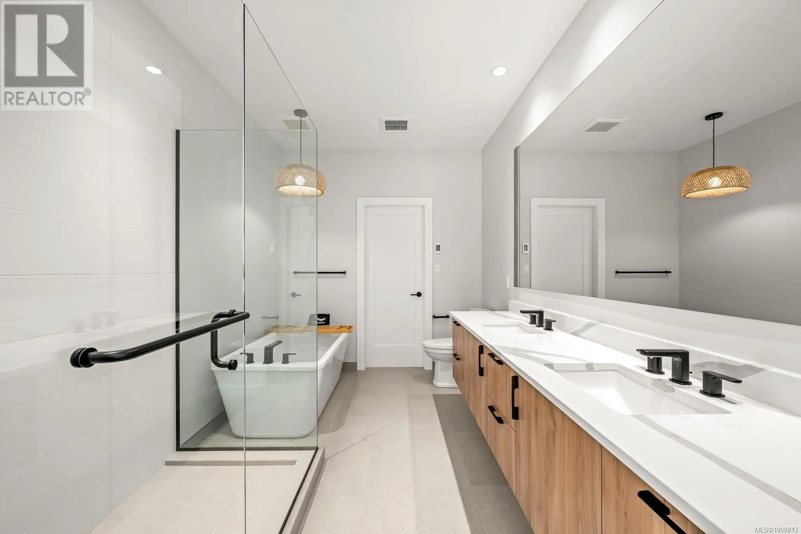 Do not pay the property transfer tax! Priced under the current provincial threshold, making it exempt from the property transfer tax and saving you thousands at closing. This best priced new rancher is located a desired area of The Ridge, one of the Comox Valleyâs most sought-after communities, this 1,720 sq ft single-level rancher offers a rare blend of style, comfort, and exceptional value.Thoughtfully designed with open-concept living in mind, this home features a spacious and functional layout ideal for entertaining or everyday living. The kitchen is a true centerpiece, complete with a large island and custom cabinetry. A striking concrete fireplace adds warmth and architectural interest to the main living area, while heated tile floors and an energy-efficient heating and cooling system ensure year-round comfort.Step outside to a beautifully landscaped, sunny, and private backyardâperfect for enjoying your morning coffee, hosting weekend barbecues, or simply relaxing. The quiet cul-de-sac setting, surrounded by other quality homes, offers a peaceful atmosphere and a strong sense of community. A large driveway provides ample parking, which is a rare and welcome bonus. Built by Benco Ventures, a trusted local builder with over 25 years of experience and a reputation for quality craftsmanship, this property is an outstanding opportunity in a prime location. There is a high end appliance and blind package available , inquire for more info. (id:27476)
