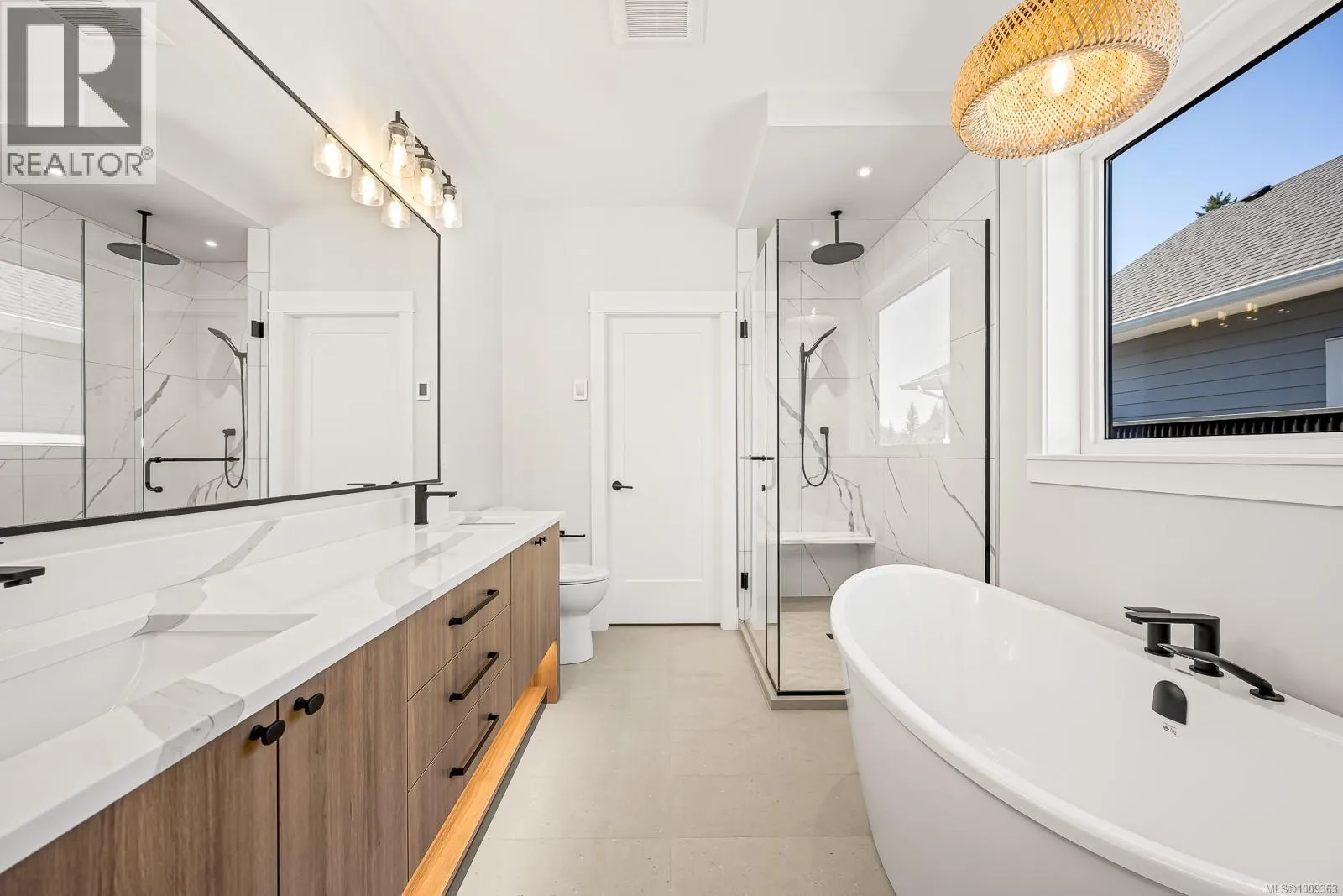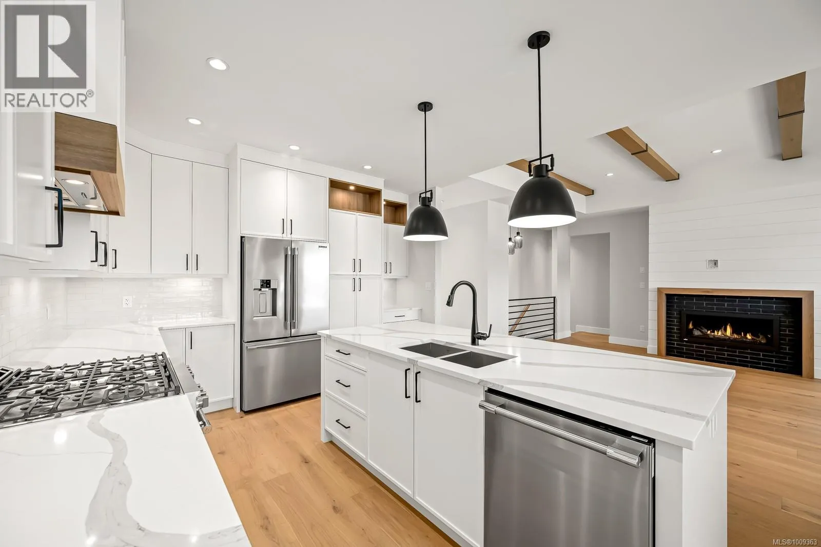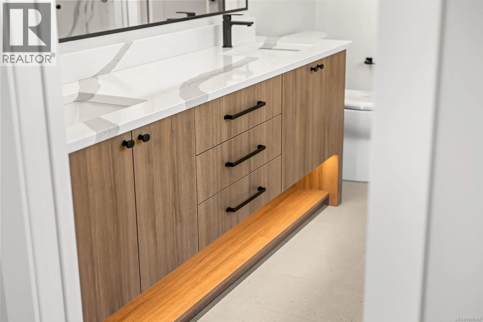 This 2,600 sqft home showcases quality Benco-built craftsmanship and is located in the sought-after community of The Ridge, offering exceptional space, flexibility, and lifestyle.Upstairs features 2 bedrooms and 2 bathrooms, a bright kitchen with quartz countertops and a pantry, an open-concept living area, and the convenience of upstairs laundry â ideal for everyday family living.The lower level offers 2 additional bedrooms and 2 bathrooms, along with bonus space that can be used as a media room, home office, gym, or playroom. Itâs also pre-designed to accommodate a 1-bedroom suite with a private entrance, making it perfect for extended family, guests, or rental income.Additional highlights include a large garage, a high-efficiency heat pump, and heated tile floors in the bathrooms, offering year-round comfort and efficiency.Located near parks, trails, and all the amenities the Comox Valley has to offer, this home is ideal for families, multigenerational living, or anyone looking for a well-crafted, adaptable space.Donât miss the opportunity to own a beautifully finished home with room to grow and the flexibility to suit your changing lifestyle. (id:27476)