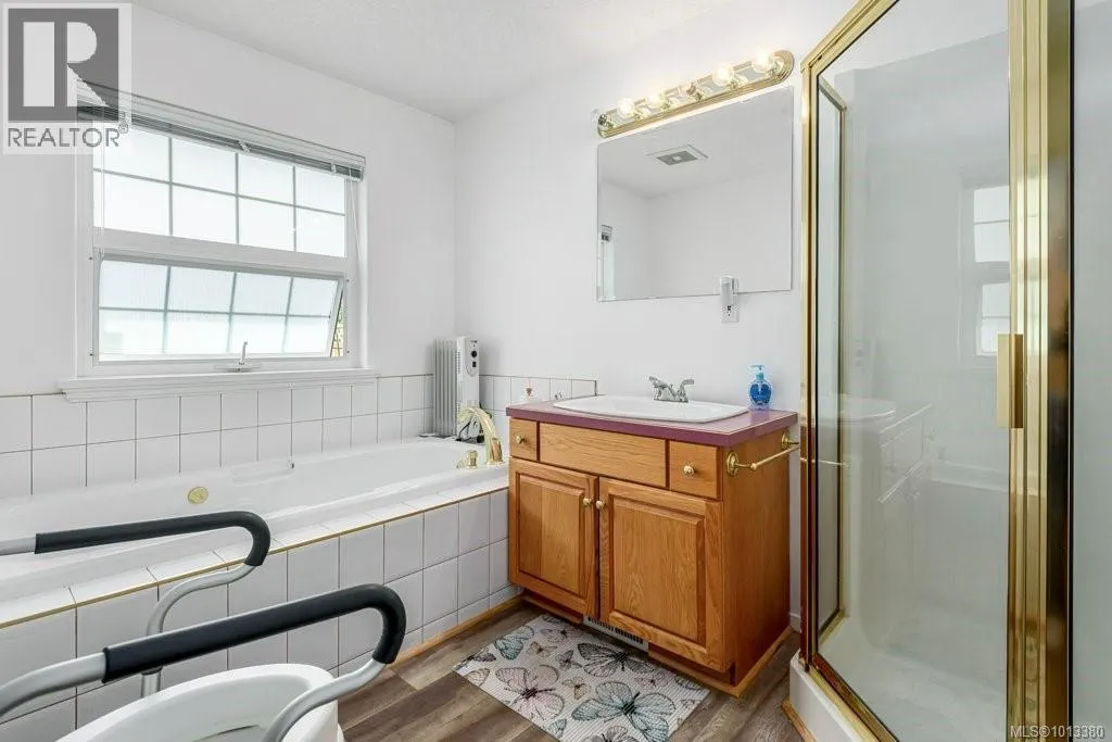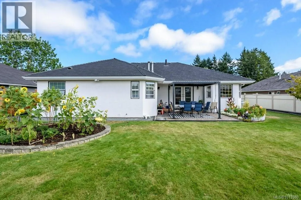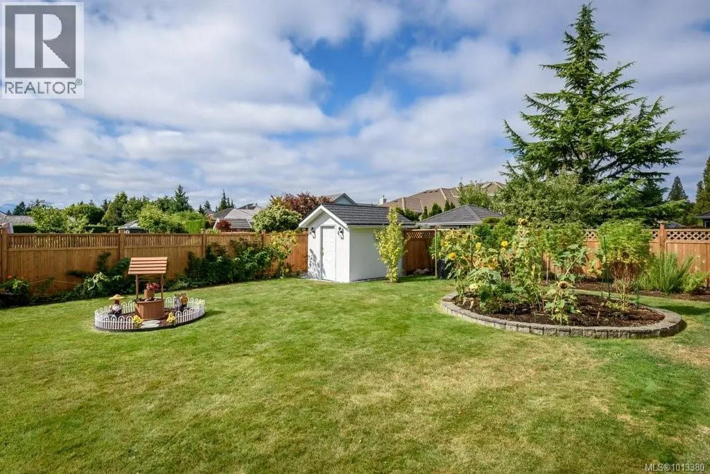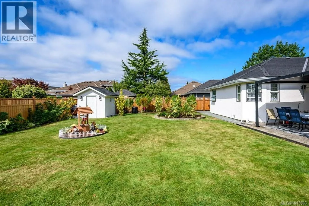 This is an immaculately maintained 3 bedroom, 2 bathroom rancher situated in the heart of Crown Isle. This fabulous rancher has a two car garage and a decent crawl space for storage. The tiled entrance way and vaulted ceiling with plenty of natural light welcome you into this spacious 1700 sq ft rancher designed for comfort and serenity. Relax in the ensuite jetted soaker tub and enjoy the natural gas fireplace. The large kitchen offers a great layout, an eating nook, and a natural gas range. A fabulous family room opens off the kitchen allowing for easy interaction and inclusion. The patio has a Pergola with a roof that opens up and a hookup for a natural gas BBQ for those cozy evenings with family and friends. The property is .21 acres and is landscaped beautifully and fully fenced and includes underground irrigation. The backyard boast a neat little garden shed covered in the same style of stucco as the house. What a great opportunity to own an affordable Crown Isle Gem (id:27476)