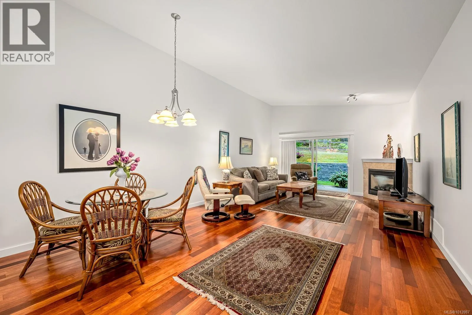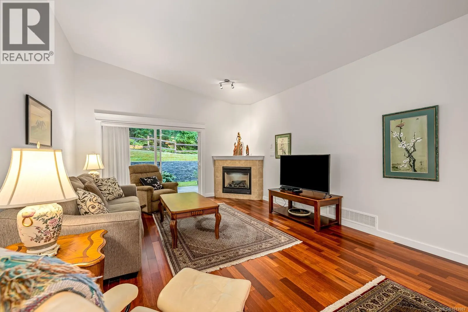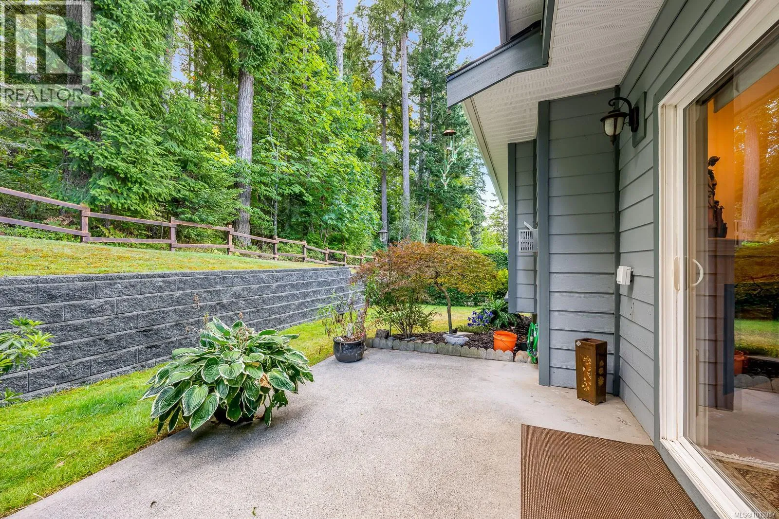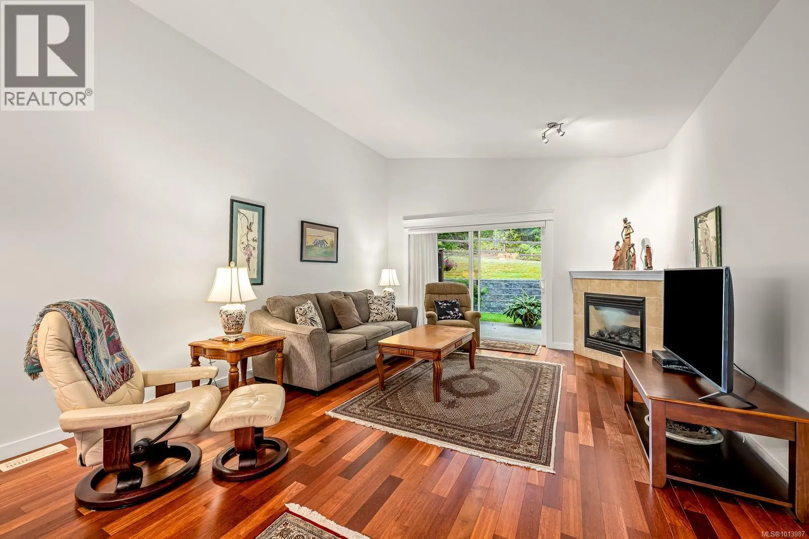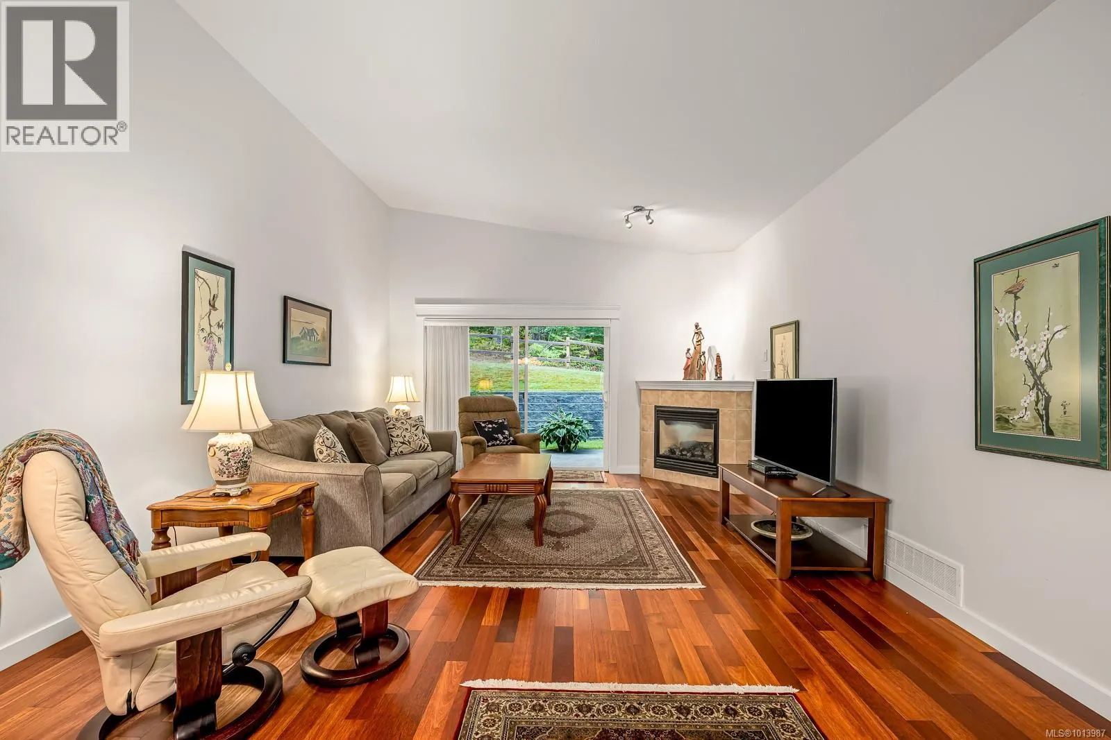Welcome to Woodlands, a sought-after patio home community offering peace, privacy, and effortless living. This spacious 3-bedroom, 2-bathroom home backs directly onto Lerwick Park, with wooded trails just steps from your patio .Inside, youâll find 9-foot ceilings, engineered hardwood floors, and a bright open layout anchored by a cozy gas fireplace. The kitchen and living areas flow seamlessly for everyday comfort and entertaining. The primary suite is a true retreat, featuring a 5-piece ensuite with dual vanity, soaker tub, and walk-in shower. Enjoy year-round comfort with a heat pump and air conditioning. Outside, the Hardie Plank exterior, single garage, and two additional driveway parking spots add convenience with no exterior maintenance to worry about.This pet-friendly community is ideally located on the Comox border, close to shopping, services, and all amenitiesâyet tucked away in a quiet, park-like setting. A perfect blend of nature, comfort, and convenience. (id:27476)