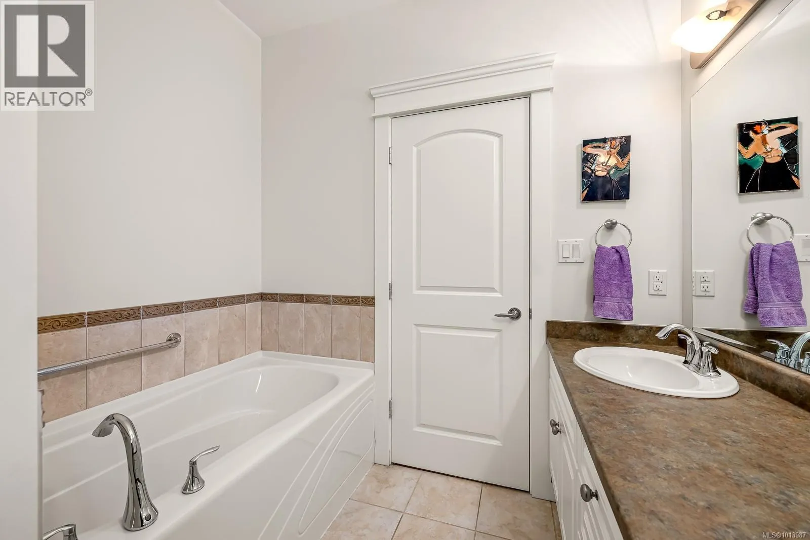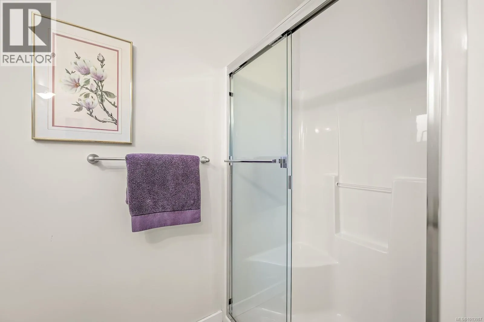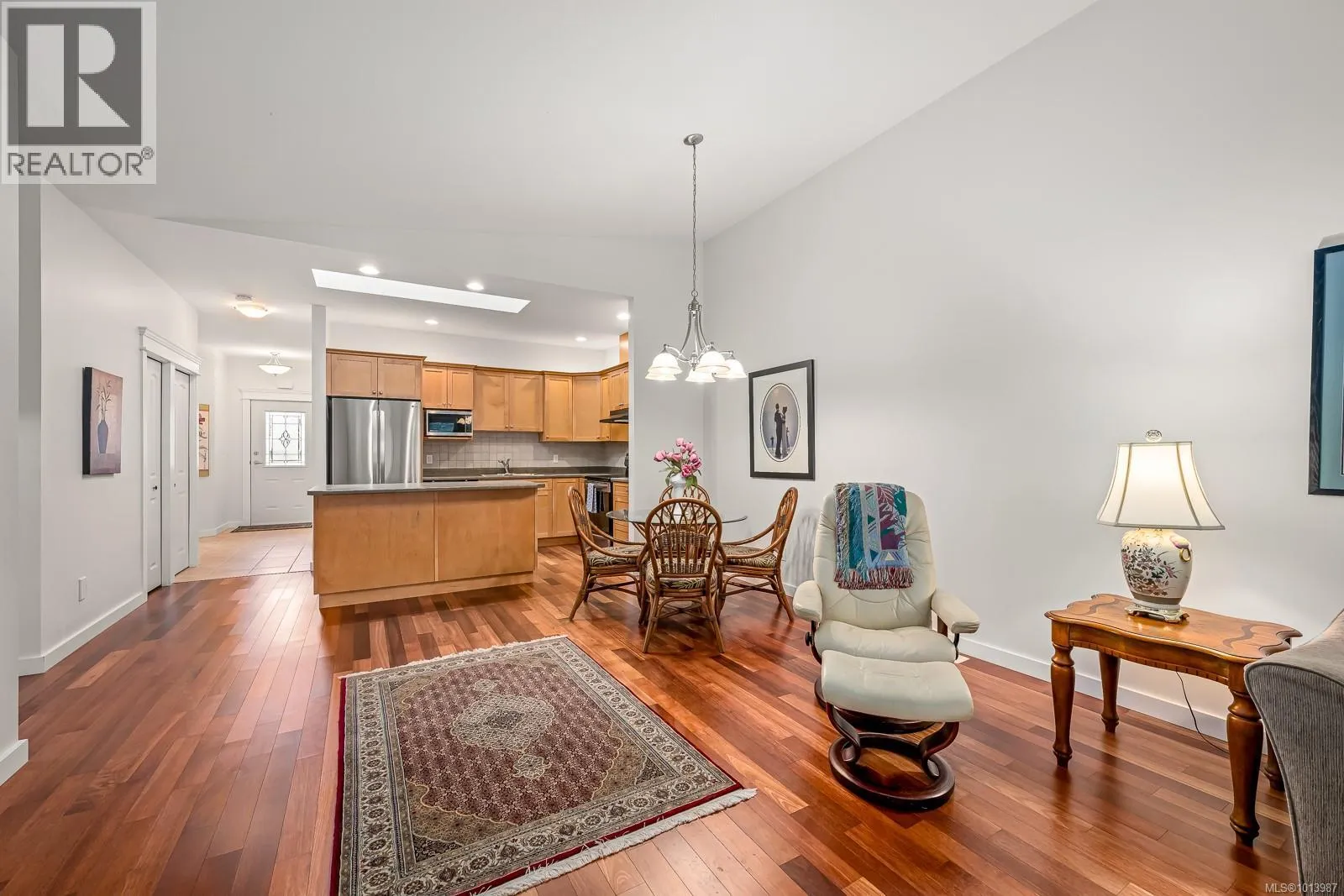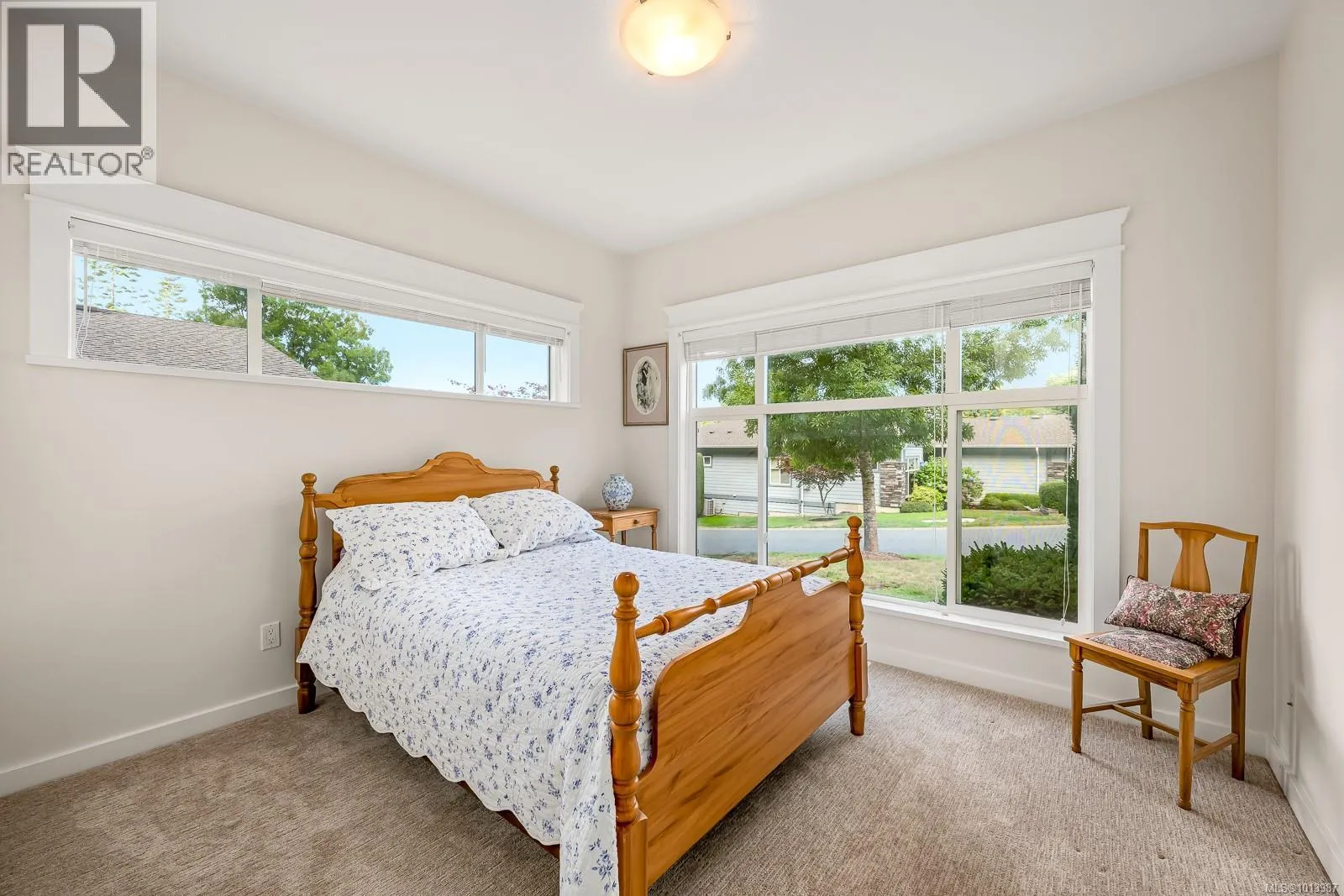 Welcome to Woodlands, a sought-after patio home community offering peace, privacy, and effortless living. This spacious 3-bedroom, 2-bathroom home backs directly onto Lerwick Park, with wooded trails just steps from your patio .Inside, youâll find 9-foot ceilings, engineered hardwood floors, and a bright open layout anchored by a cozy gas fireplace. The kitchen and living areas flow seamlessly for everyday comfort and entertaining. The primary suite is a true retreat, featuring a 5-piece ensuite with dual vanity, soaker tub, and walk-in shower. Enjoy year-round comfort with a heat pump and air conditioning. Outside, the Hardie Plank exterior, single garage, and two additional driveway parking spots add convenience with no exterior maintenance to worry about.This pet-friendly community is ideally located on the Comox border, close to shopping, services, and all amenitiesâyet tucked away in a quiet, park-like setting. A perfect blend of nature, comfort, and convenience. (id:27476)