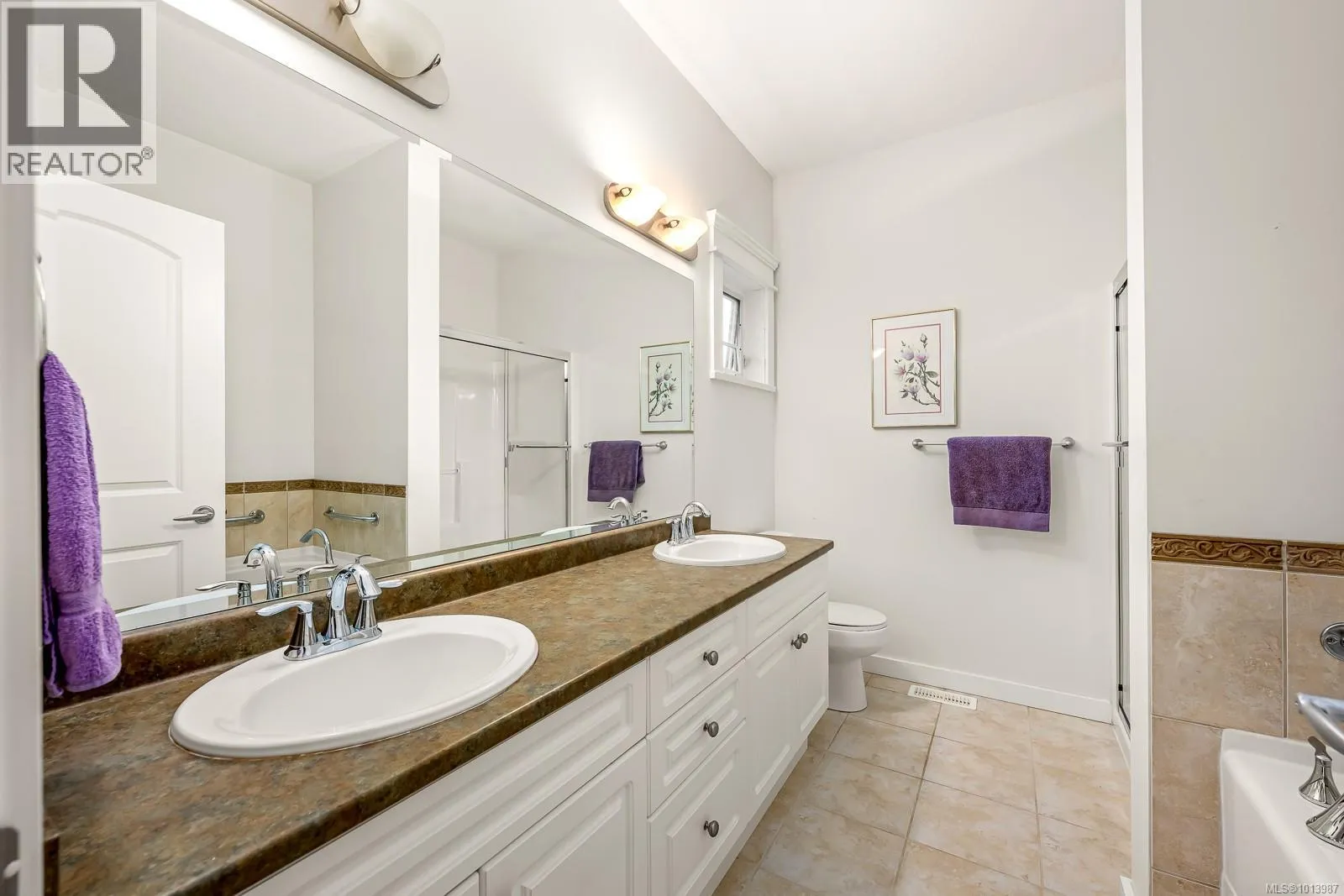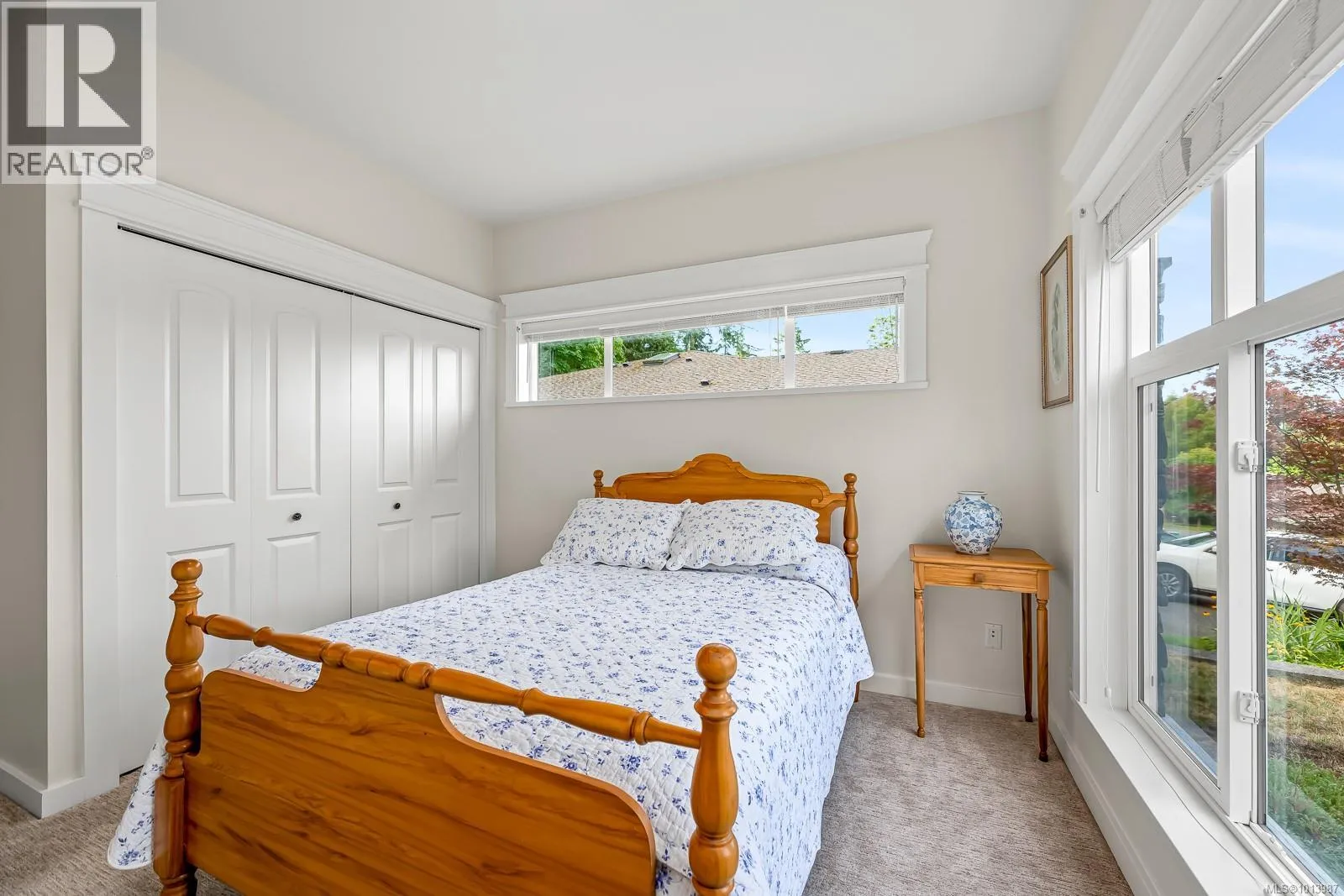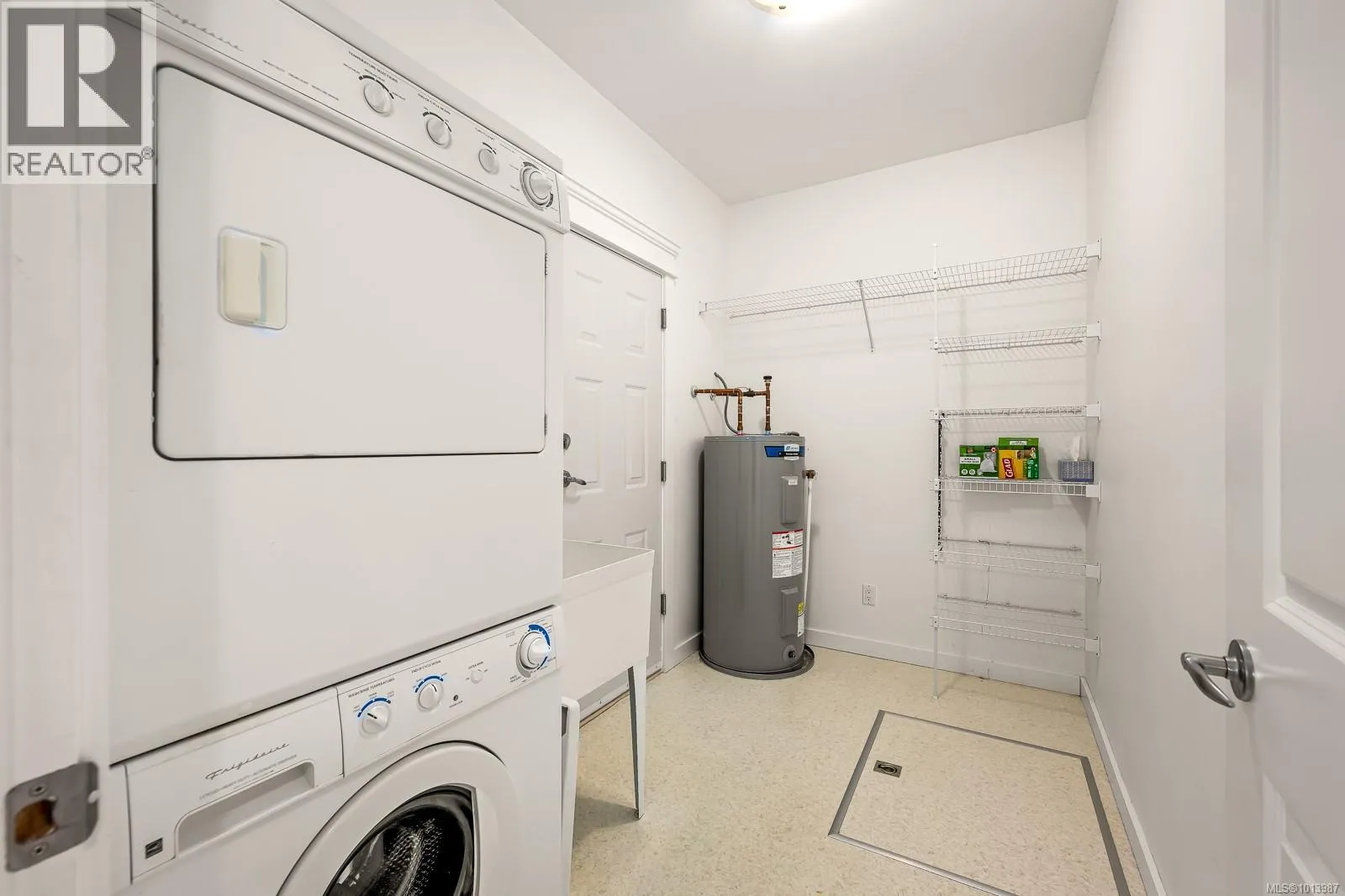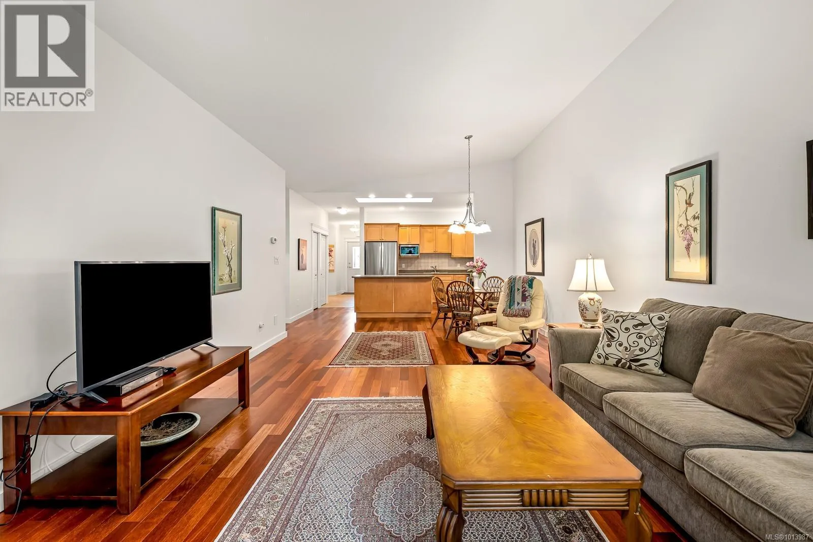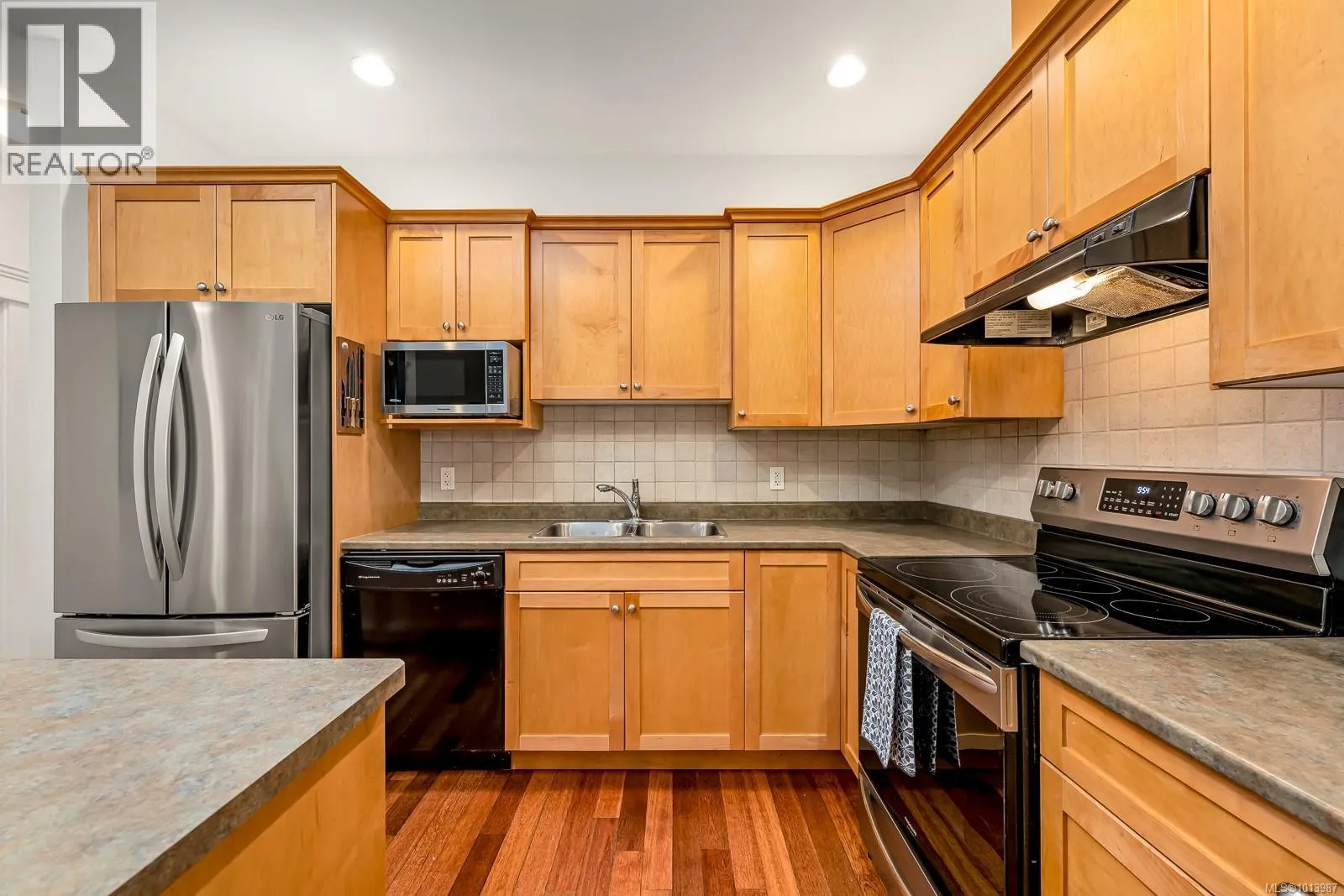 Welcome to Woodlands, a sought-after patio home community offering peace, privacy, and effortless living. This spacious 3-bedroom, 2-bathroom home backs directly onto Lerwick Park, with wooded trails just steps from your patio .Inside, youâll find 9-foot ceilings, engineered hardwood floors, and a bright open layout anchored by a cozy gas fireplace. The kitchen and living areas flow seamlessly for everyday comfort and entertaining. The primary suite is a true retreat, featuring a 5-piece ensuite with dual vanity, soaker tub, and walk-in shower. Enjoy year-round comfort with a heat pump and air conditioning. Outside, the Hardie Plank exterior, single garage, and two additional driveway parking spots add convenience with no exterior maintenance to worry about.This pet-friendly community is ideally located on the Comox border, close to shopping, services, and all amenitiesâyet tucked away in a quiet, park-like setting. A perfect blend of nature, comfort, and convenience. (id:27476)