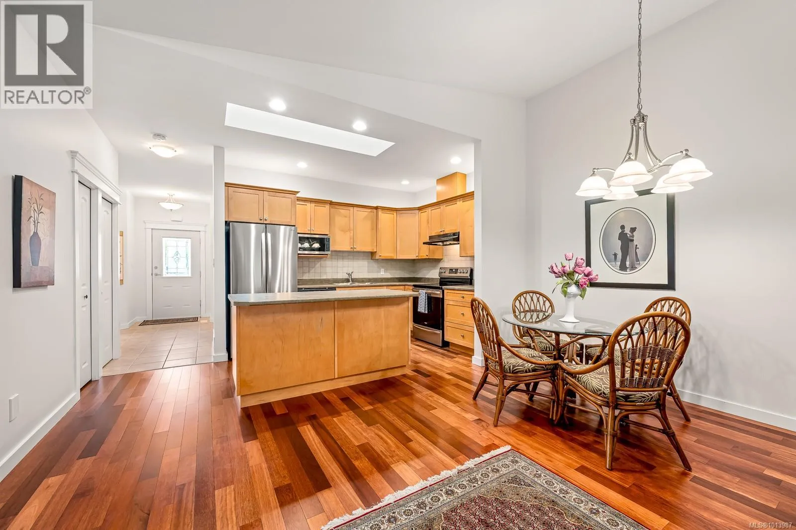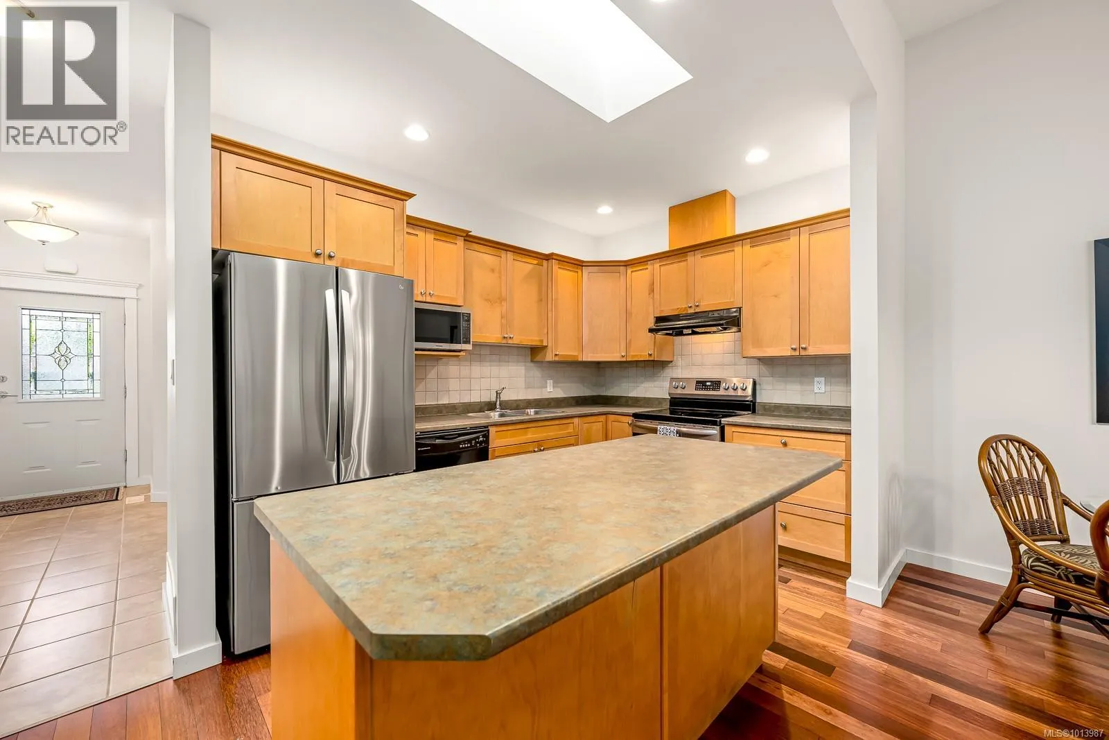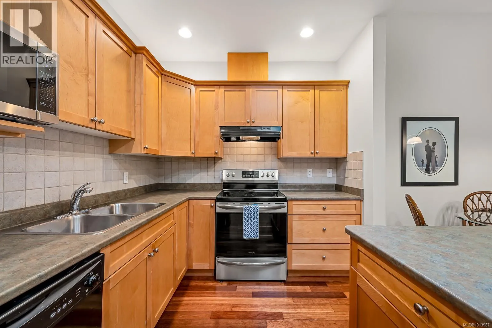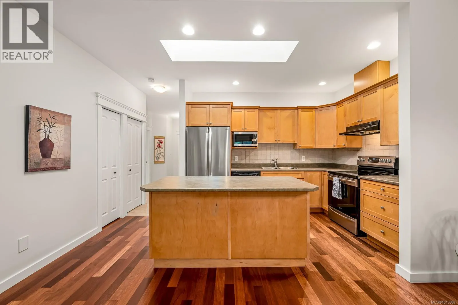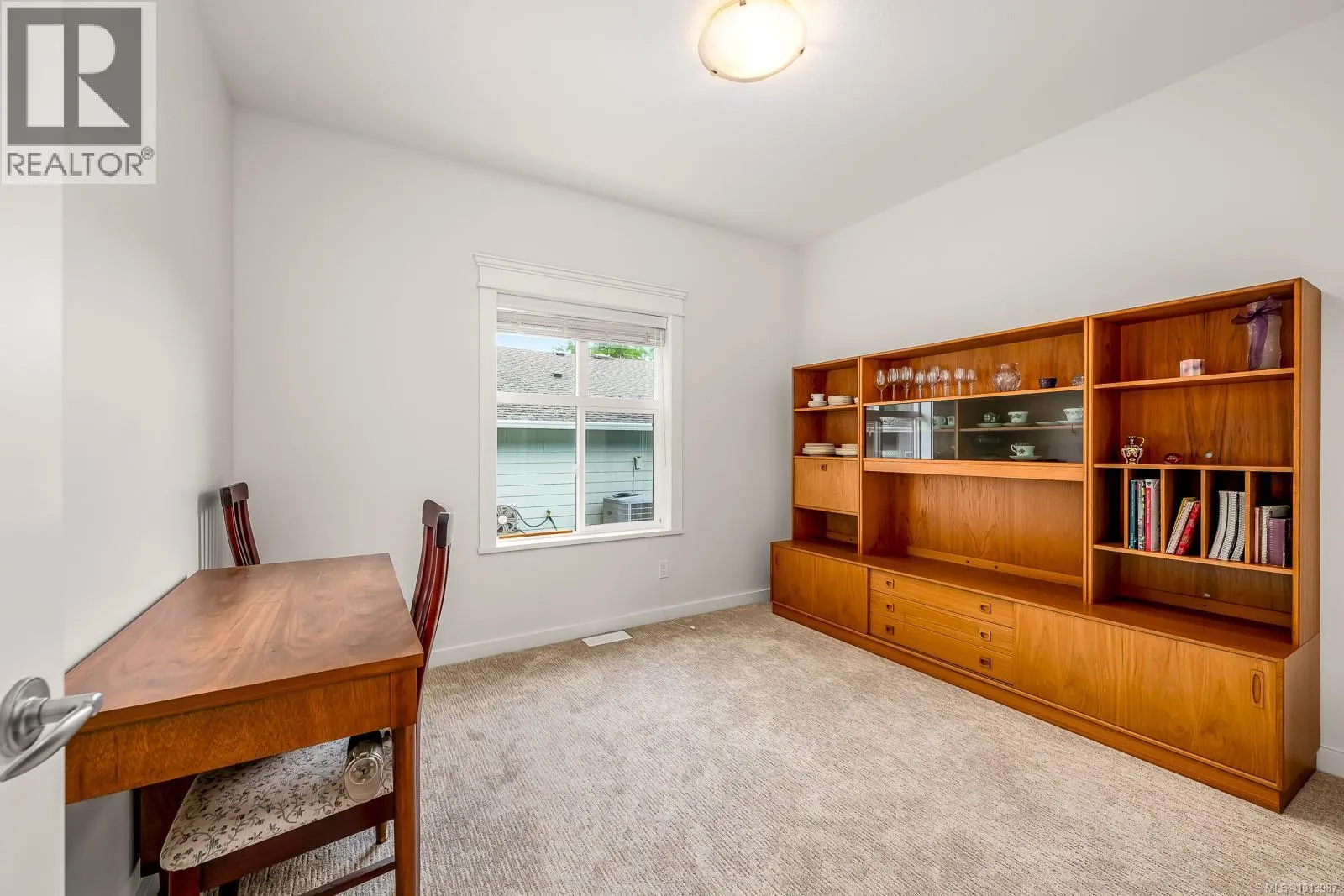 Welcome to Woodlands, a sought-after patio home community offering peace, privacy, and effortless living. This spacious 3-bedroom, 2-bathroom home backs directly onto Lerwick Park, with wooded trails just steps from your patio .Inside, youâll find 9-foot ceilings, engineered hardwood floors, and a bright open layout anchored by a cozy gas fireplace. The kitchen and living areas flow seamlessly for everyday comfort and entertaining. The primary suite is a true retreat, featuring a 5-piece ensuite with dual vanity, soaker tub, and walk-in shower. Enjoy year-round comfort with a heat pump and air conditioning. Outside, the Hardie Plank exterior, single garage, and two additional driveway parking spots add convenience with no exterior maintenance to worry about.This pet-friendly community is ideally located on the Comox border, close to shopping, services, and all amenitiesâyet tucked away in a quiet, park-like setting. A perfect blend of nature, comfort, and convenience. (id:27476)