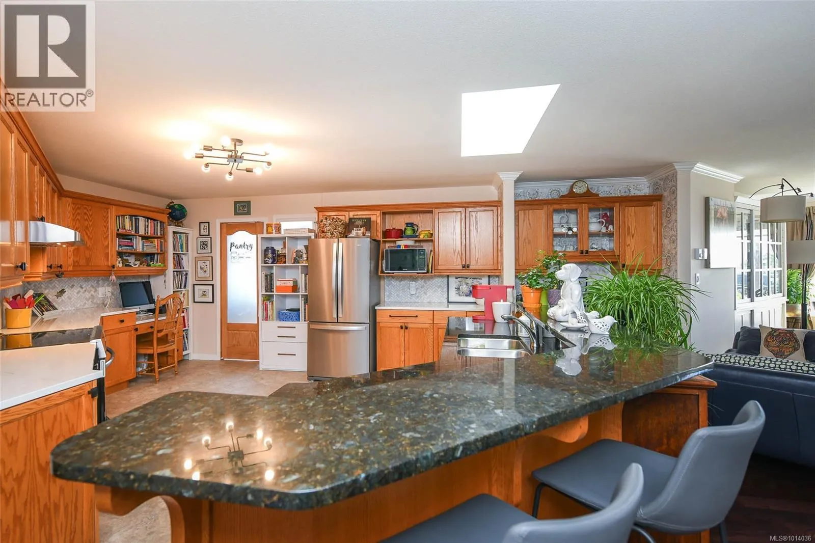Welcome to Orchard Gatel This completely updated executive penthouse offers over 1,800 sq ft of open concept living space, featuring 2 bedrooms plus office/den. The sprawling chef's kitchen boasts quartz and granite countertops, all new appliances, built-In wine cabinet, large pantry, and an eat-up bar, perfect for entertaining. The living and dining areas are spacious enough for family gatherings, centered around a cozy gas fireplace. Enjoy summer with the heat pump A/C and an outdoor deck with an awning. Recent updates include fresh paint, new carpets and baseboards, updated flooring in the kitchen, laundry, and baths, new countertops and backsplash, and new hardware for windows and cabinets, and so much more. Additional features include hardwood flooring, crown molding, newer gas hot water tank, and a separate garage with overhead storage and side door entry. This immaculate 55+ condo is within walking distance to downtown amenities such as theaters, parks, coffee shops, groceries, banks, brew pubs, and bakeries. Some rentals and pets allowed; see strata bylaws (id:27476)