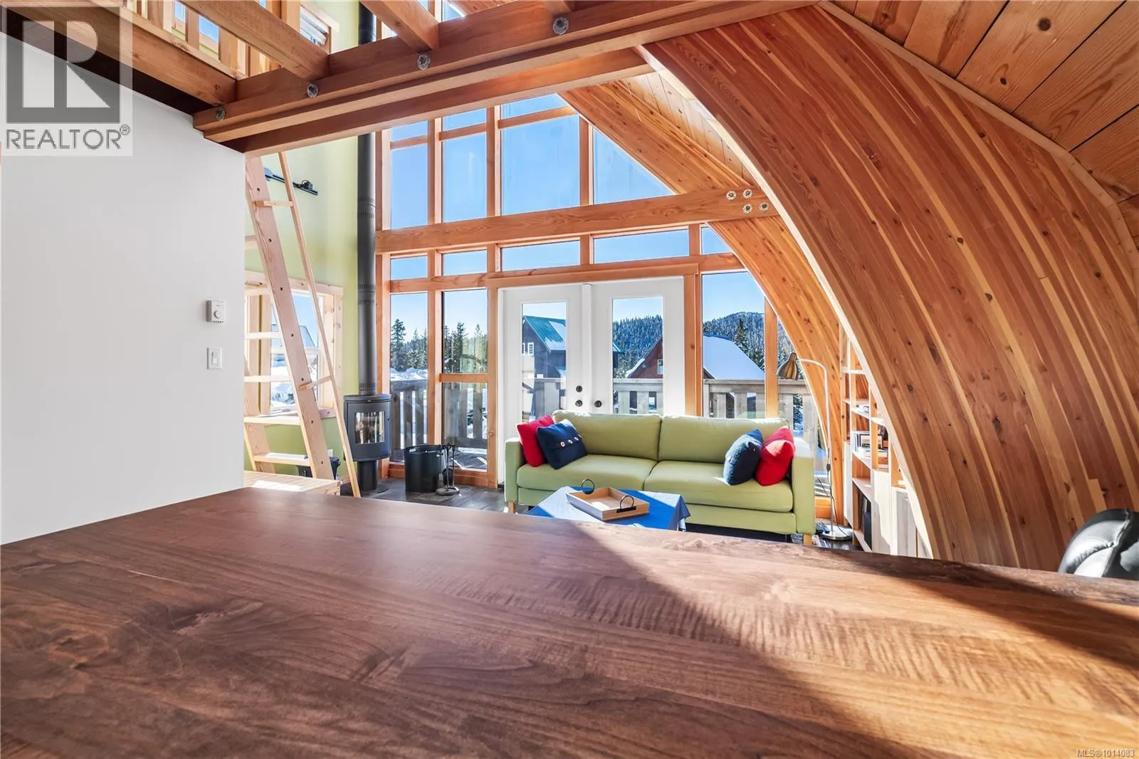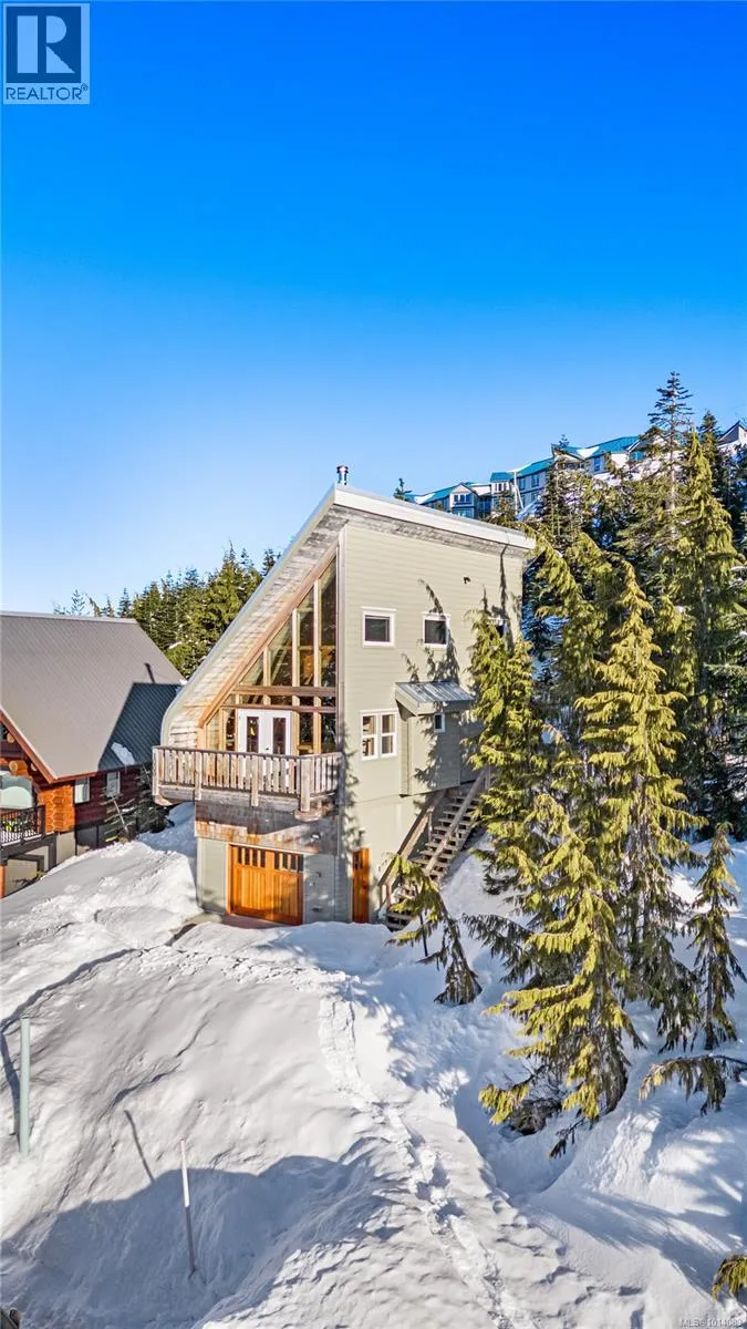 Welcome to 1000 Cruikshank Ridge, Mt. Washington! This brilliantly designed mountainside retreat offers a seamless blend of modern luxury and rustic charm, perfectly positioned to capture breathtaking views of Strathcona Park and mesmerizing sunset panoramas. Thoughtfully updated and fully furnished, this one-of-a-kind chalet is a true gem for those seeking both adventure and relaxation. Step inside and be captivated by the warmth of fir flooring, a cozy wood- burning stove, and floor-to-ceiling windows that invite the stunning mountain scenery indoors. The main level features a well- appointed bedroom and bathroom, updated kitchen boasting sleek stainless steel appliances and elegant maple countertopsâ perfect for crafting gourmet meals after a day of exploration. Ascend to the loft, where you'll find an additional bedroom, a versatile flex space, ideal for a home office, reading nook, or extra sleeping area. The lower level w/ private entry, presents a world of possibilitiesâ complete with a wet bar and three-piece bathroom, could be used as a rec space and/or additional guest accommodations. Open the solid wood garage-style door and soak in pure tranquility as you take in the awe-inspiring mountain vistas from the brand new soft tub. Winter enthusiasts will love the easy access to skiing, while summer invites endless hiking, biking and outdoor adventures right at your doorstep. Underneath the snow, an impressive amount of concrete work ensures convenient drive-up access to the main level and ample parking for multiple vehicles, as well as EV charging. With a 2 year old roof, this exceptional mountainside haven is ready to be enjoyedâdonât miss the opportunity to make it yours! (id:27476)