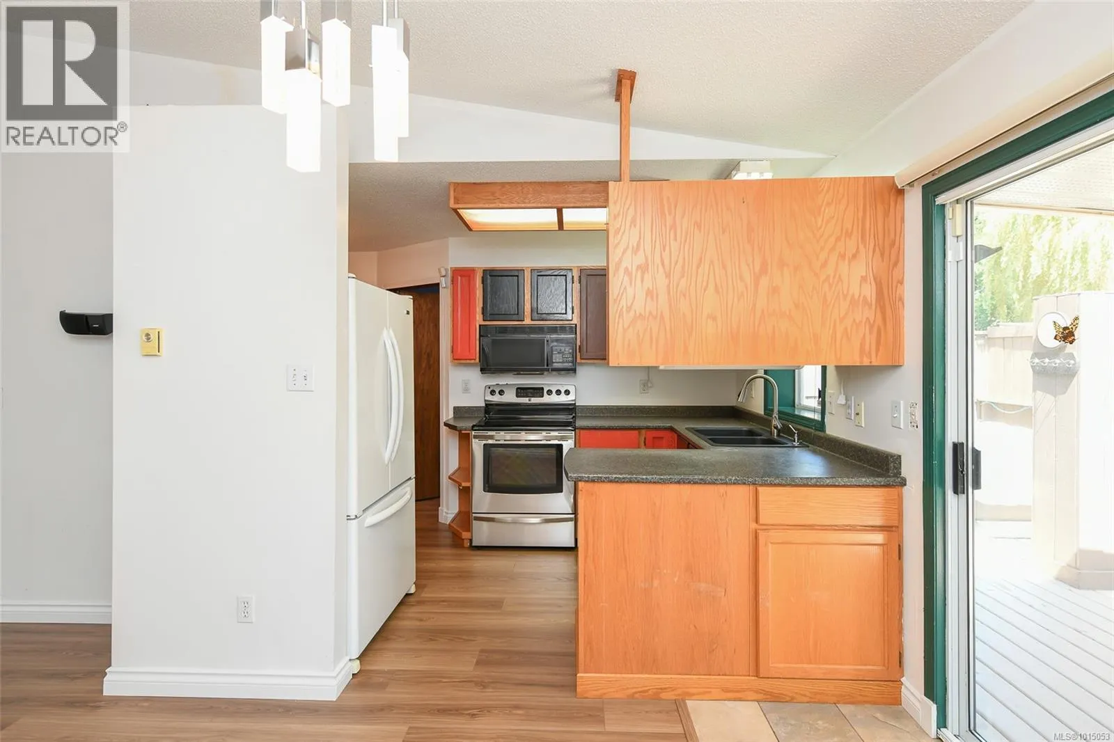 Courtenay City, Strata Duplex, 2 bedroom, 1 & 1/2 bathrooms has had some updates. Vaulted ceiling in Living & Dining areas. All the ceilings have been painted. But the walls are waiting for you to pick your own colour. In the rear yard out the dining room door there is a partially covered deck and next to that deck surrounds a hot tub. There is also a storage shed and extra parking. Have your realtor ask for more information and make an appointment for you. Side A is also for sale - MLS®#1008660 (id:27476)