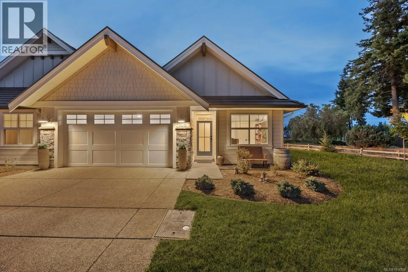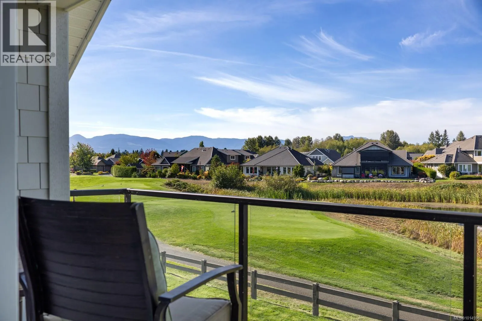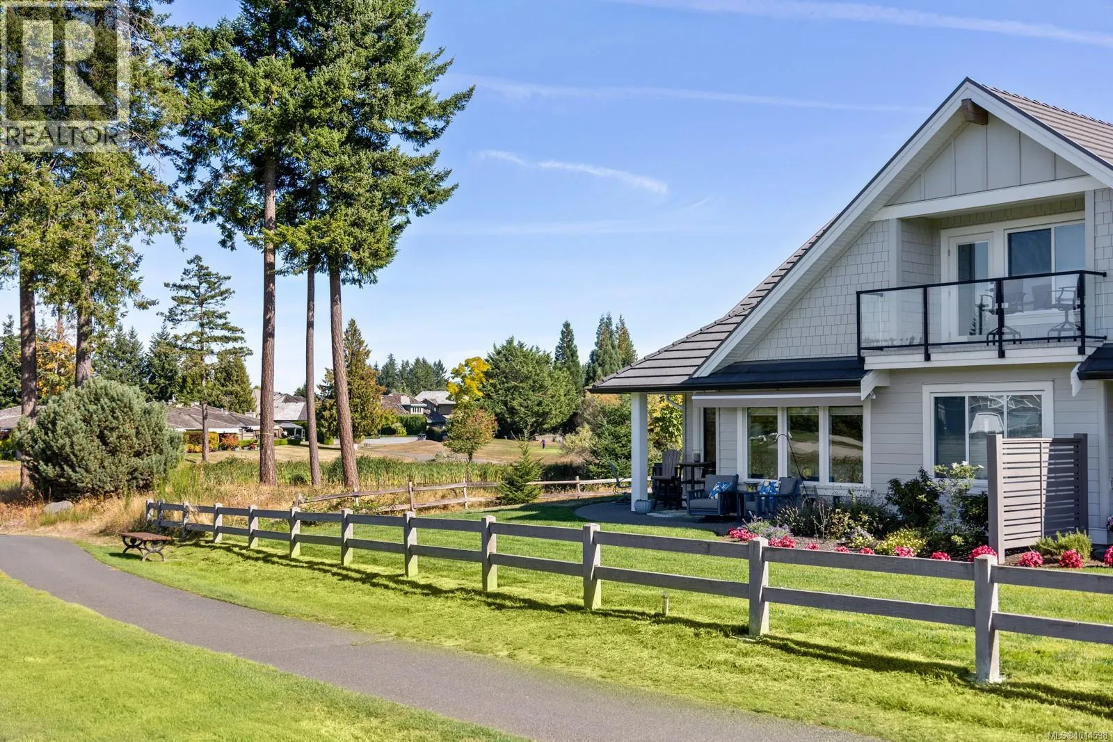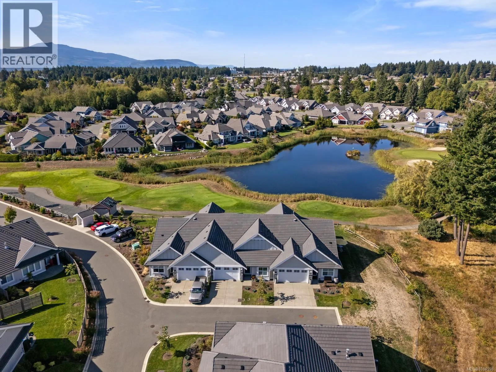 Welcome to Unit #106 in the prestigious Silverstone Estates. This beautifully crafted 1,993 sq ft patio home by Integra Homes offers the perfect blend of privacy, luxury, & breathtaking views. Set in one of the most serene locations, this end unit backs onto peaceful ponds & lush fairways of Crown Isle's Platinum rated Golf Course. Designed in a timeless Craftsman/Farmhouse architectural style, this 4 bed, 2.5 bath home features an open-concept layout that flows seamlessly to an oversized covered outdoor patio, ideal for entertaining & relaxing. Interior highlights inc. engineered hardwood, quartz counters, custom soft-close cabinetry, wood accents, walk-in pantry, epoxied garage floor & designer lighting throughout. The chefâs kitchen is a true standout, equipped with premium Fisher & Paykel appliances. This setting offers the rare combination of quiet retreat and world-class lifestyle. Enjoy panoramic views of the golf course & surrounding mountains from this one-of-a-kind location. (id:27476)