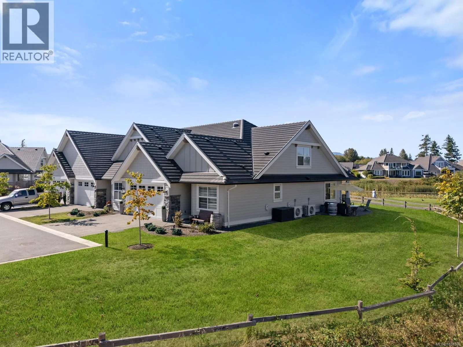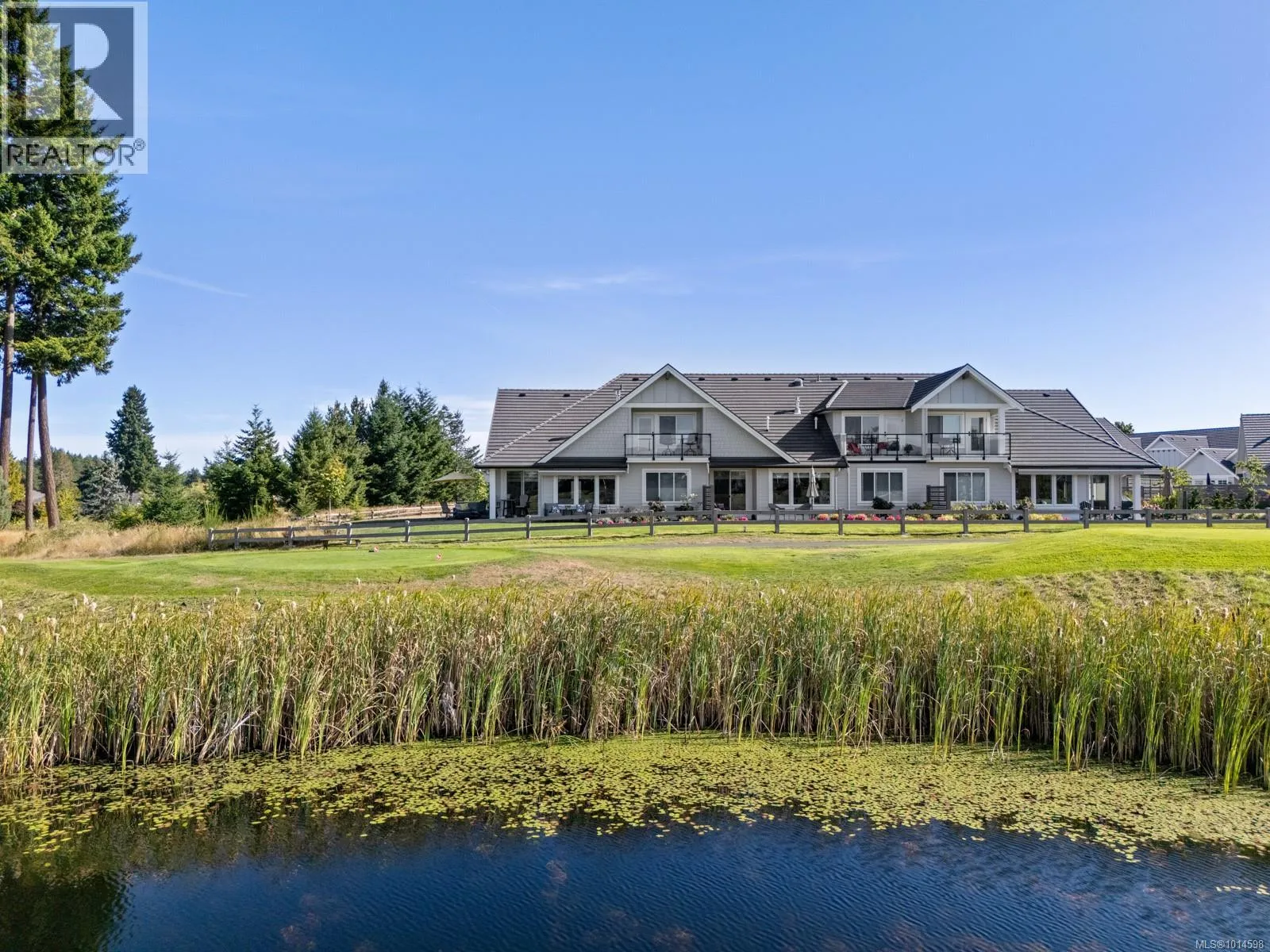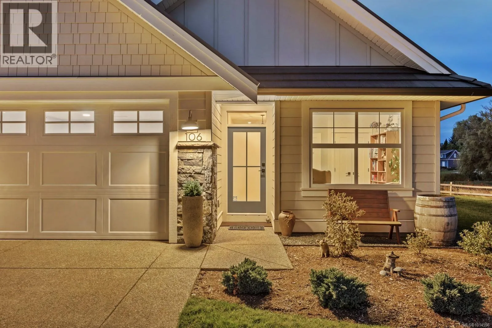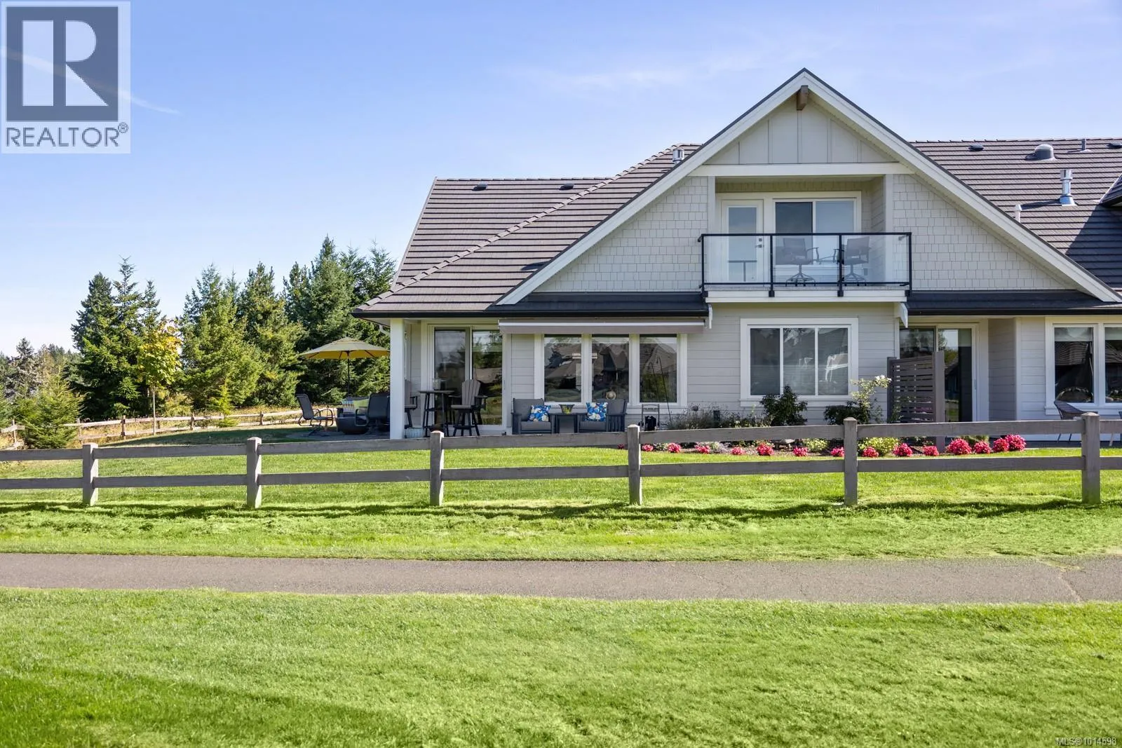 Welcome to Unit #106 in the prestigious Silverstone Estates. This beautifully crafted 1,993 sq ft patio home by Integra Homes offers the perfect blend of privacy, luxury, & breathtaking views. Set in one of the most serene locations, this end unit backs onto peaceful ponds & lush fairways of Crown Isle's Platinum rated Golf Course. Designed in a timeless Craftsman/Farmhouse architectural style, this 4 bed, 2.5 bath home features an open-concept layout that flows seamlessly to an oversized covered outdoor patio, ideal for entertaining & relaxing. Interior highlights inc. engineered hardwood, quartz counters, custom soft-close cabinetry, wood accents, walk-in pantry, epoxied garage floor & designer lighting throughout. The chefâs kitchen is a true standout, equipped with premium Fisher & Paykel appliances. This setting offers the rare combination of quiet retreat and world-class lifestyle. Enjoy panoramic views of the golf course & surrounding mountains from this one-of-a-kind location. (id:27476)