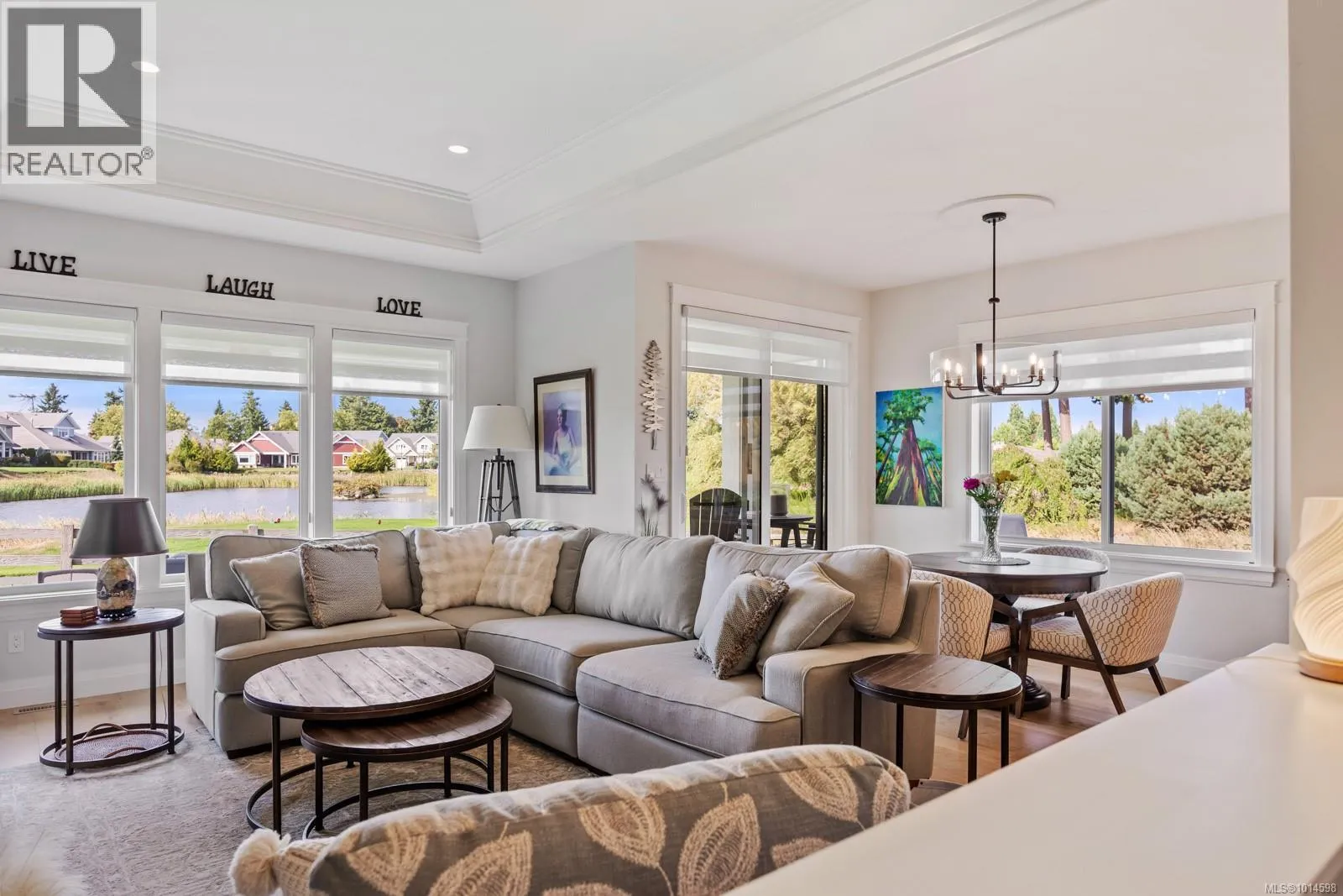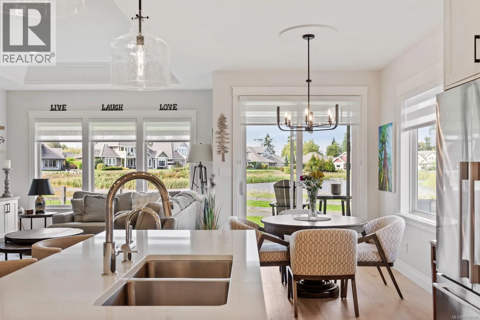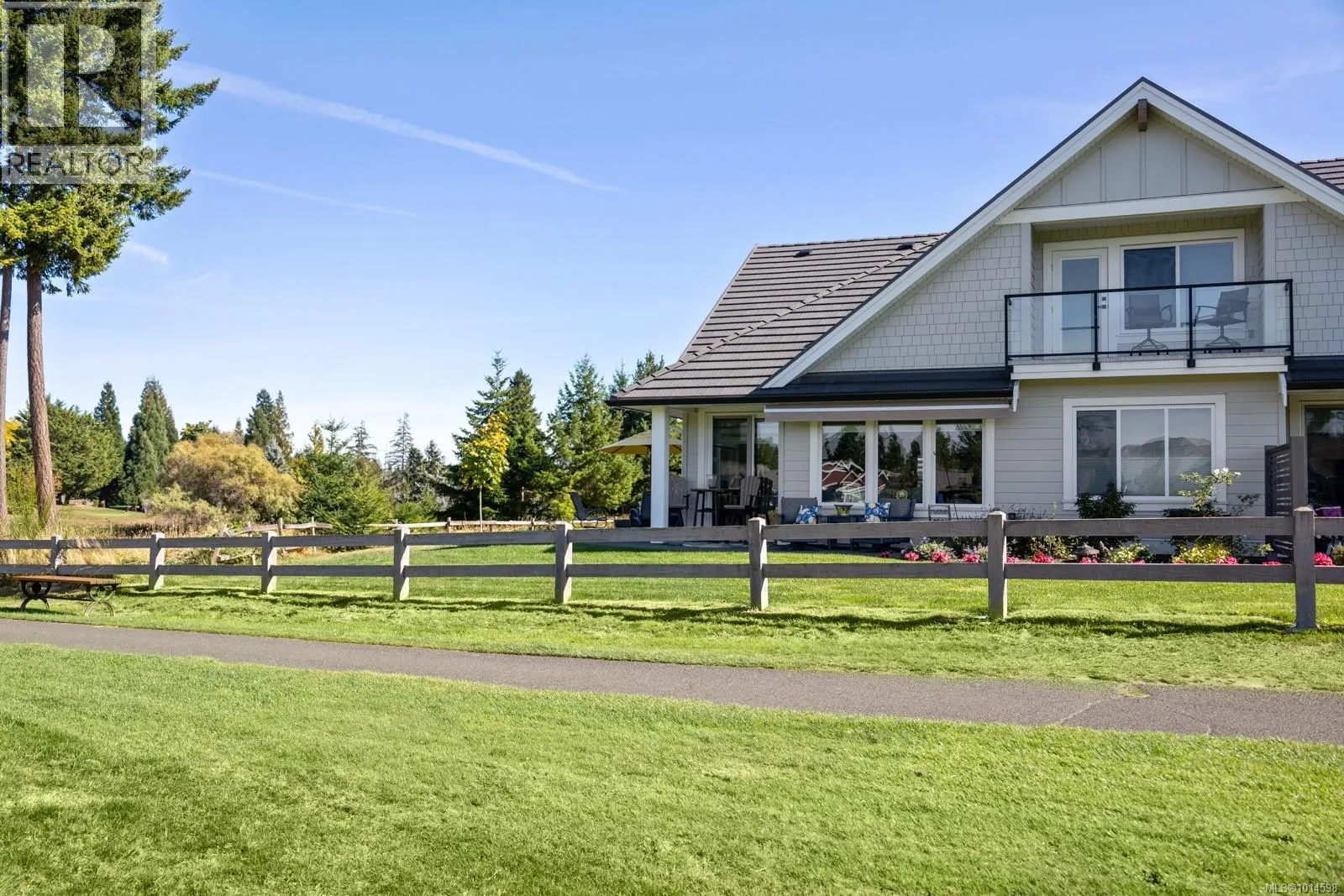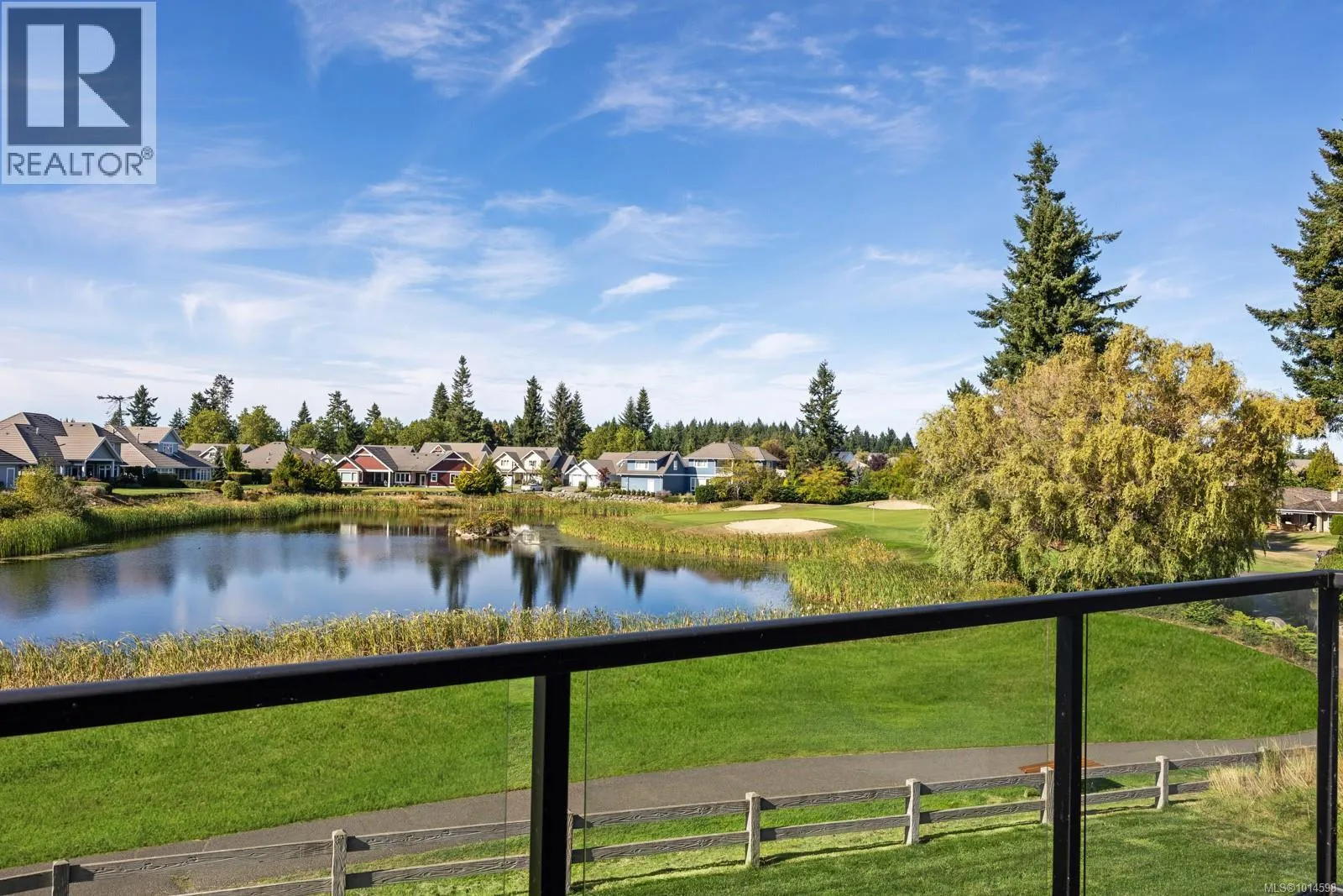 Welcome to Unit #106 in the prestigious Silverstone Estates. This beautifully crafted 1,993 sq ft patio home by Integra Homes offers the perfect blend of privacy, luxury, & breathtaking views. Set in one of the most serene locations, this end unit backs onto peaceful ponds & lush fairways of Crown Isle's Platinum rated Golf Course. Designed in a timeless Craftsman/Farmhouse architectural style, this 4 bed, 2.5 bath home features an open-concept layout that flows seamlessly to an oversized covered outdoor patio, ideal for entertaining & relaxing. Interior highlights inc. engineered hardwood, quartz counters, custom soft-close cabinetry, wood accents, walk-in pantry, epoxied garage floor & designer lighting throughout. The chefâs kitchen is a true standout, equipped with premium Fisher & Paykel appliances. This setting offers the rare combination of quiet retreat and world-class lifestyle. Enjoy panoramic views of the golf course & surrounding mountains from this one-of-a-kind location. (id:27476)