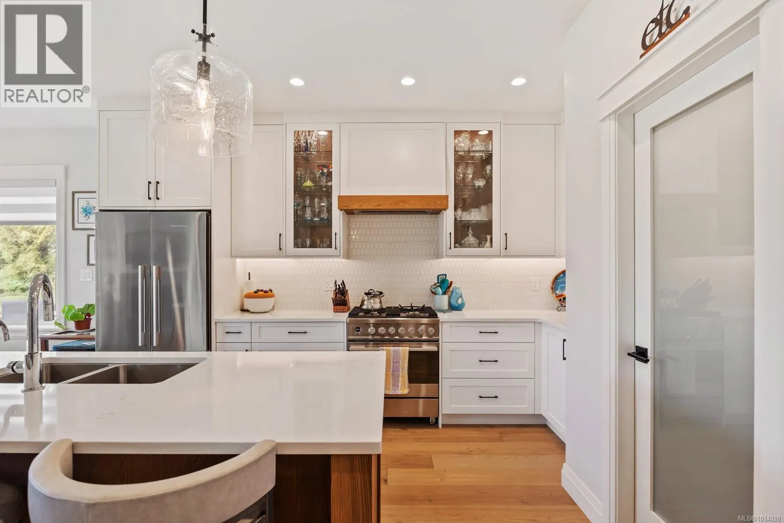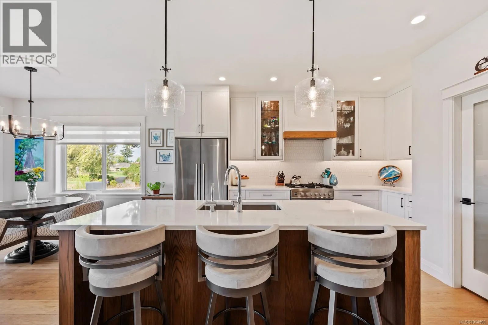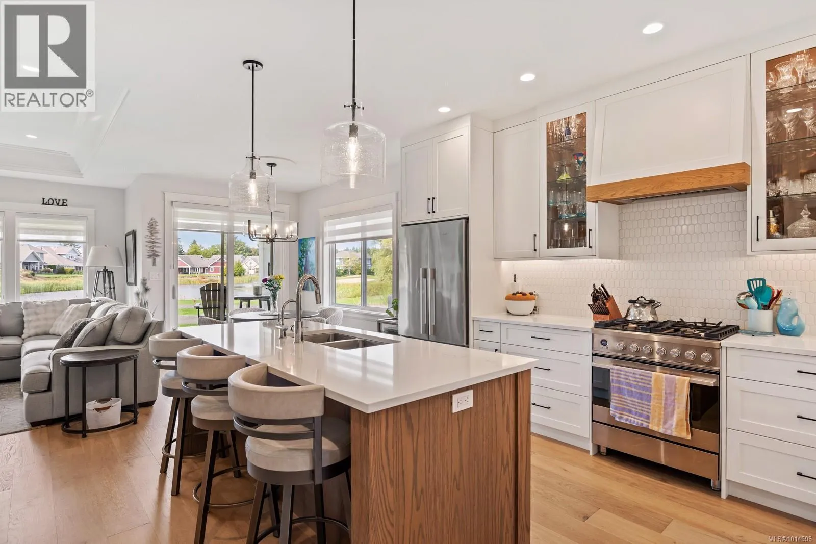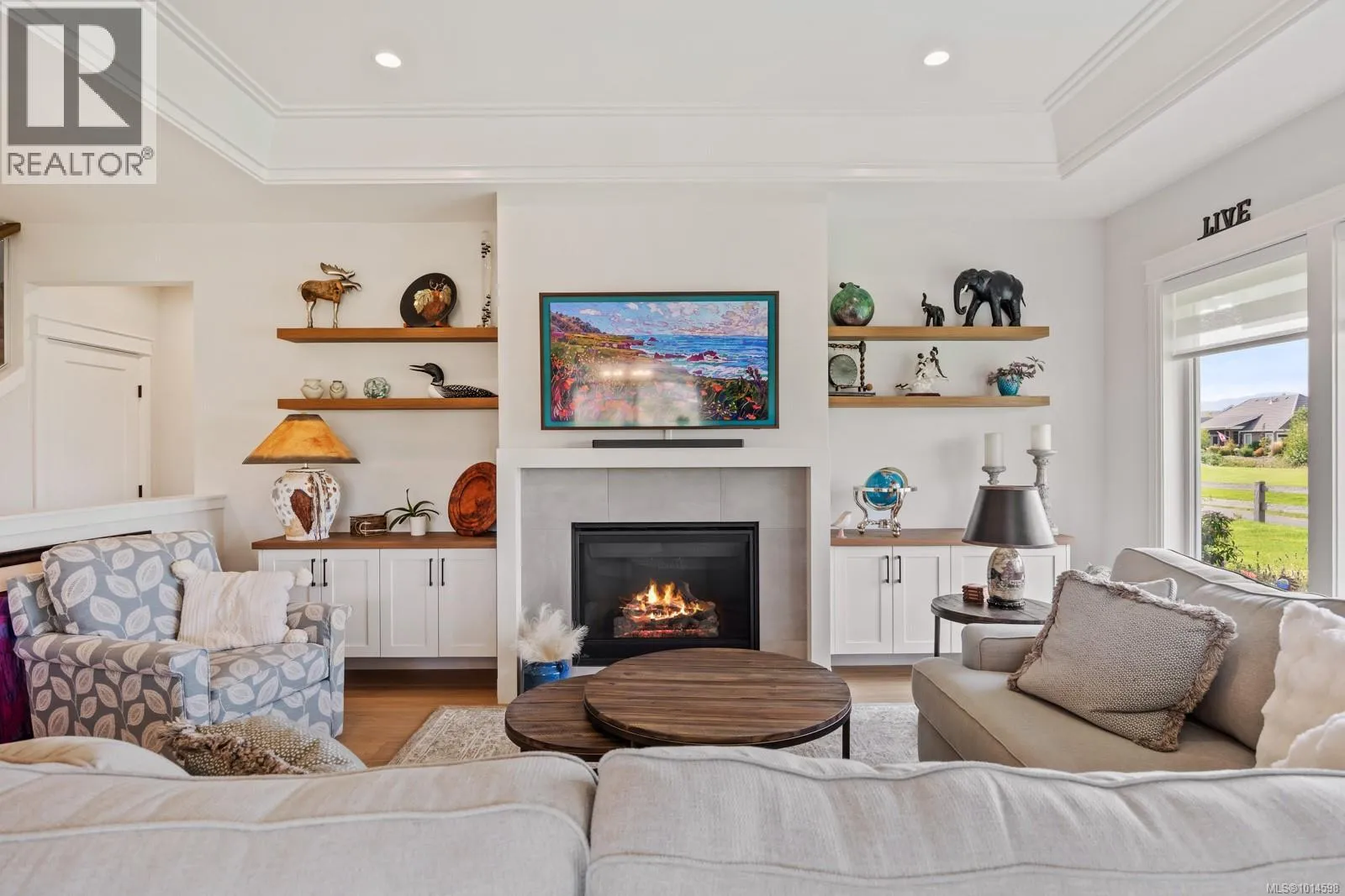 Welcome to Unit #106 in the prestigious Silverstone Estates. This beautifully crafted 1,993 sq ft patio home by Integra Homes offers the perfect blend of privacy, luxury, & breathtaking views. Set in one of the most serene locations, this end unit backs onto peaceful ponds & lush fairways of Crown Isle's Platinum rated Golf Course. Designed in a timeless Craftsman/Farmhouse architectural style, this 4 bed, 2.5 bath home features an open-concept layout that flows seamlessly to an oversized covered outdoor patio, ideal for entertaining & relaxing. Interior highlights inc. engineered hardwood, quartz counters, custom soft-close cabinetry, wood accents, walk-in pantry, epoxied garage floor & designer lighting throughout. The chefâs kitchen is a true standout, equipped with premium Fisher & Paykel appliances. This setting offers the rare combination of quiet retreat and world-class lifestyle. Enjoy panoramic views of the golf course & surrounding mountains from this one-of-a-kind location. (id:27476)