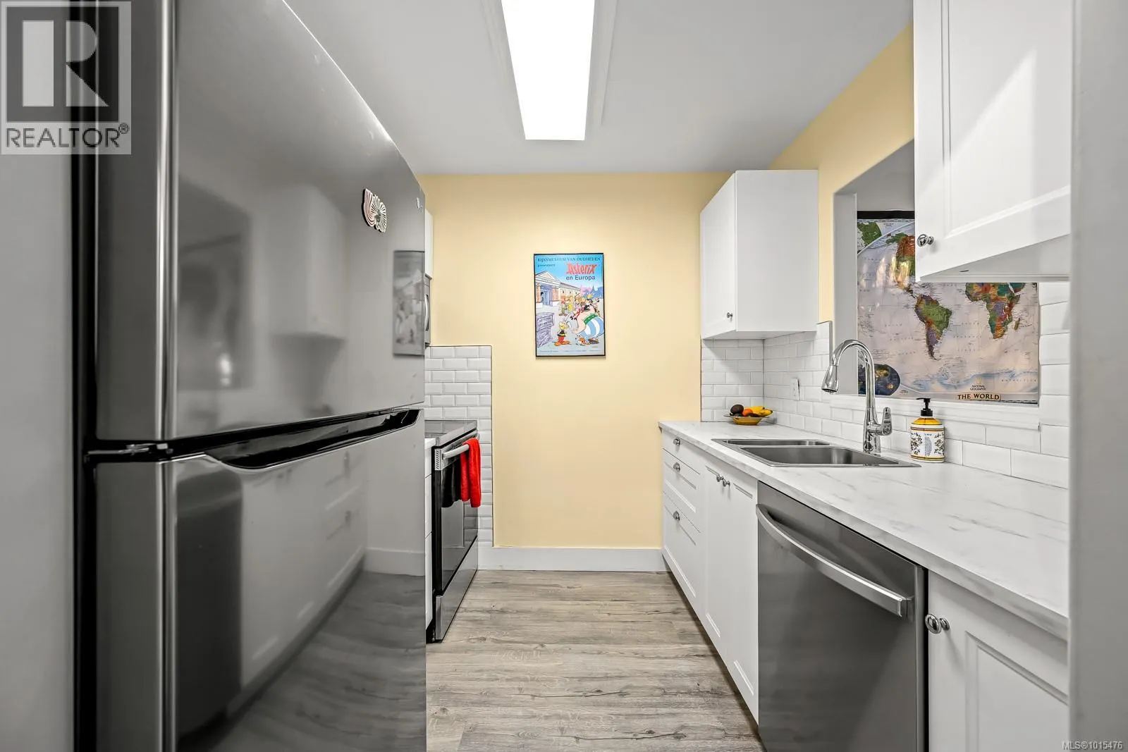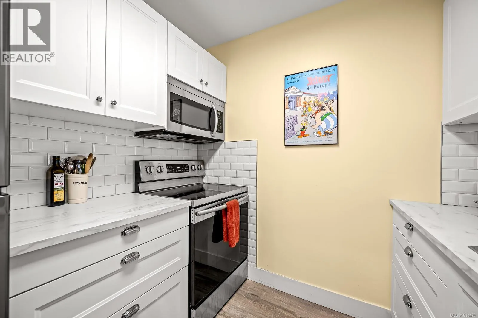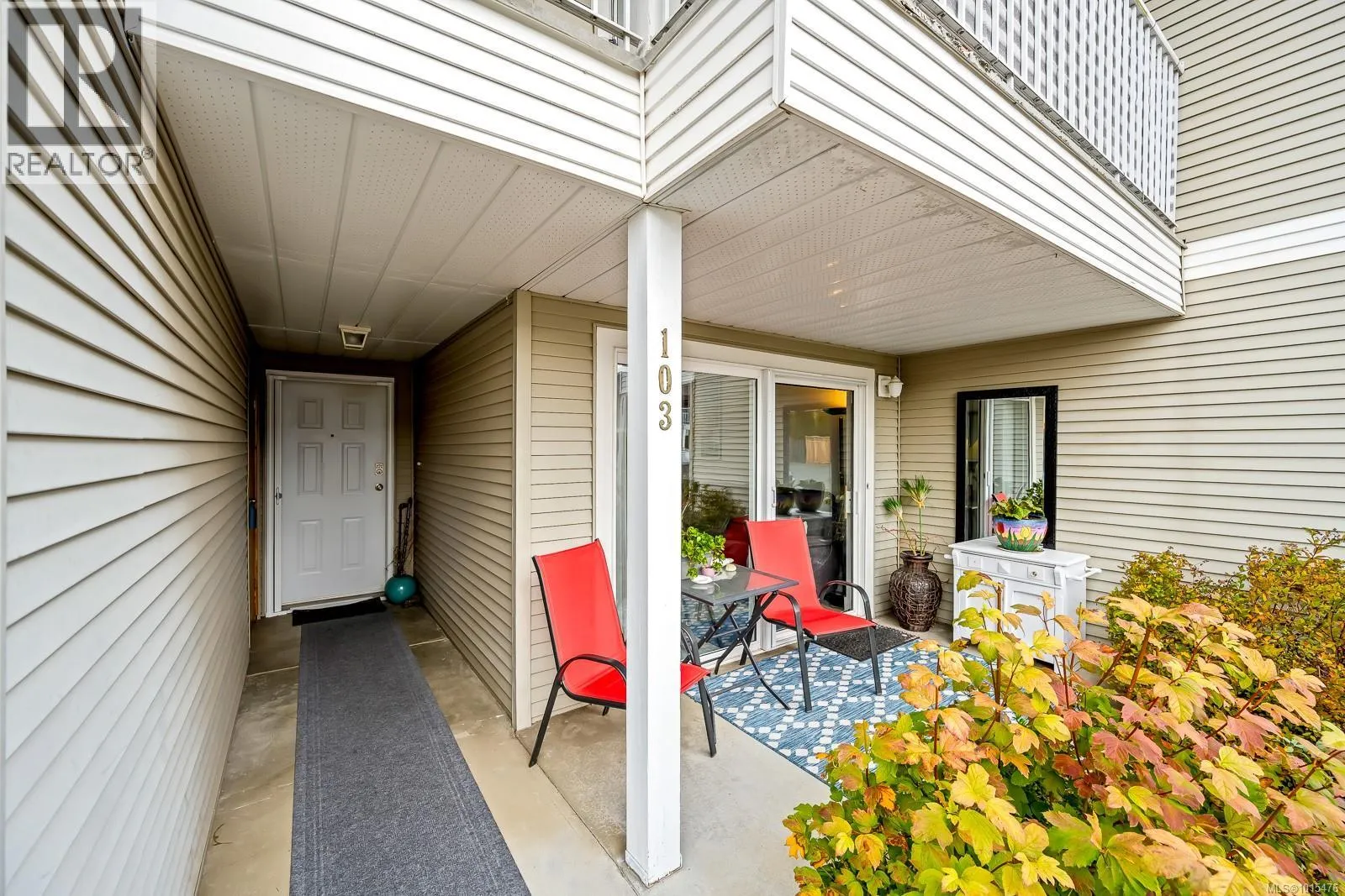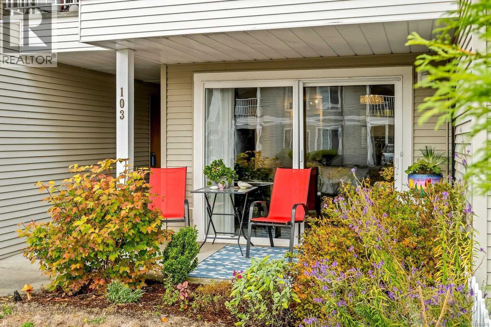 Gorgeous 2 bedroom fully renovated unit in Poplar Place in East Courtenay. This ground floor unit boasts 2 decks to follow the sun. Backyard patio is super private and looks onto a lush green professionally landscaped backyard with amazing flower garden that you do not have to care for! No step entrance and updated vinyl floors. Nothing to do this is a turn key unit with fabulous updates such as updated kitchen with tile backsplash. Open plan living and dining areas and lots of closets and storage throughout. 1 pet allowed under 20 lbs and smoke free complex with no age restrictions and wonderful neighbors! Convenient location with all amenities close by. (id:27476)